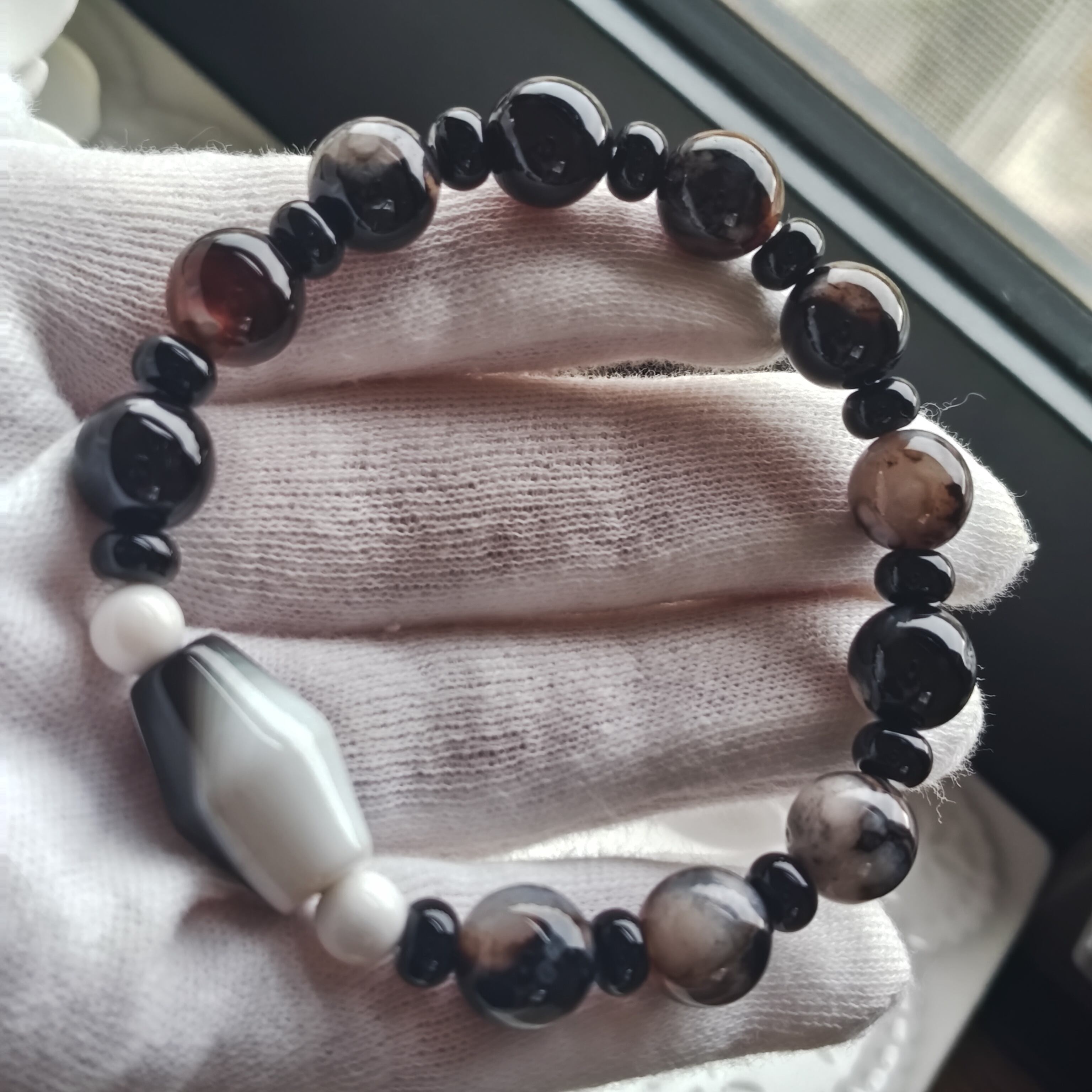今回は高品質の黒桜瑪瑙と天眼瑪瑙を組み合わせました♪
