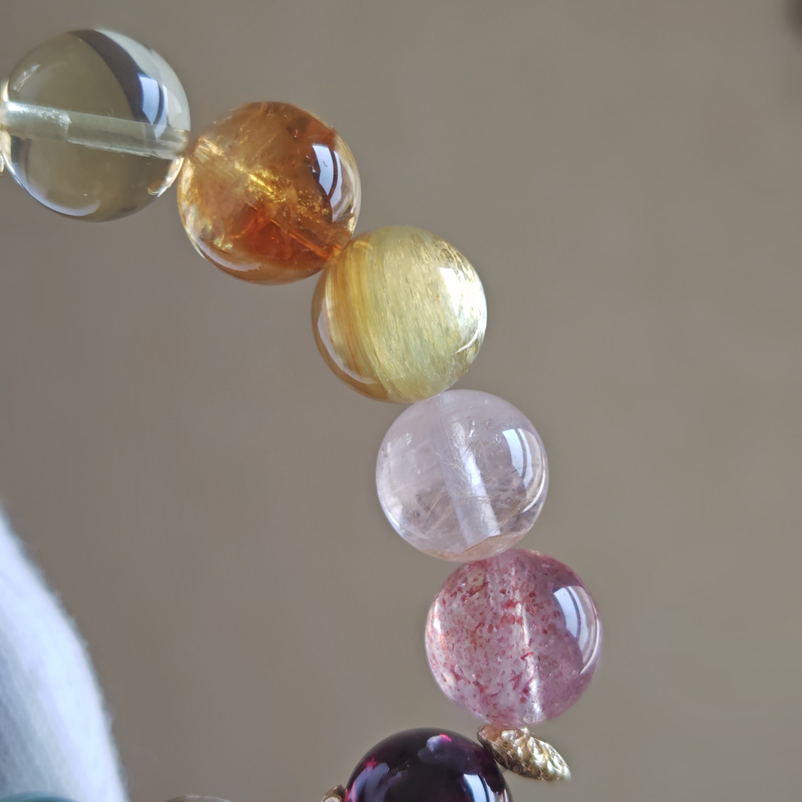 こちらのチャクラブレスは極みロードライトガーネットとサンタマリアアクアマリンを使いました♡