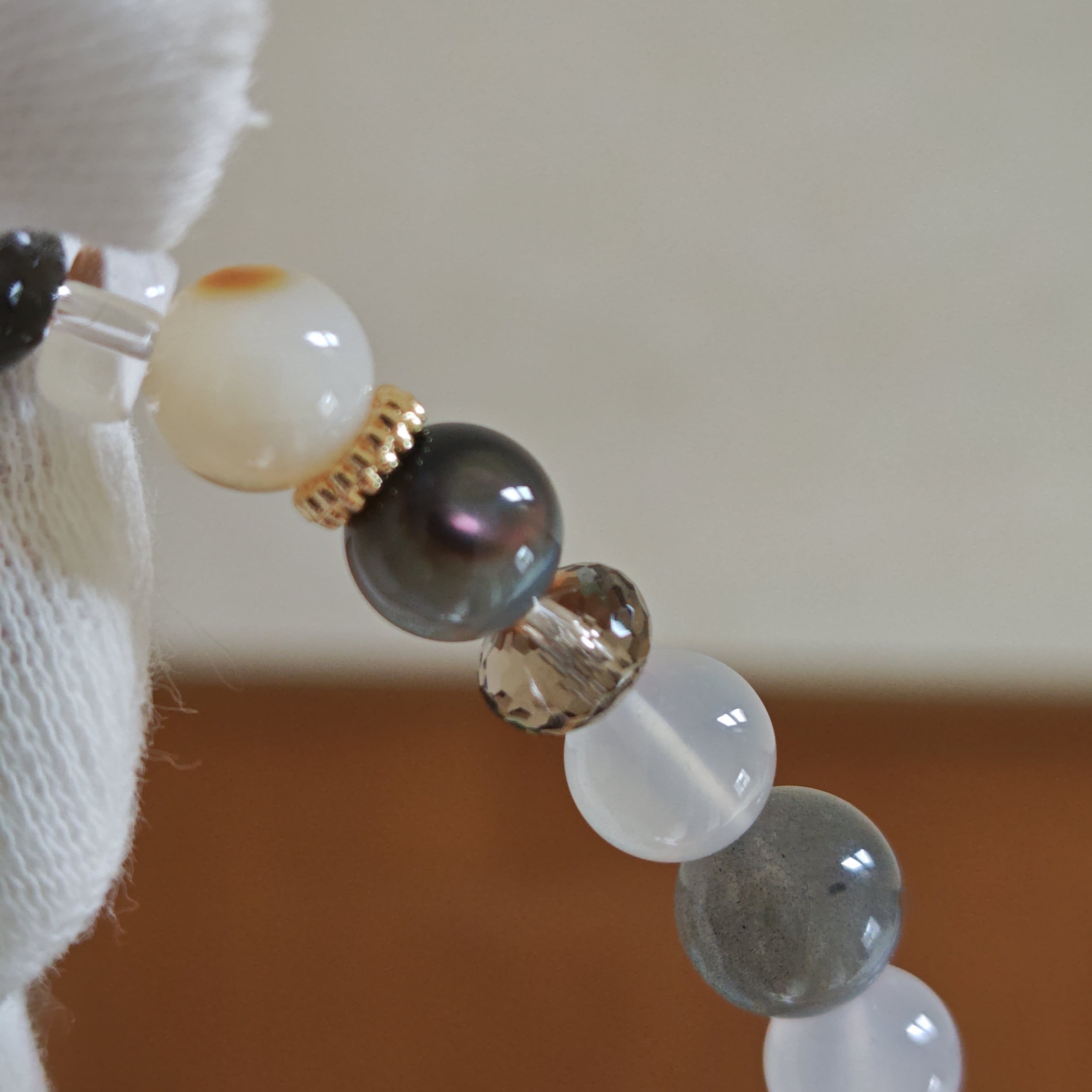 ベース石はホワイトカルセドニーとピンクシラーやパープルシラーが入った高品質なラブラドライトです✧◝(⁰▿⁰)◜✧