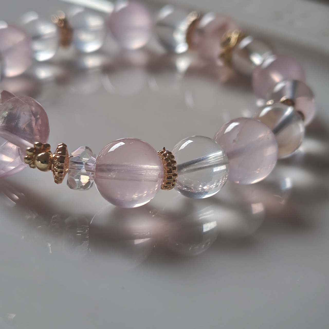 ゼリーの様なうるぷる感が特徴のモザンビーク産ローズクオーツをベースに組みました♡