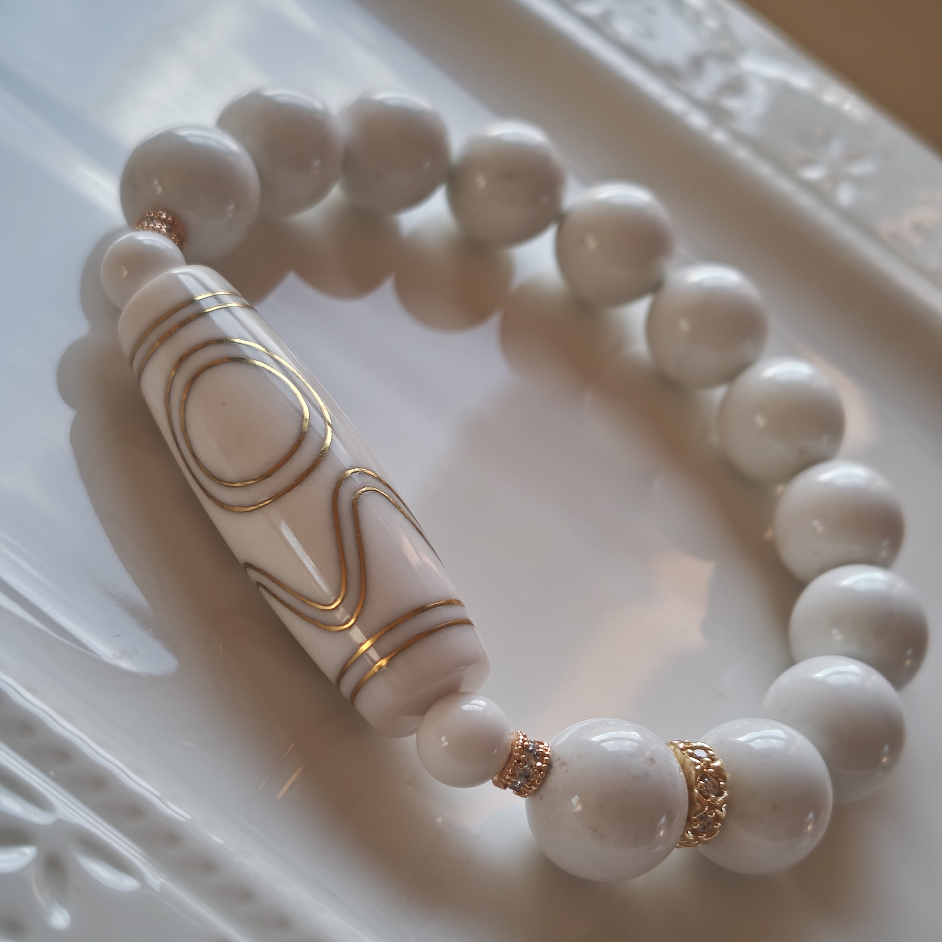 今回はその息増懐天珠の純白にゴールドの模様バージョン♡