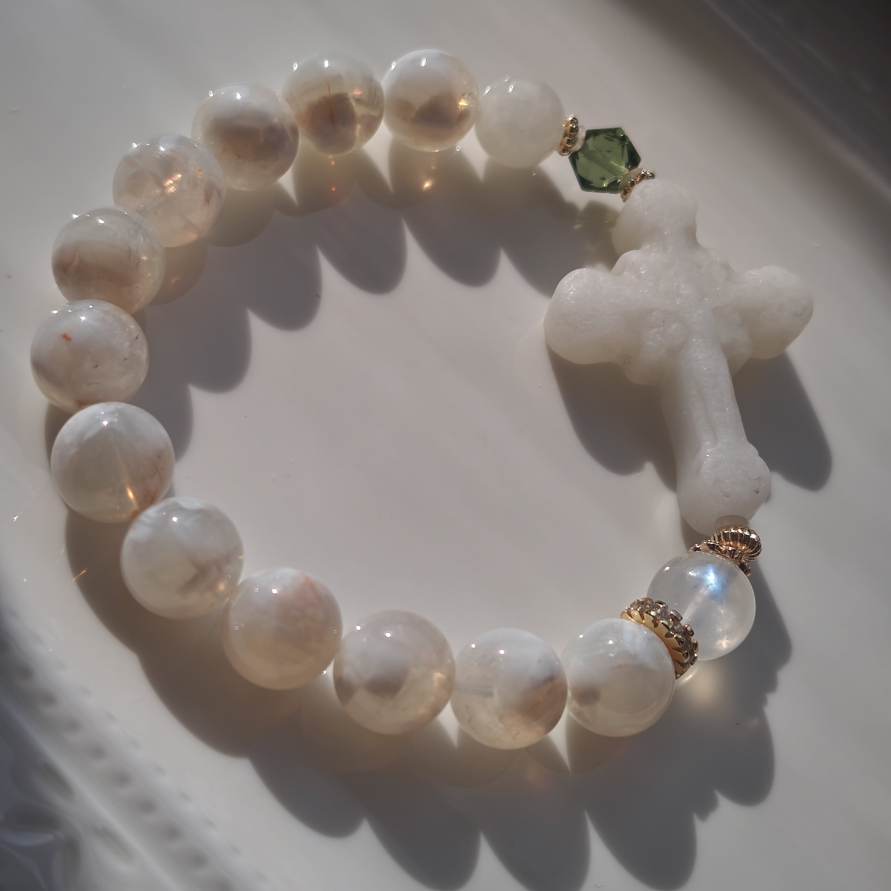 ホワイト瑪瑙十字架 グリーンアパタイト六芒星 ホワイトスノーガーデン ムーンスト