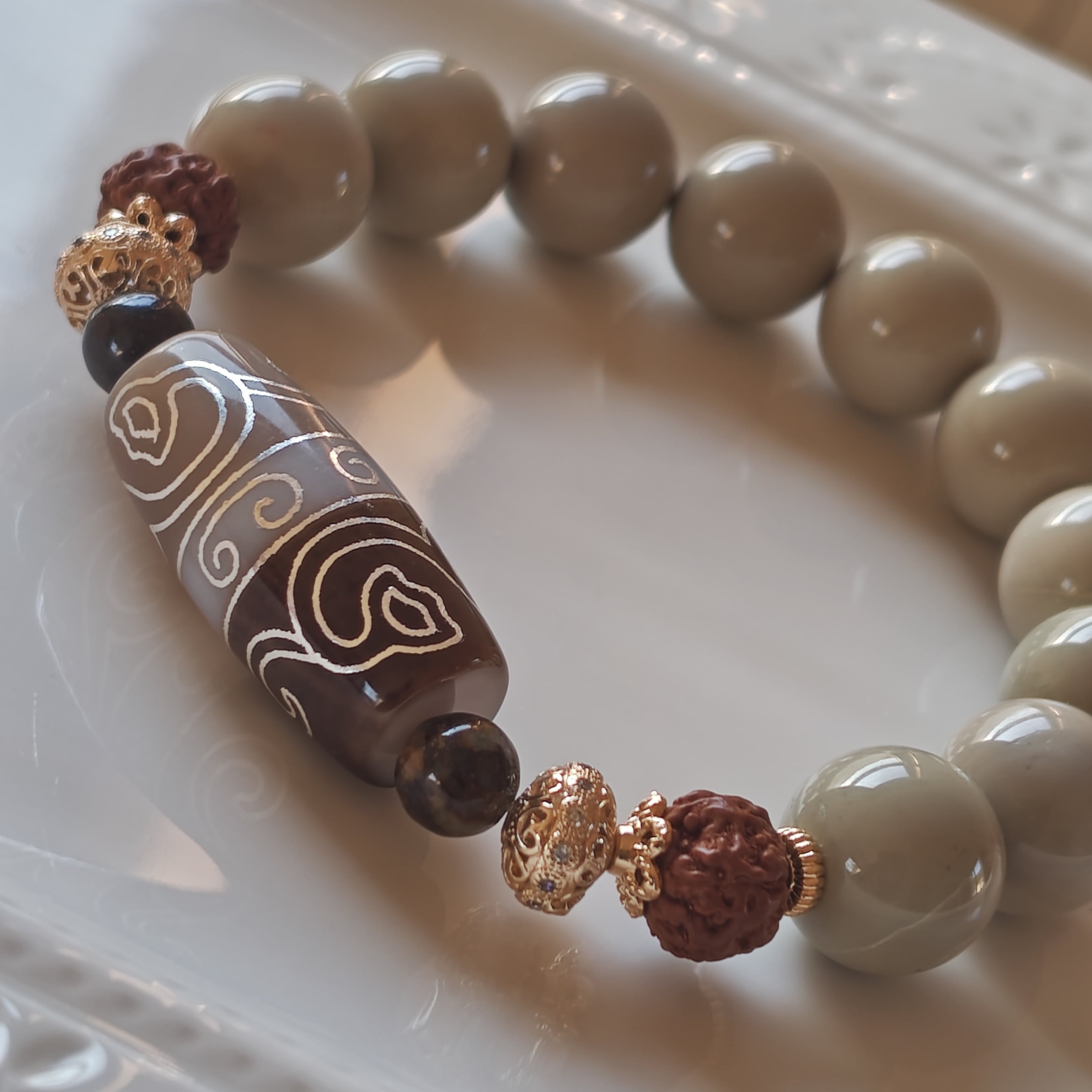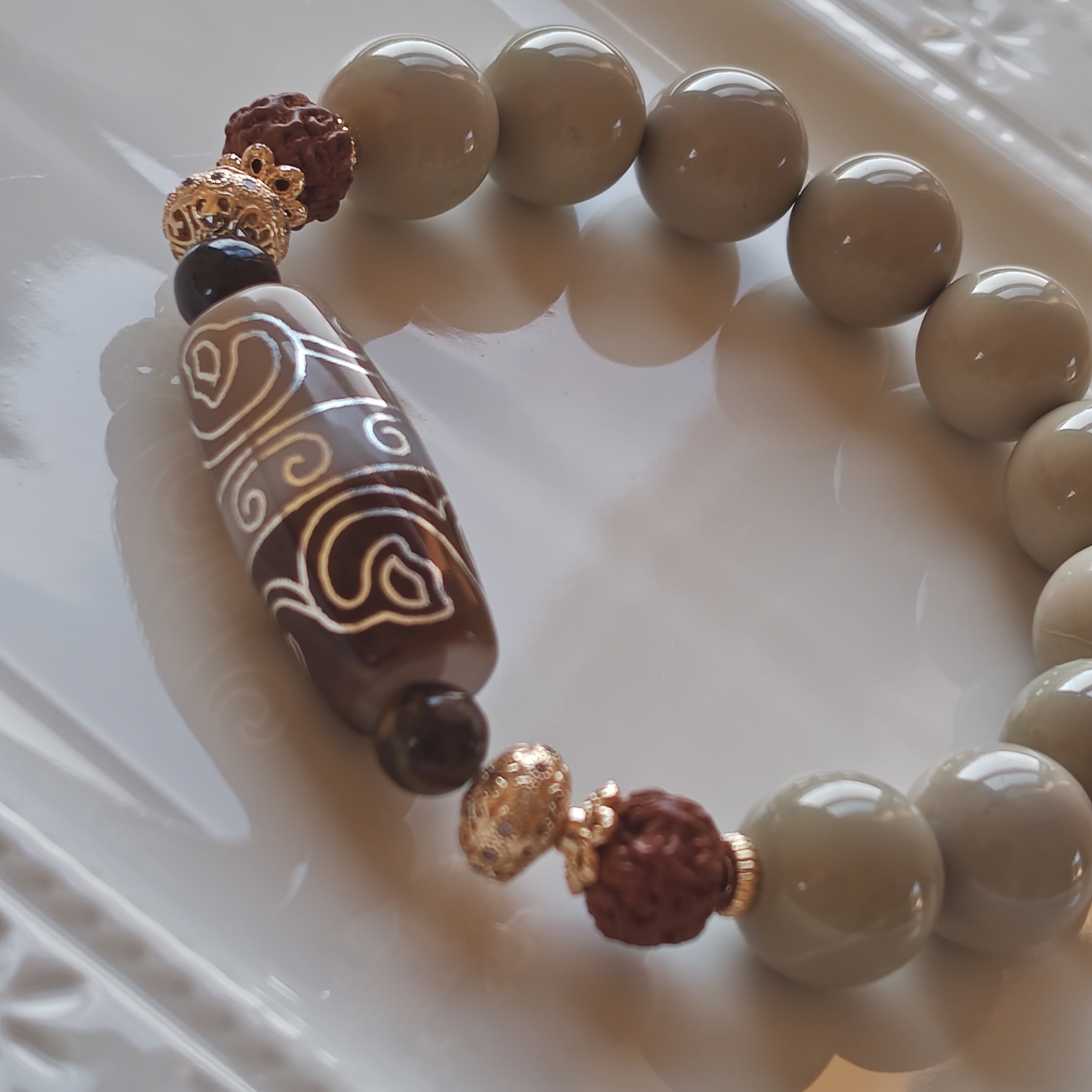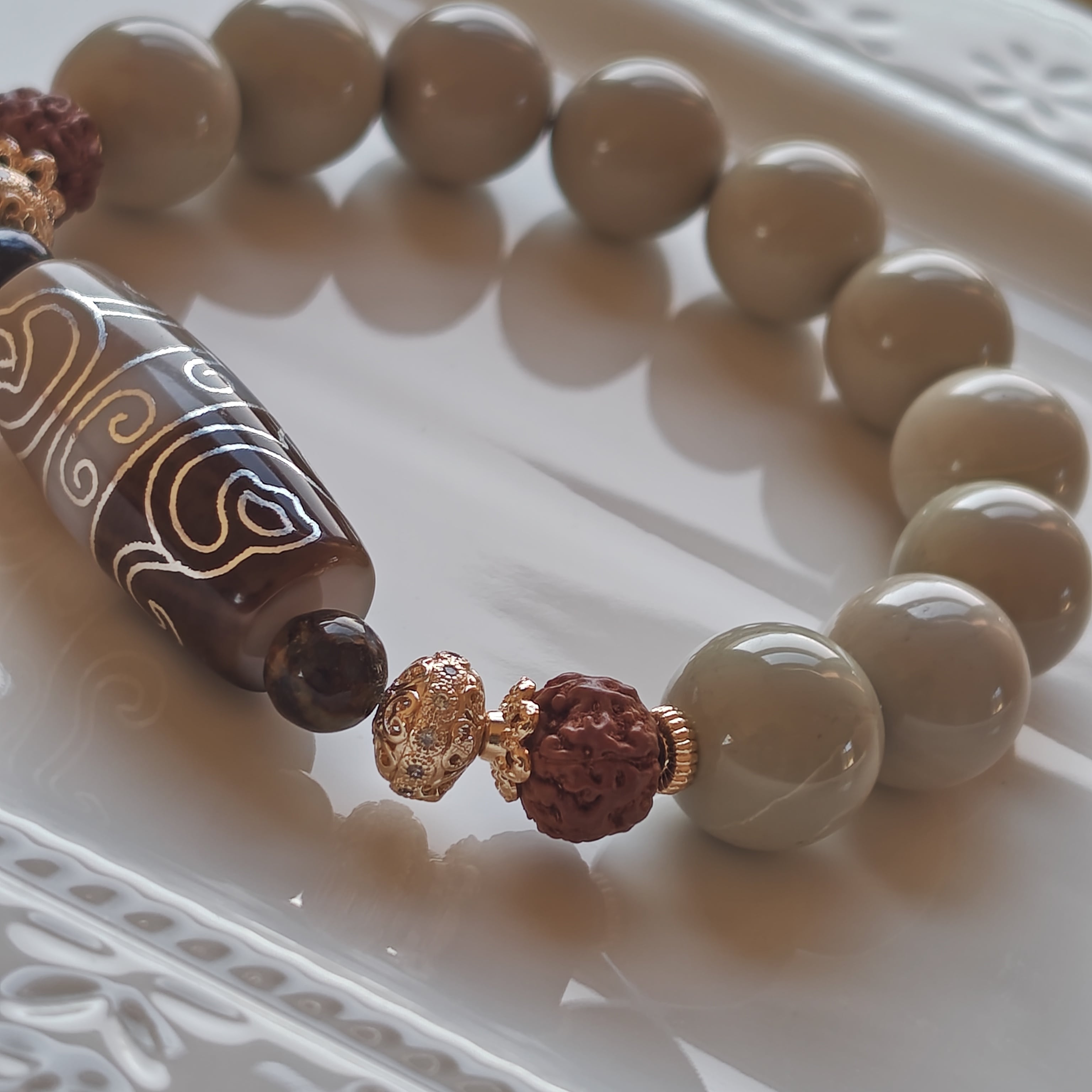 M様♡専用です♡新作 水蓮花&回紋天珠 ミルクベージュアラシャン