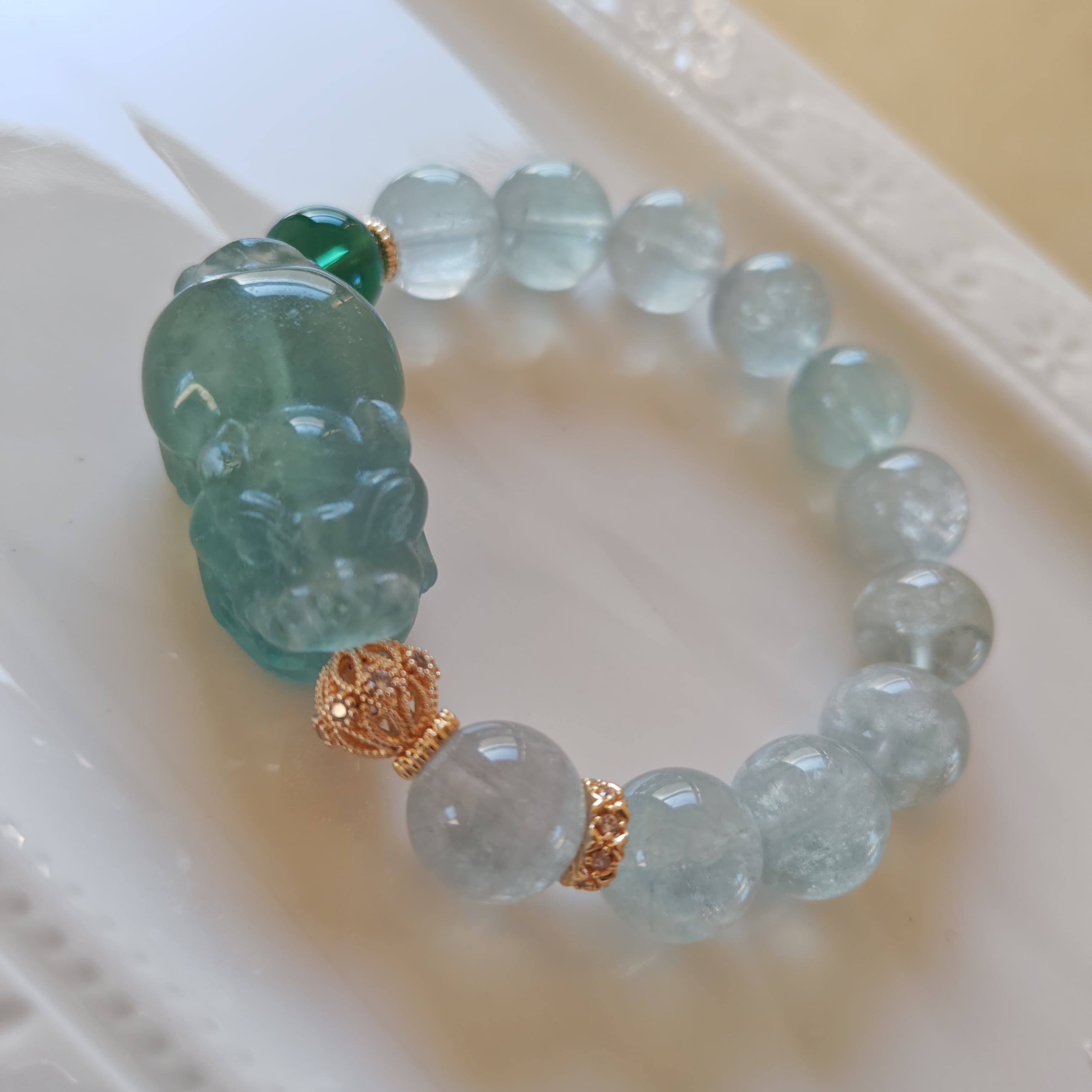 爽やかなブルーグリーンのフローライト貔貅と柔らかいミントグリーンのフローライトを組み合わせました♪