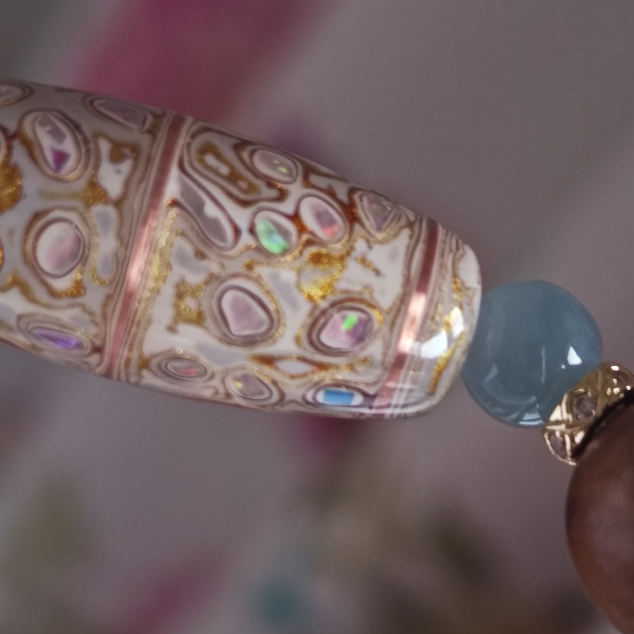 神秘的な輝きを放つ大漆オパールバジュラ天珠を使用した、高級感あふれるブレスレットです✨
