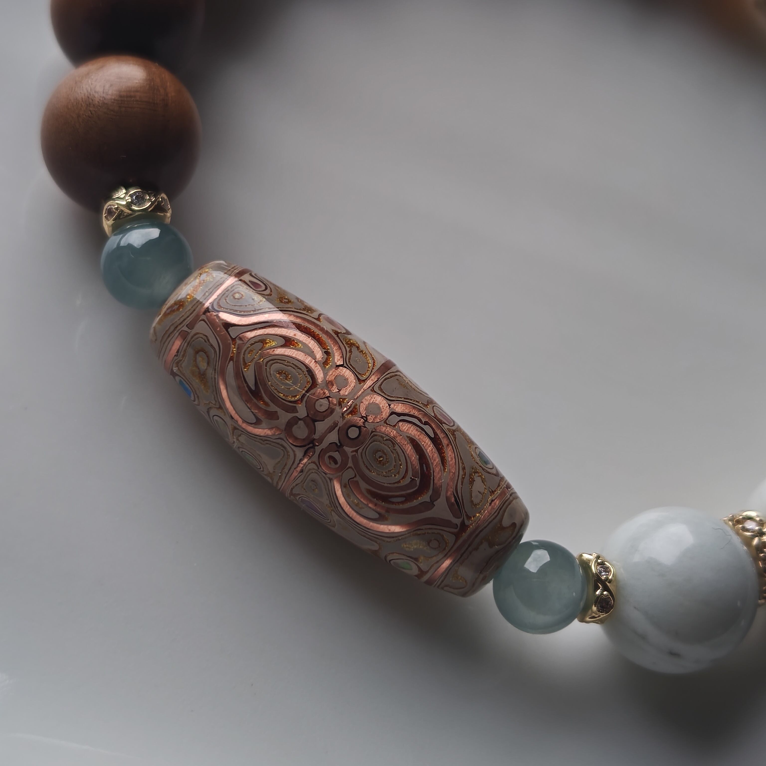 このブレスレットは、グアテマラ翡翠の美しい色合いと最高級インド産白檀と大漆の艶感が見事に調和し、特別な魅力を引き出しています♪