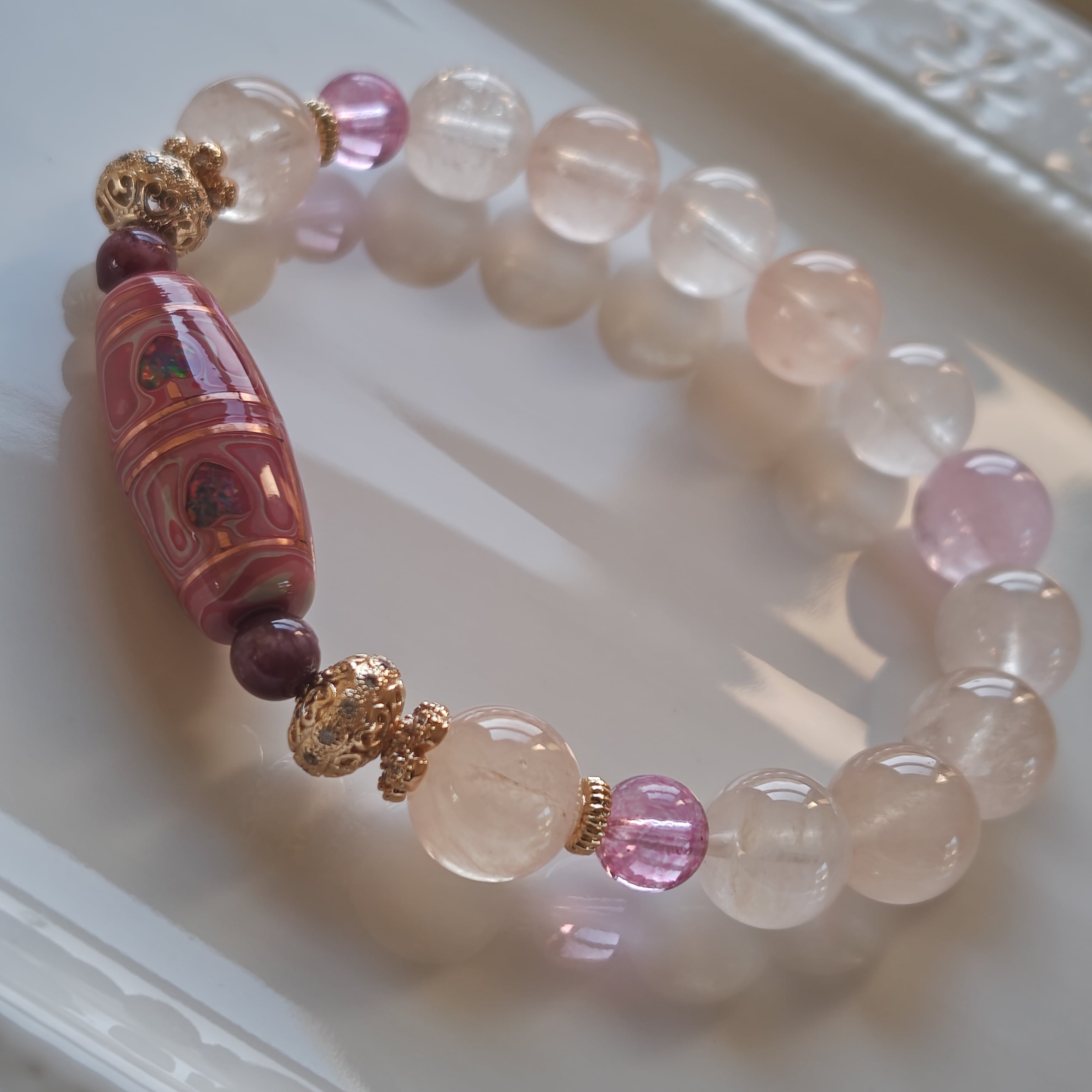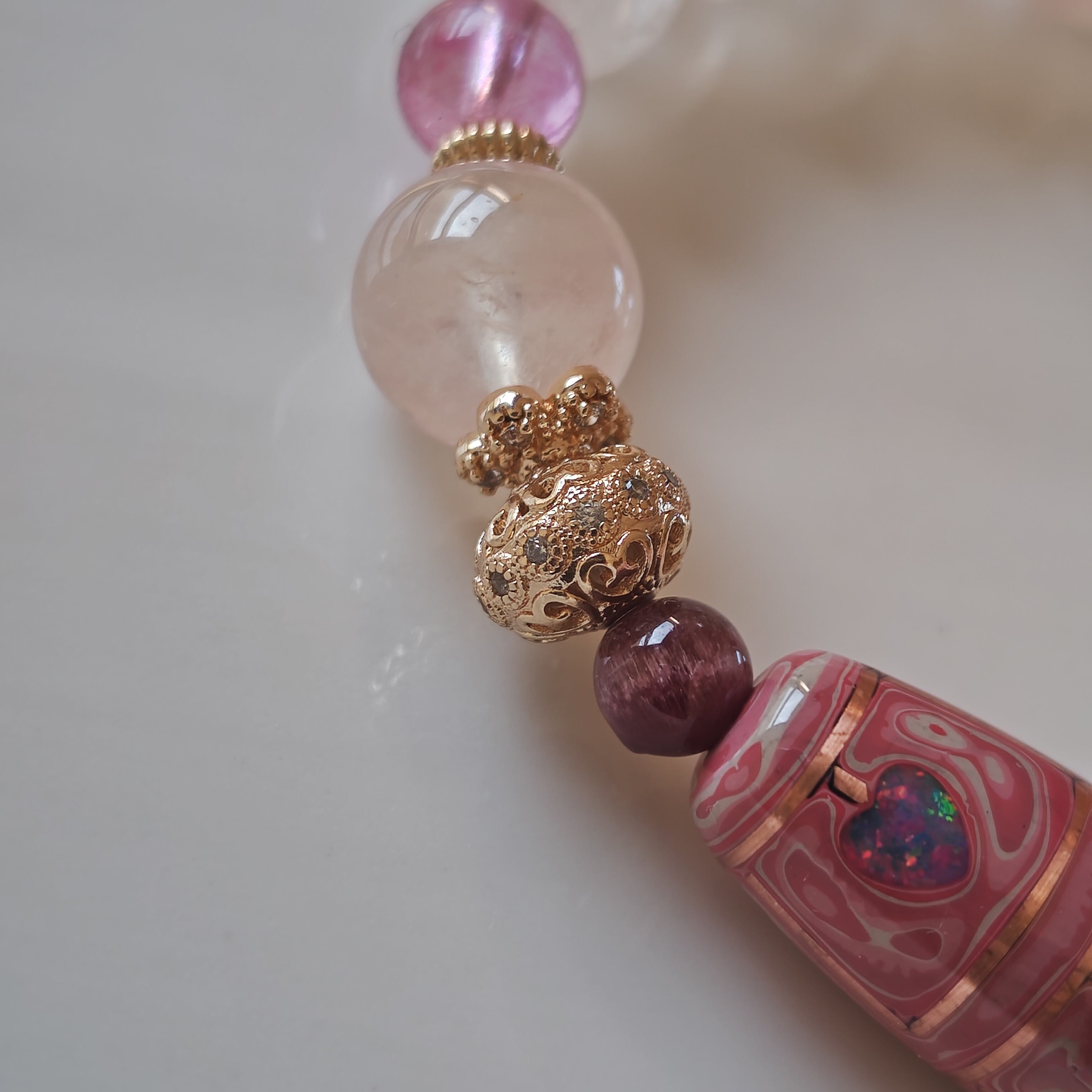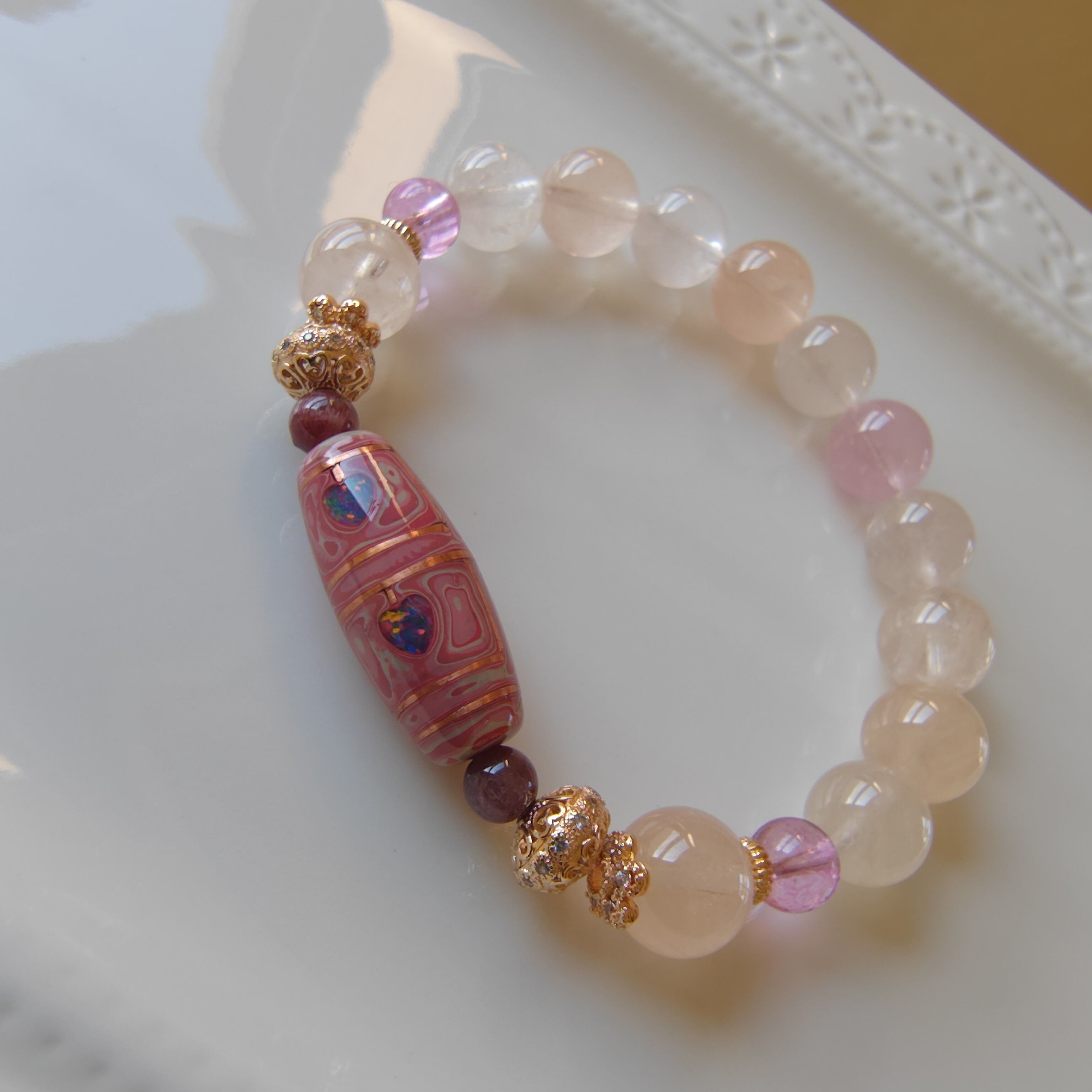 在庫ラストのピンク大漆オパール天珠ブレスになります♡