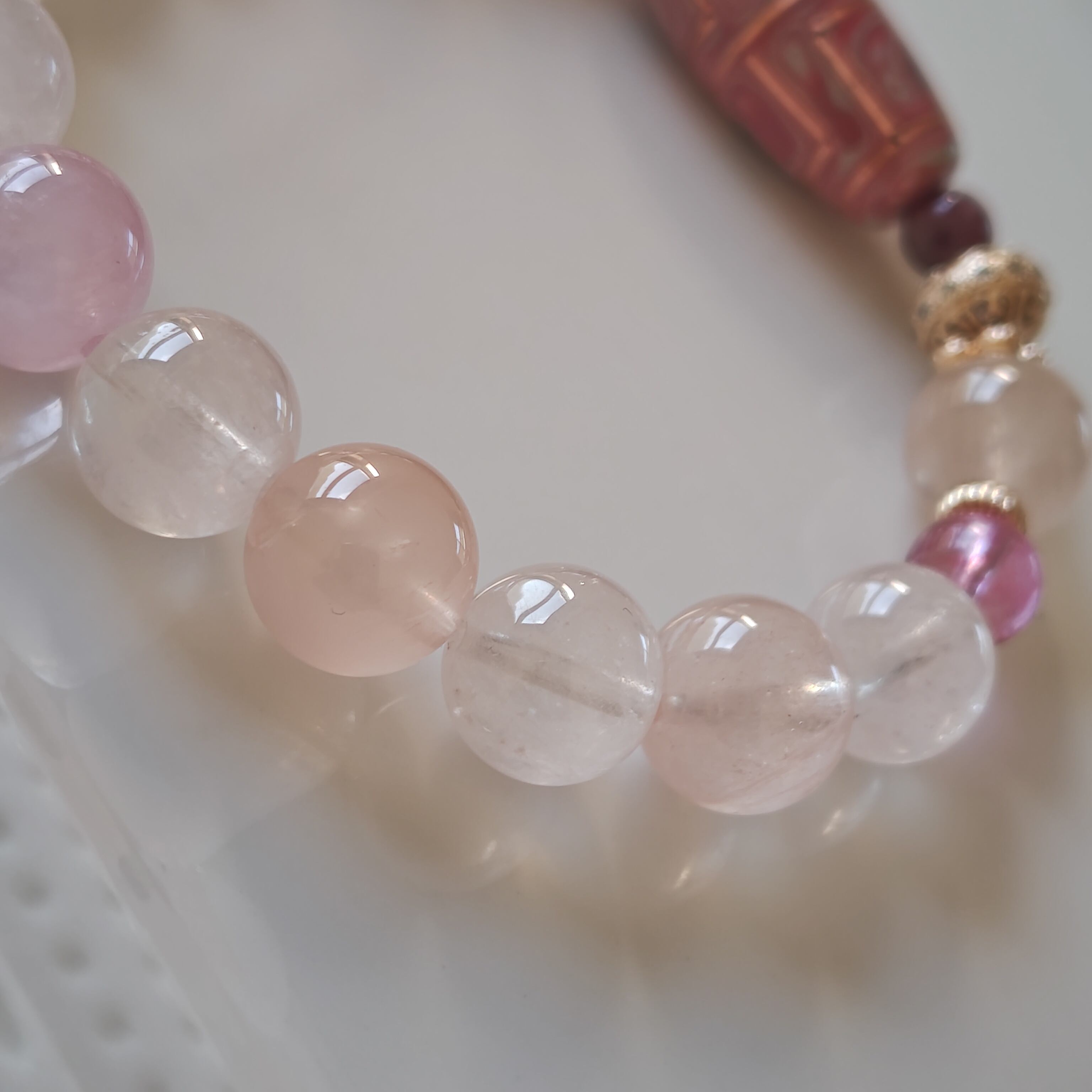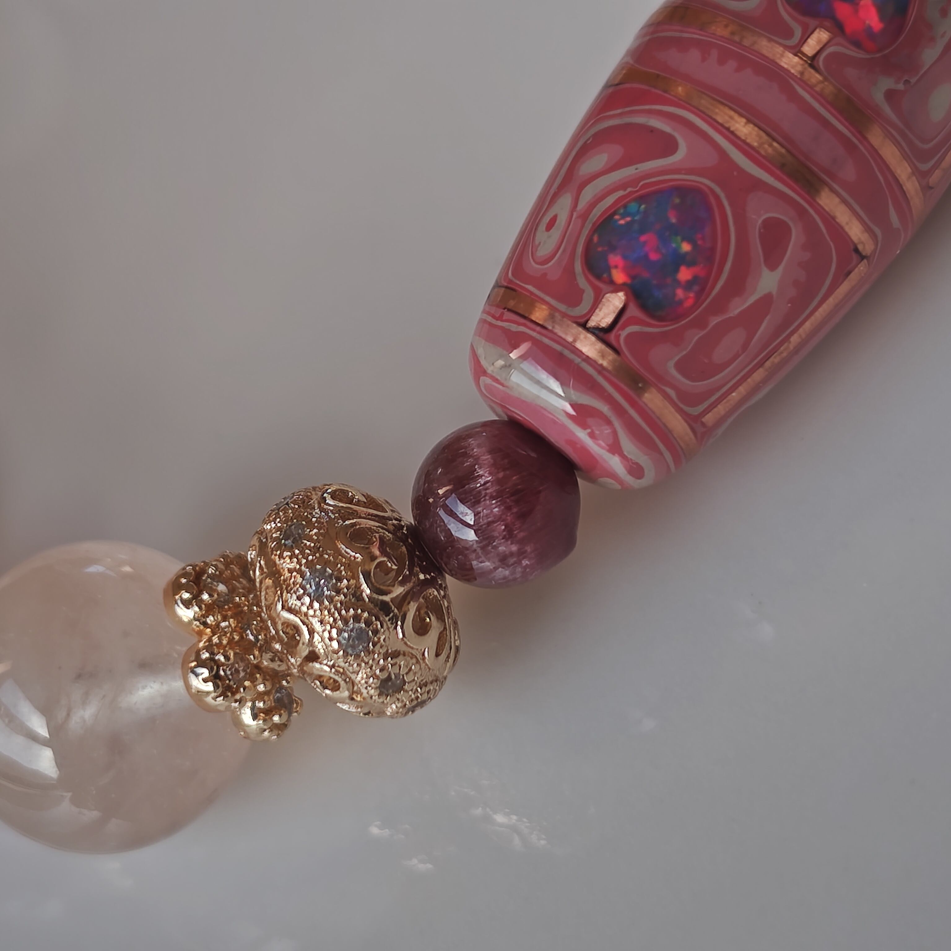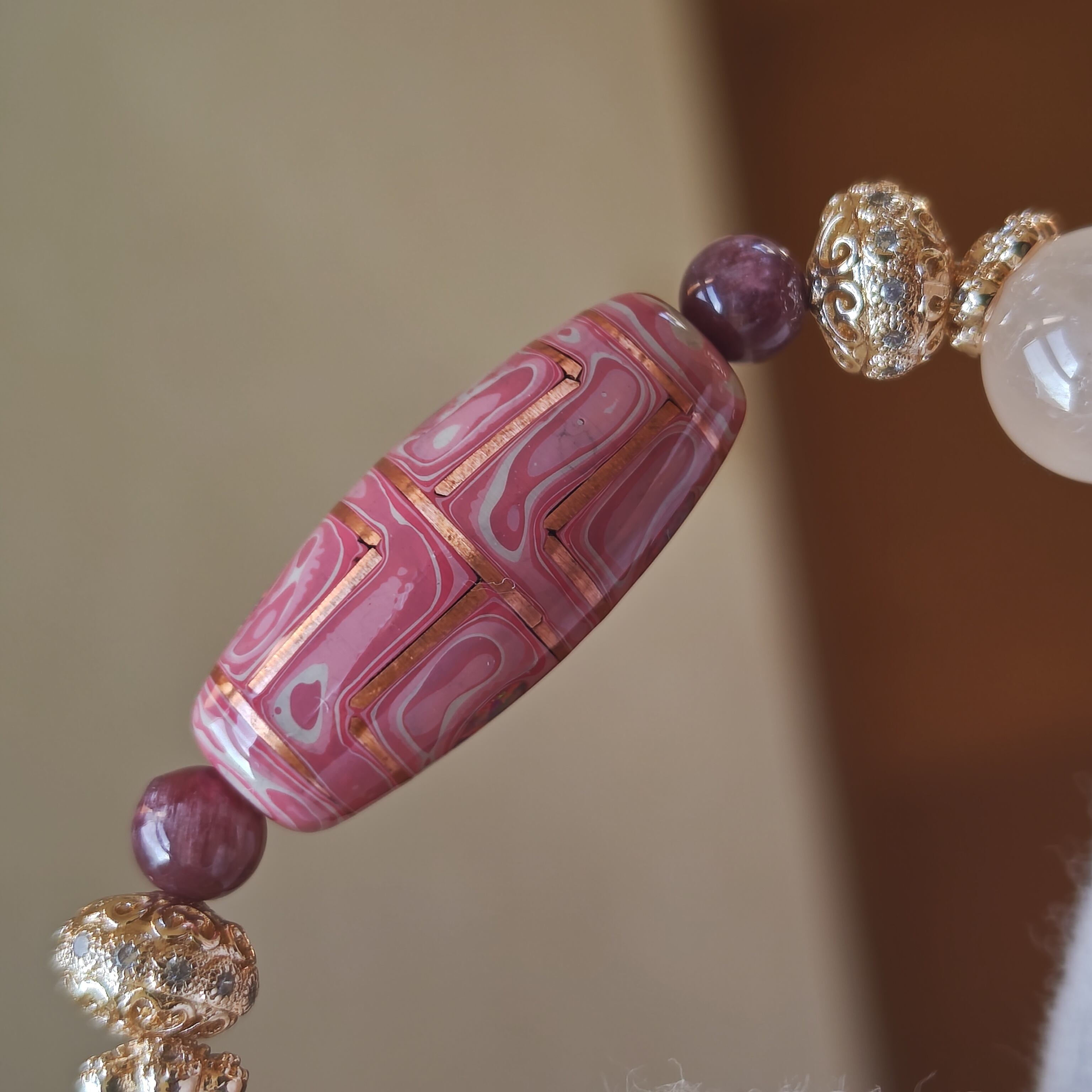 在庫ラストのピンク大漆オパール天珠ブレスになります♡