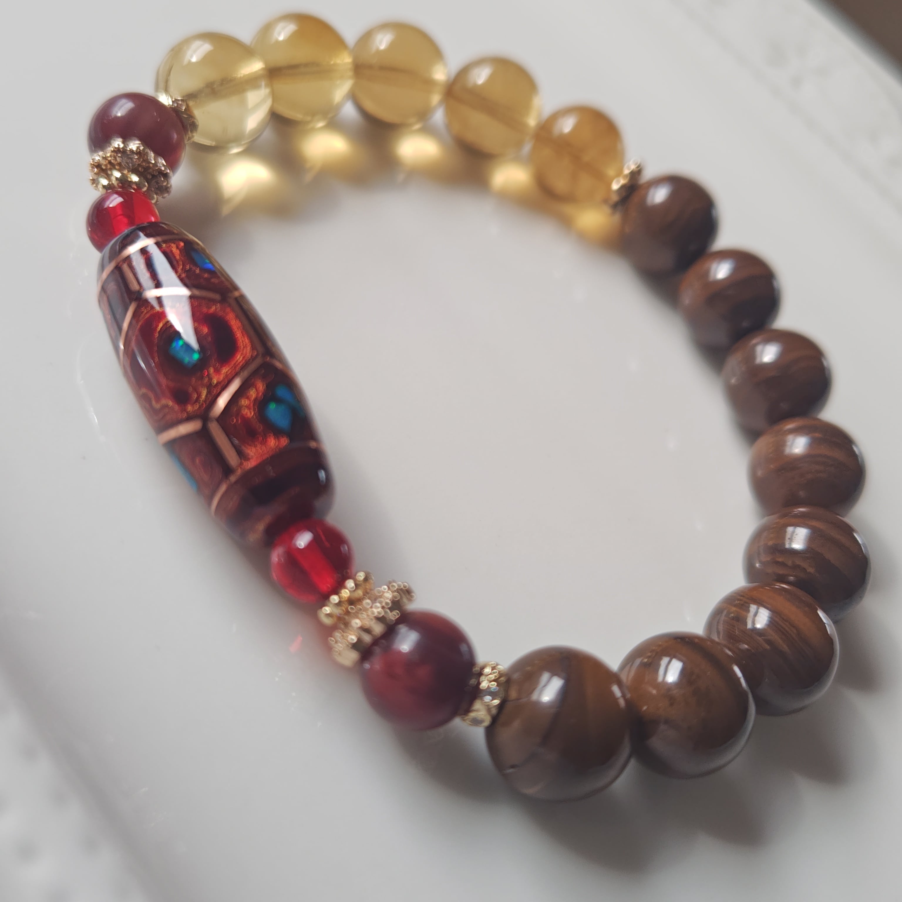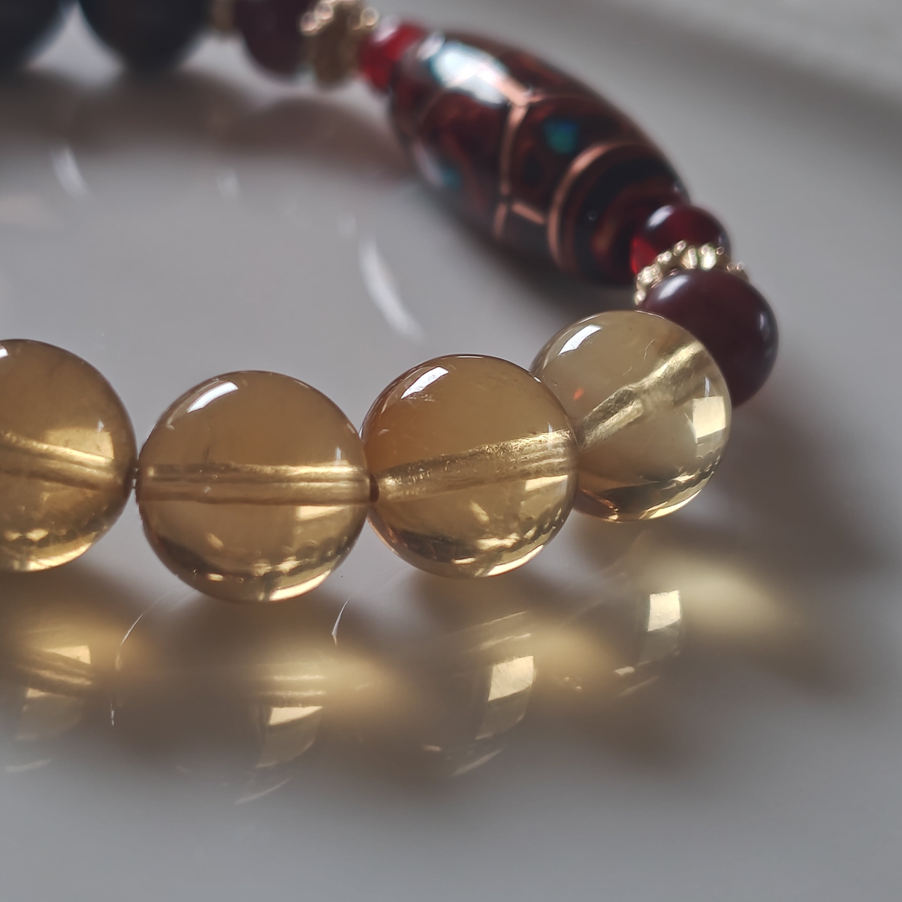 天珠両サイドには、レッドアンバーとアンデシンで華やかさを出してみました♡