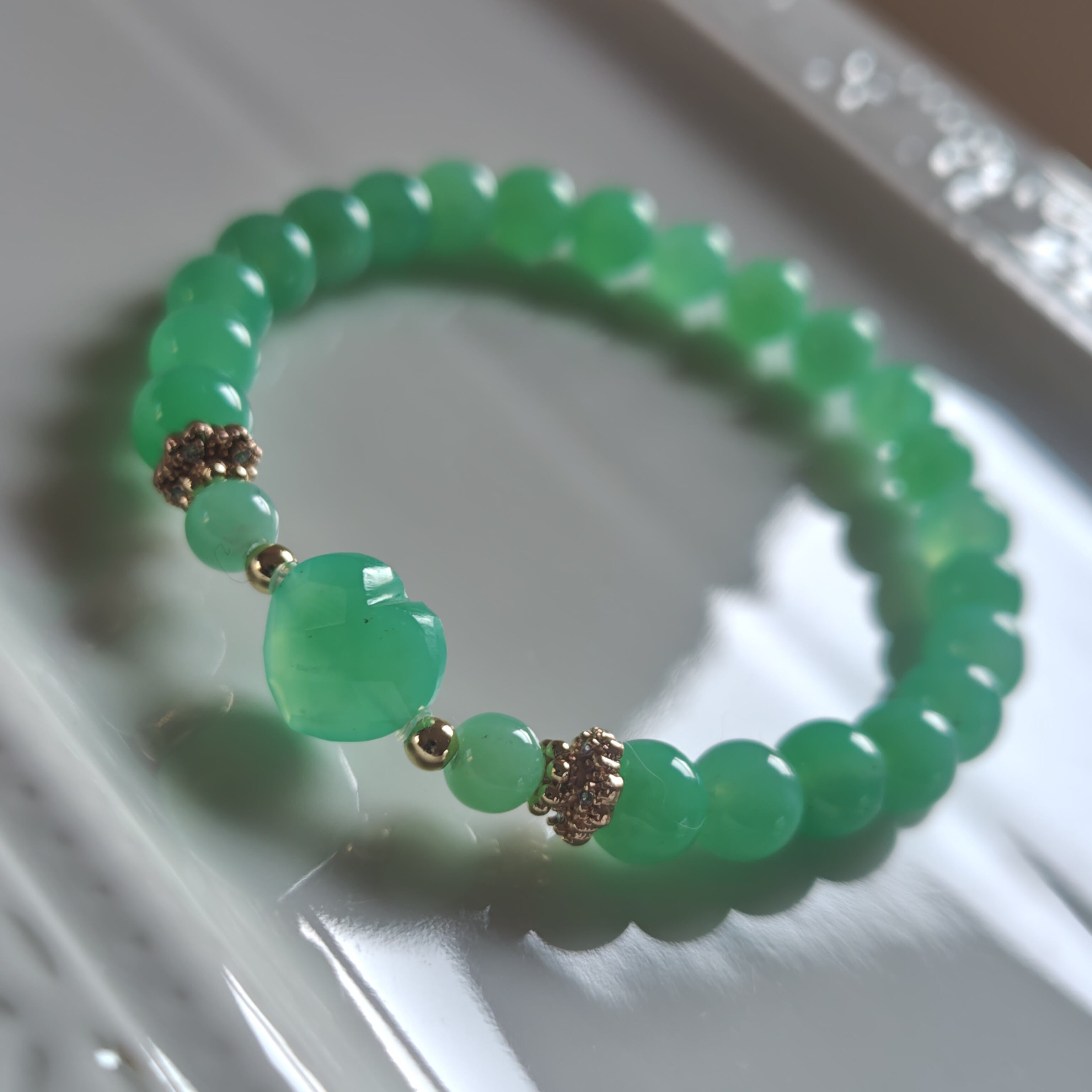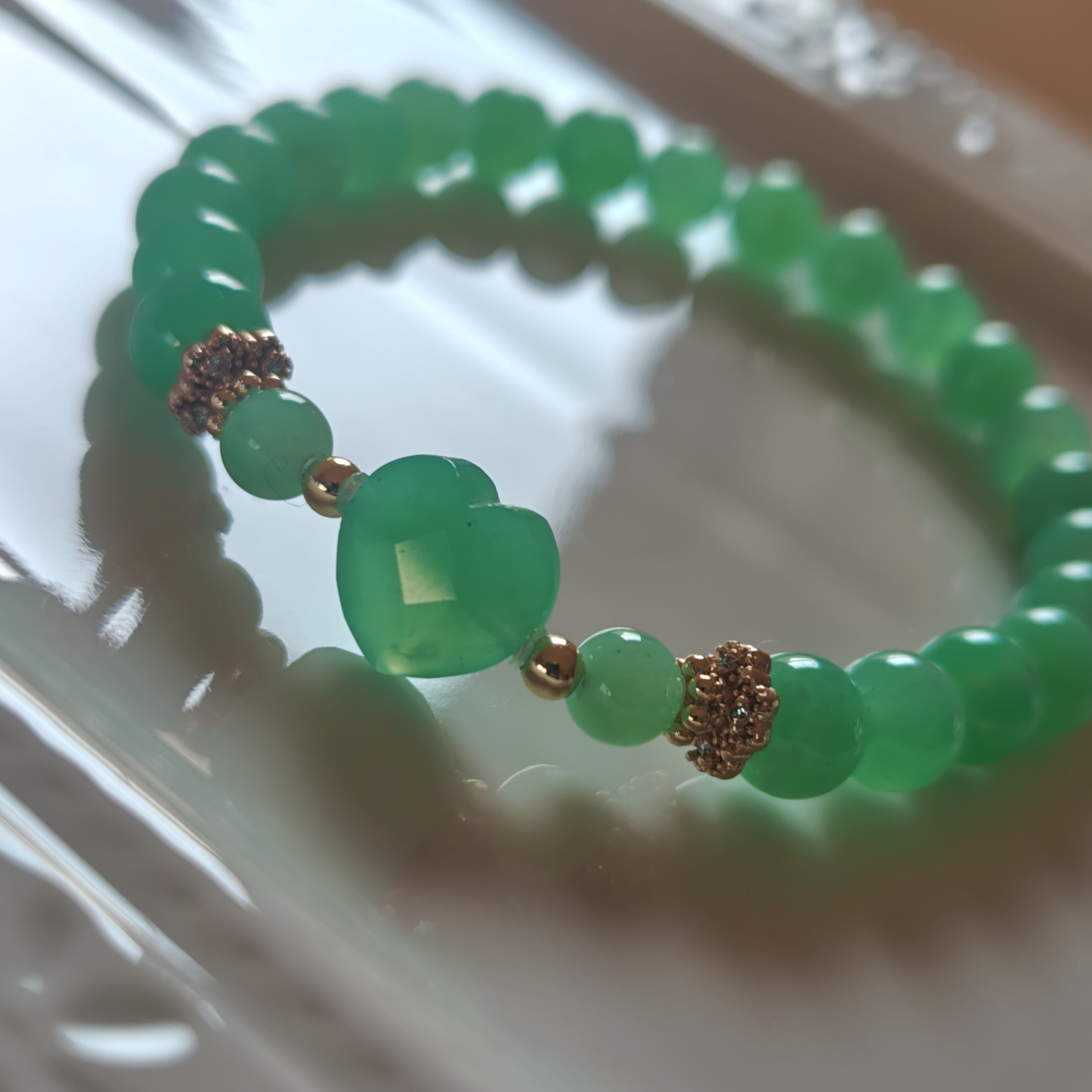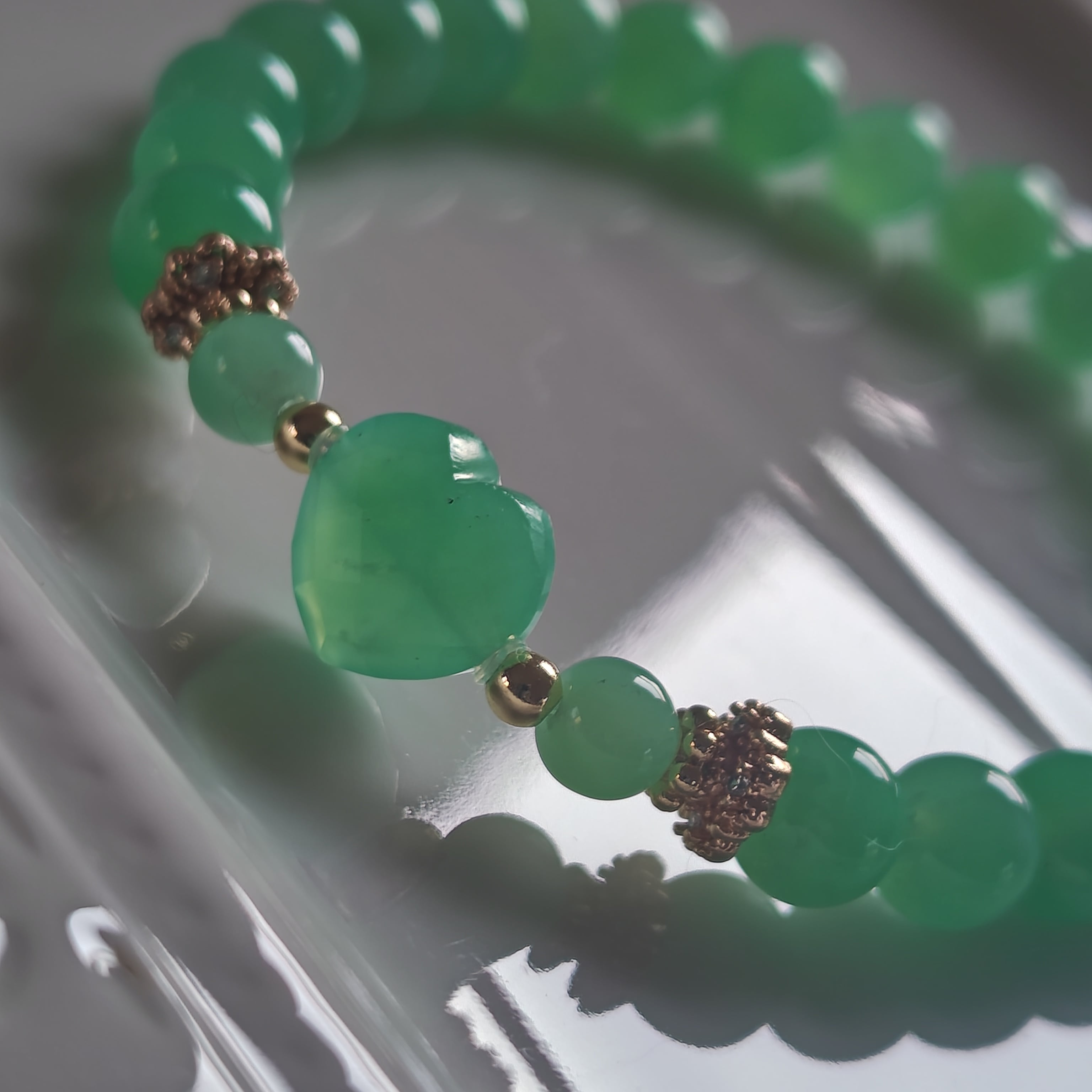 心に優しさと癒しをもたらす、煌めくアップルグリーンの宝石質クリソプレーズを使用したハートブレスレットです♡