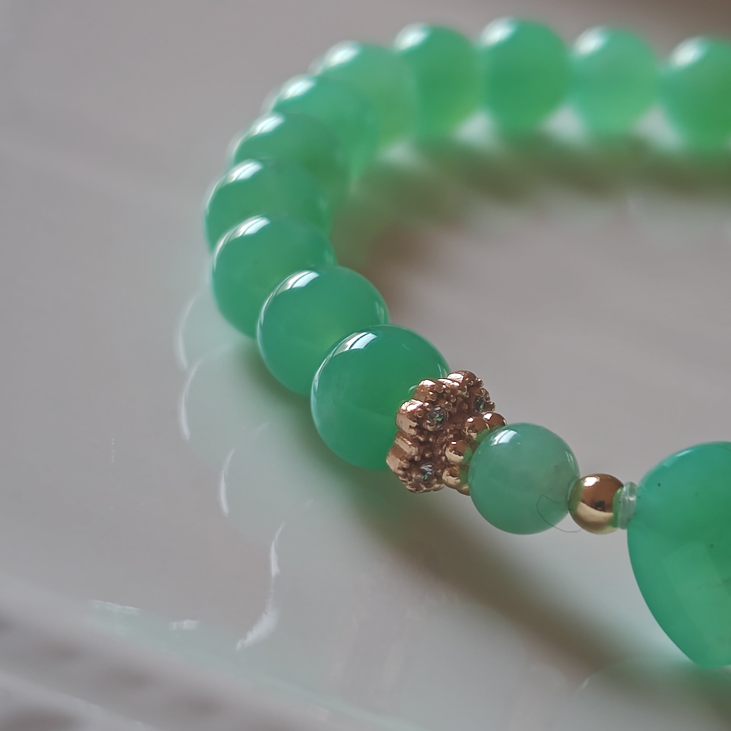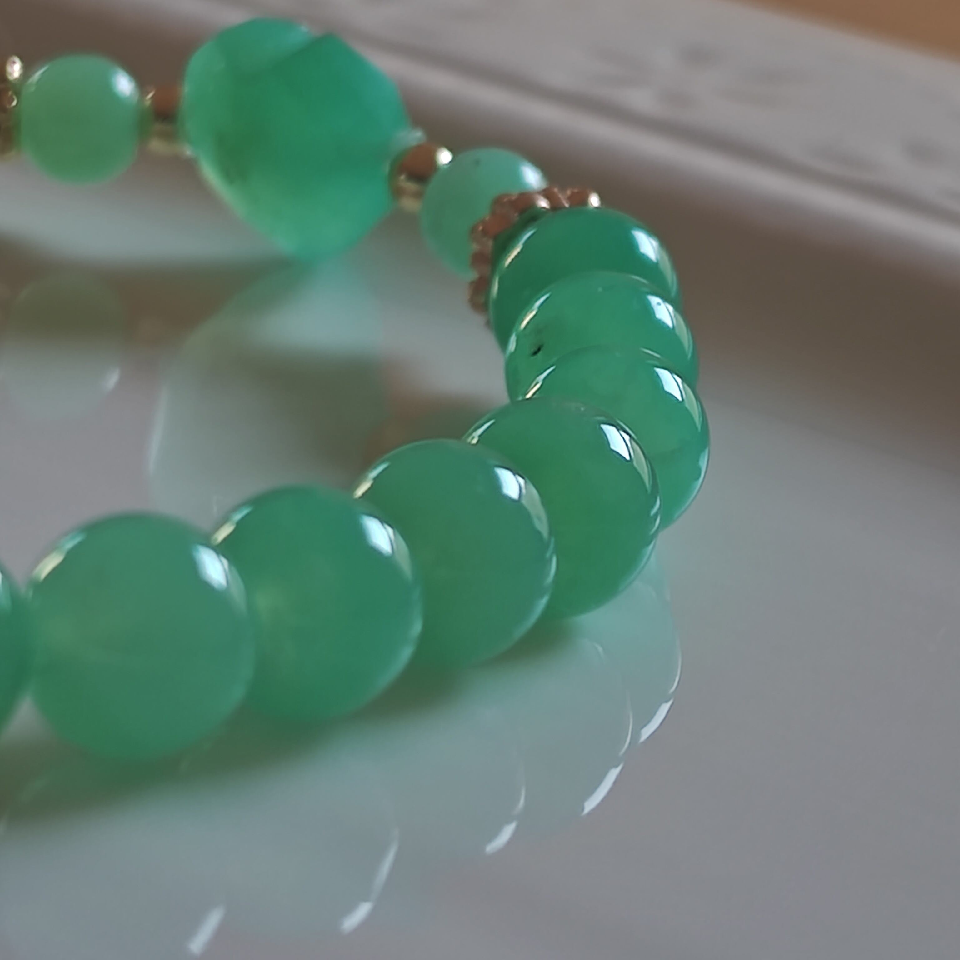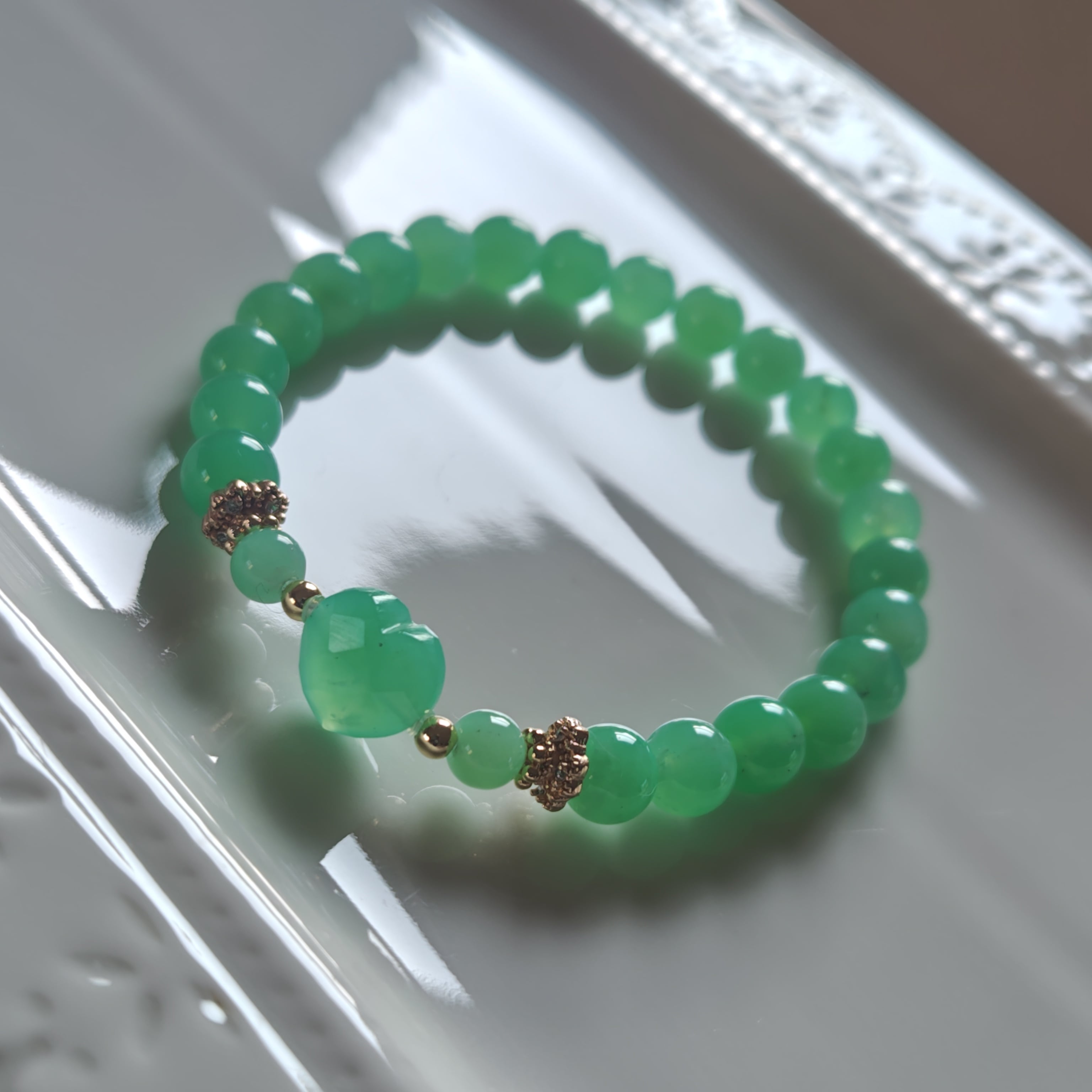 心に優しさと癒しをもたらす、煌めくアップルグリーンの宝石質クリソプレーズを使用したハートブレスレットです♡