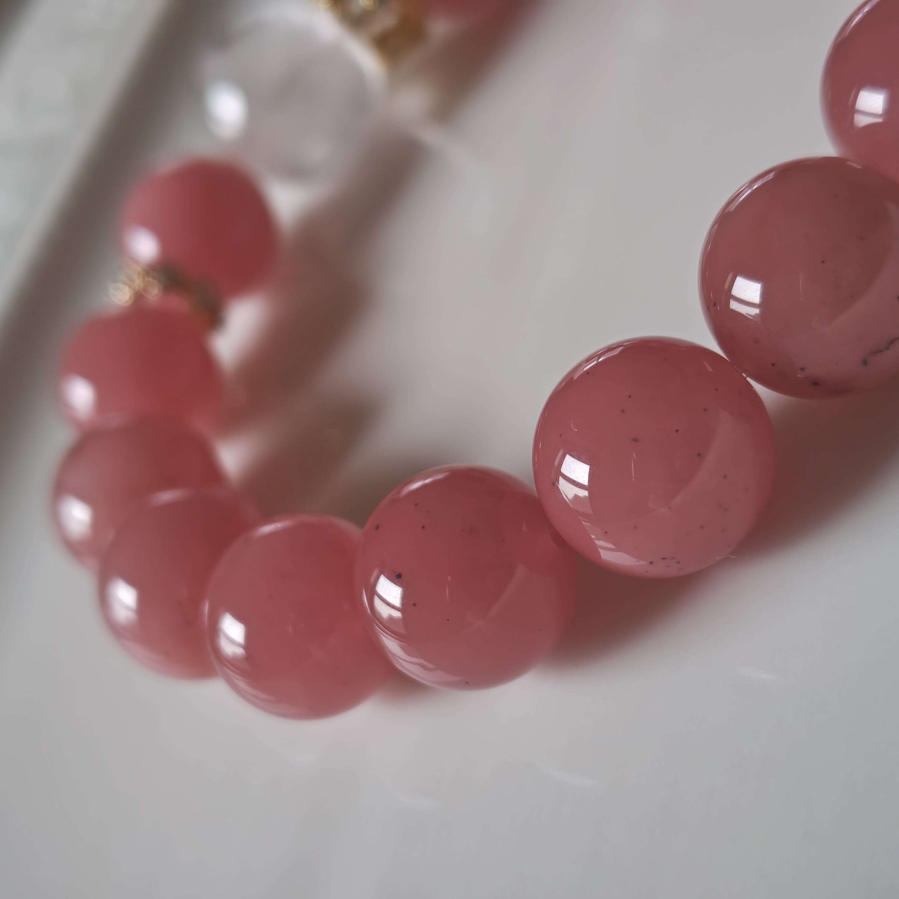 グァバクオーツが持つ愛と癒しの力と、ヒデナイトの神秘的な輝きが絶妙に組み合わさり、身に着けることで心の豊かさが引き立ちます!