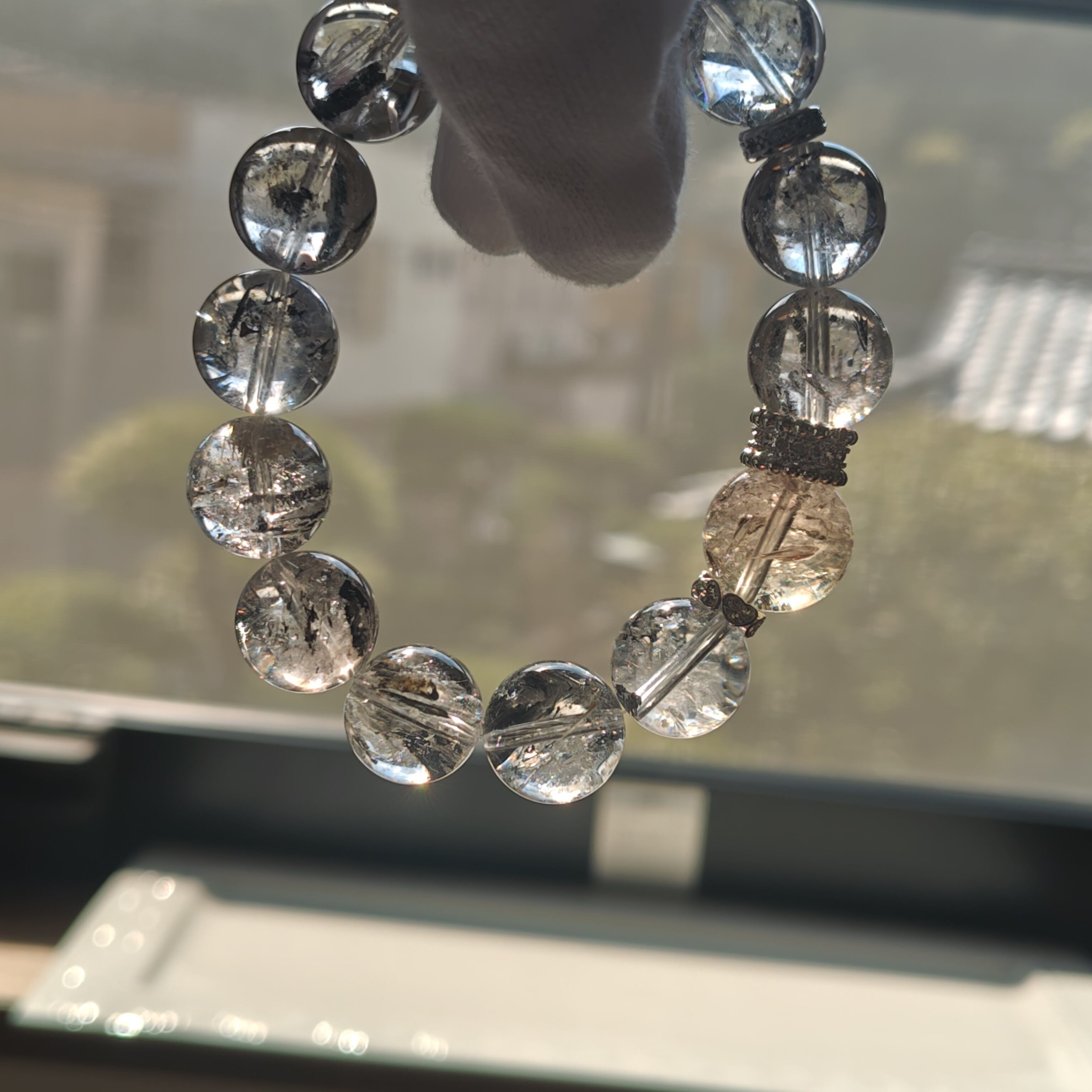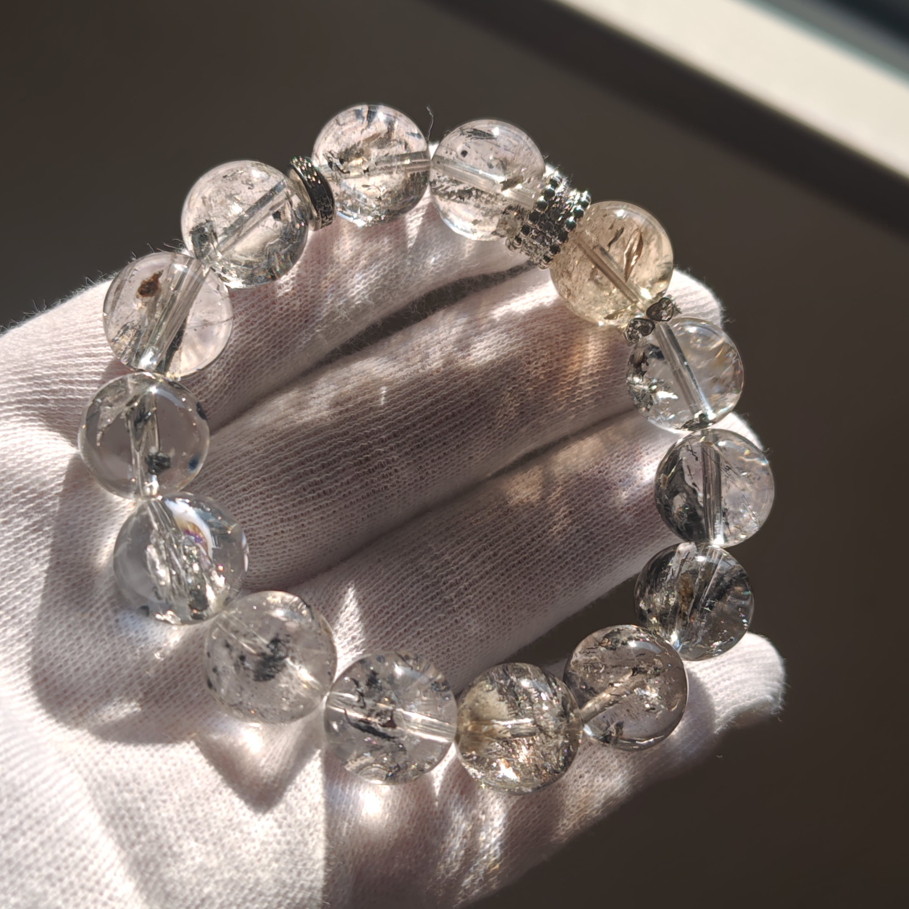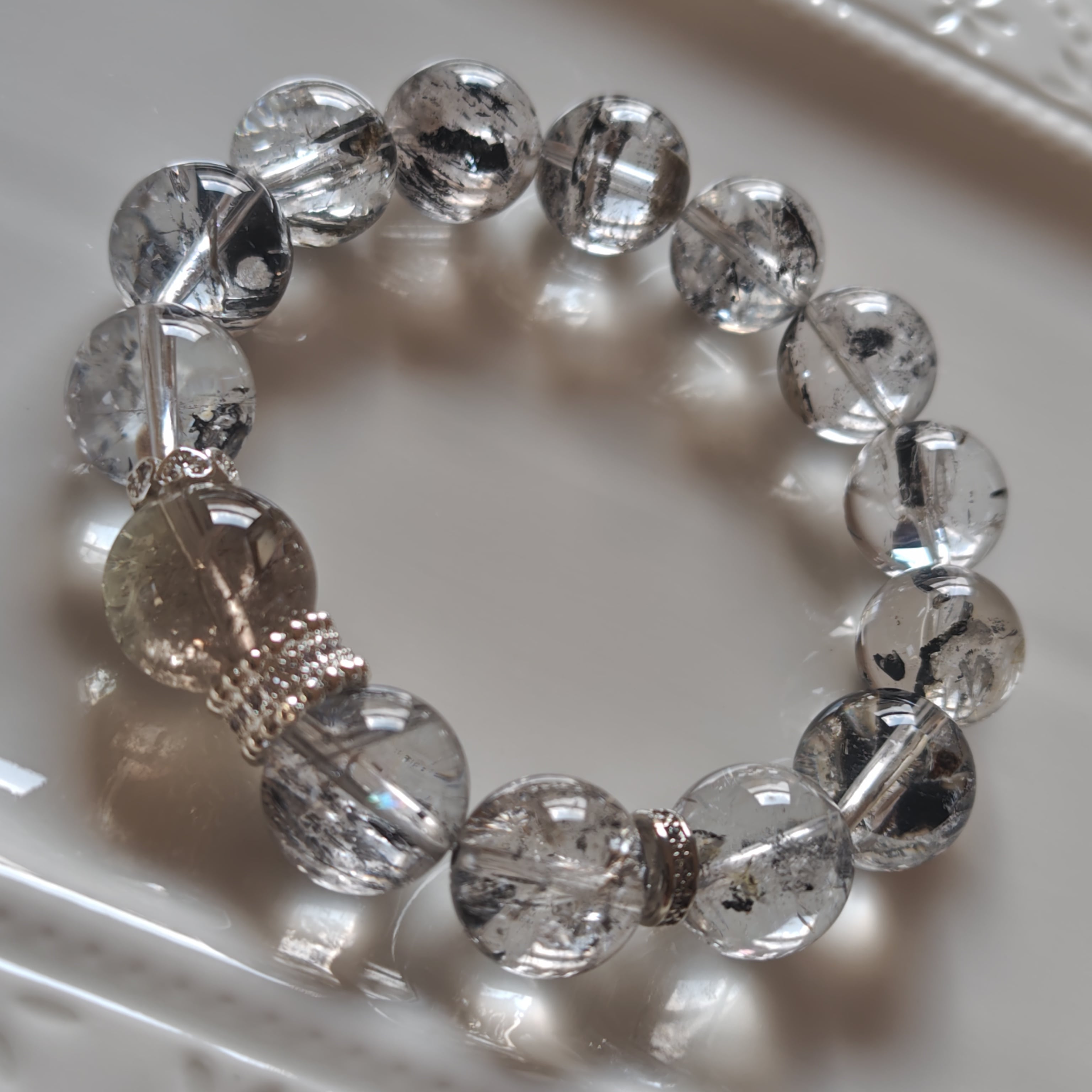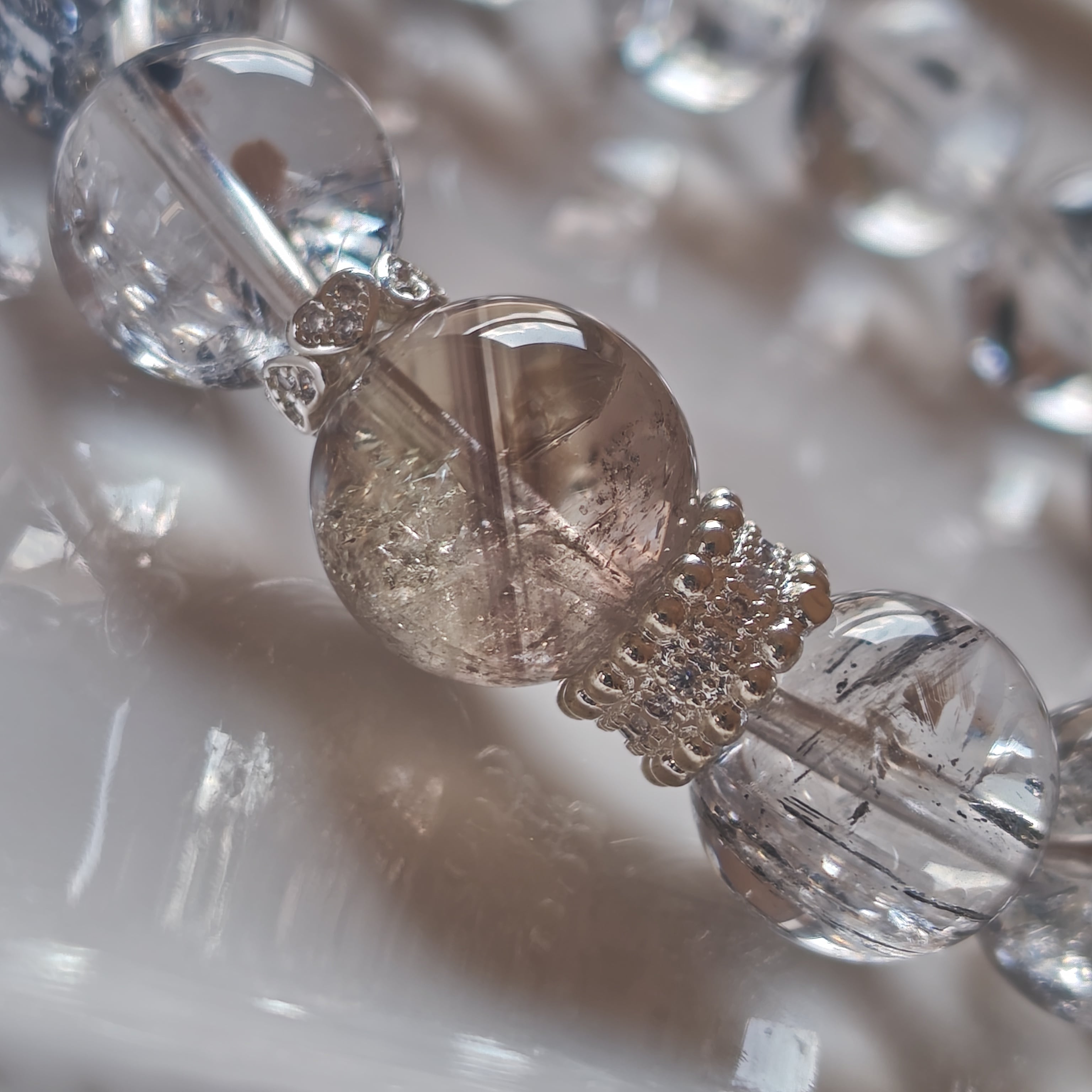 エレスチャルクオーツは、過去からの記憶を持ち、持ち主のスピリチュアルな成長をサポートするパワーストーンとして知られています。また、ゼウスクオーツは、力強さと安定感を与えることで、自己実現を促すストーンです。これらの石が組み合わさることで、内面的な強さと平和をもたらすブレスレットになりました(^^)