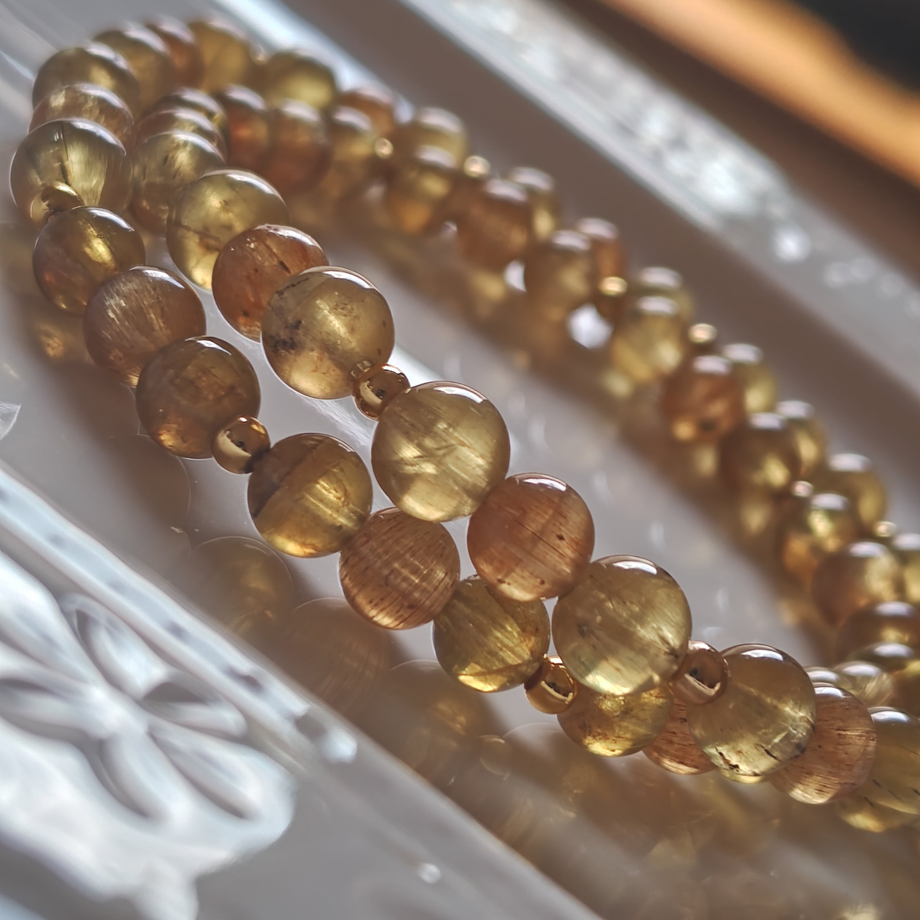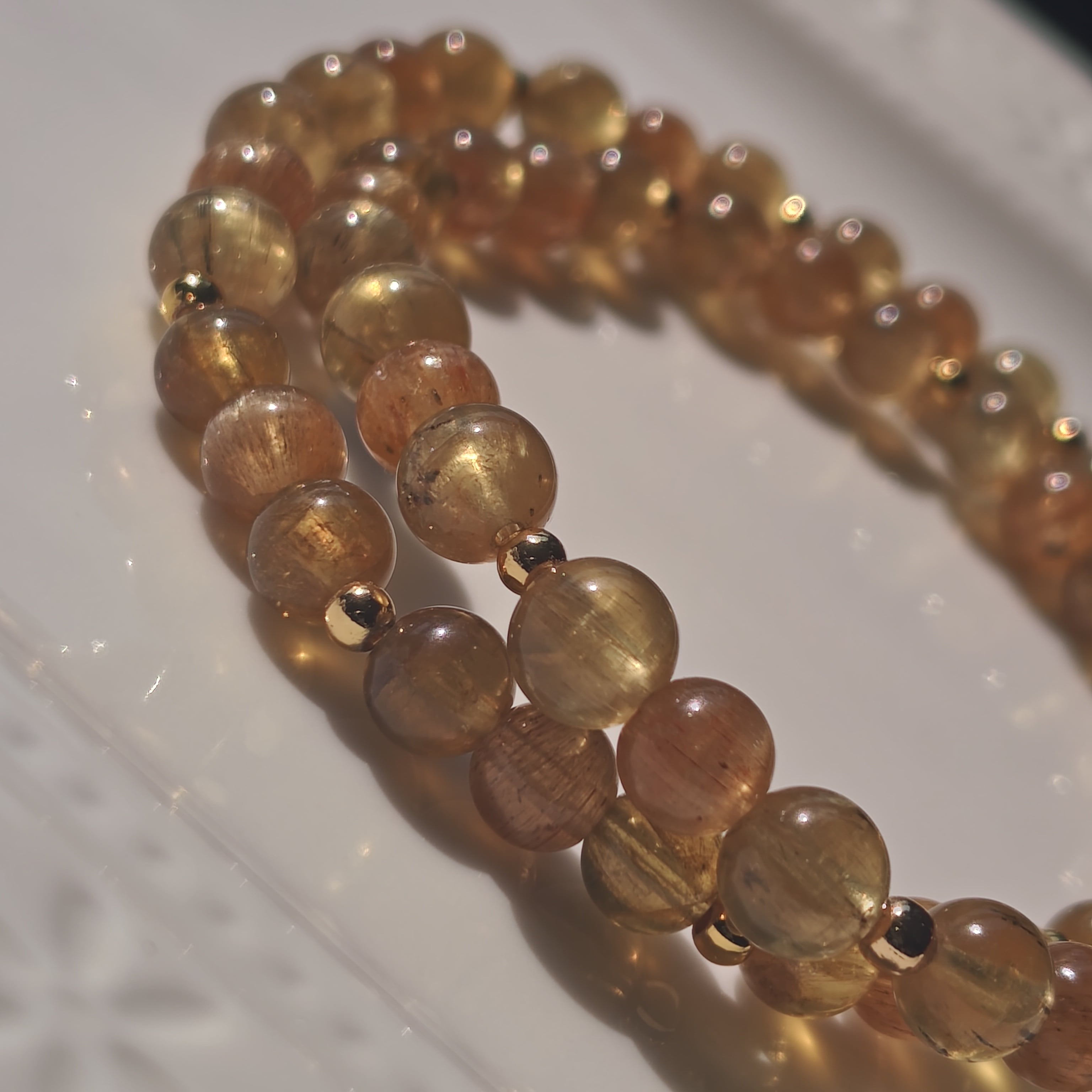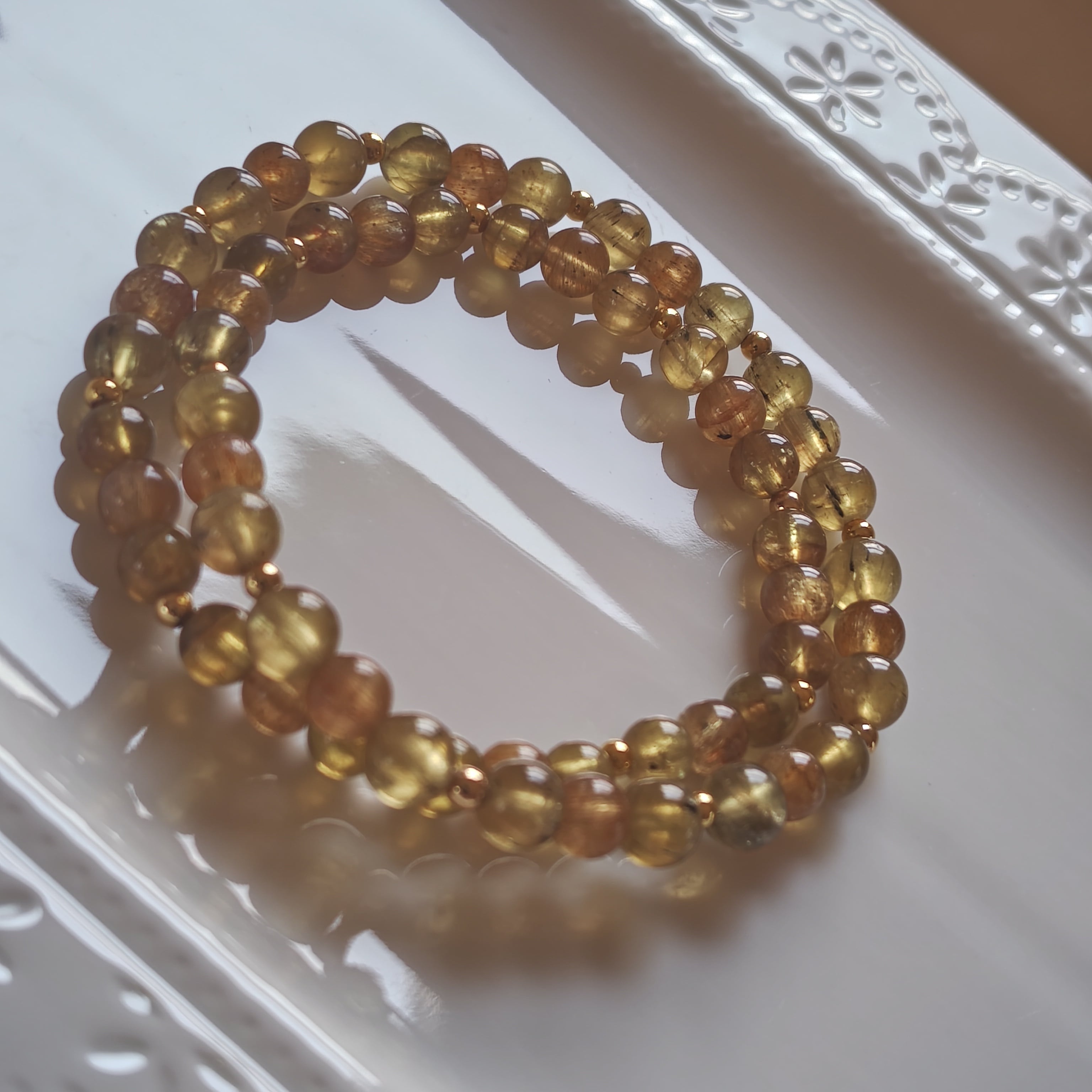 美しいゴールデンアパタイトを使用した二連ブレスレットになります。