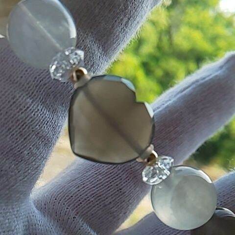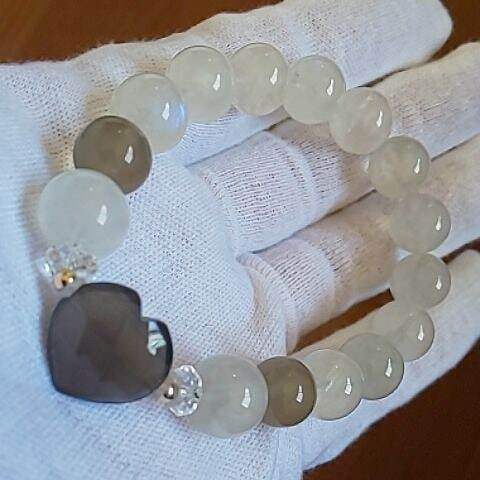 宝石質グレームーンストーンとペリステライトのハートブレス