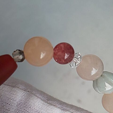 六字真言&ピンクアベンチュリン&ストロベリー&翡翠 ブレス