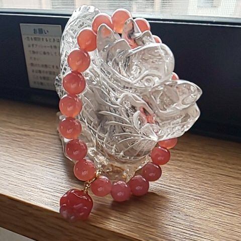 こちらは濃い目のピンク系で、チャームの肉球も同じ塩源瑪瑙です♪