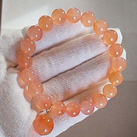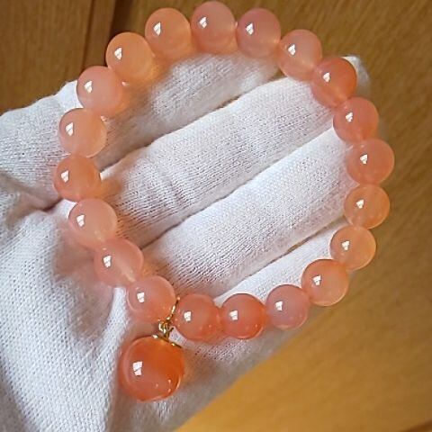 こちらはふんわりオレンジカラーの塩源瑪瑙に、同じカラーの塩源瑪瑙の桃チャームをお付けしました( *´艸`)