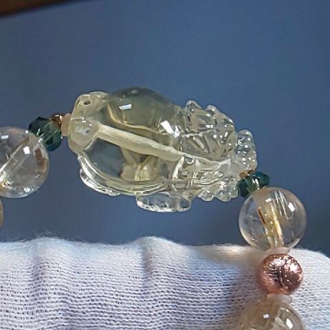 シトリン 龍亀&高品質ゴールドルチル&ピンクギベオン ブレス