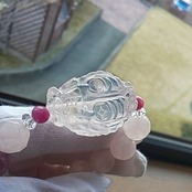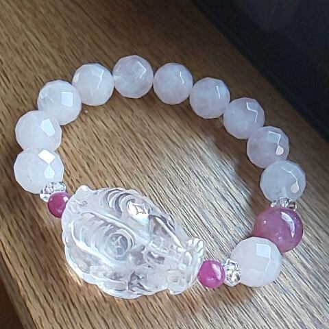 ローズクオーツ龍亀&カットローズクオーツ&ラズベリークオーツ&ルビー ブレス