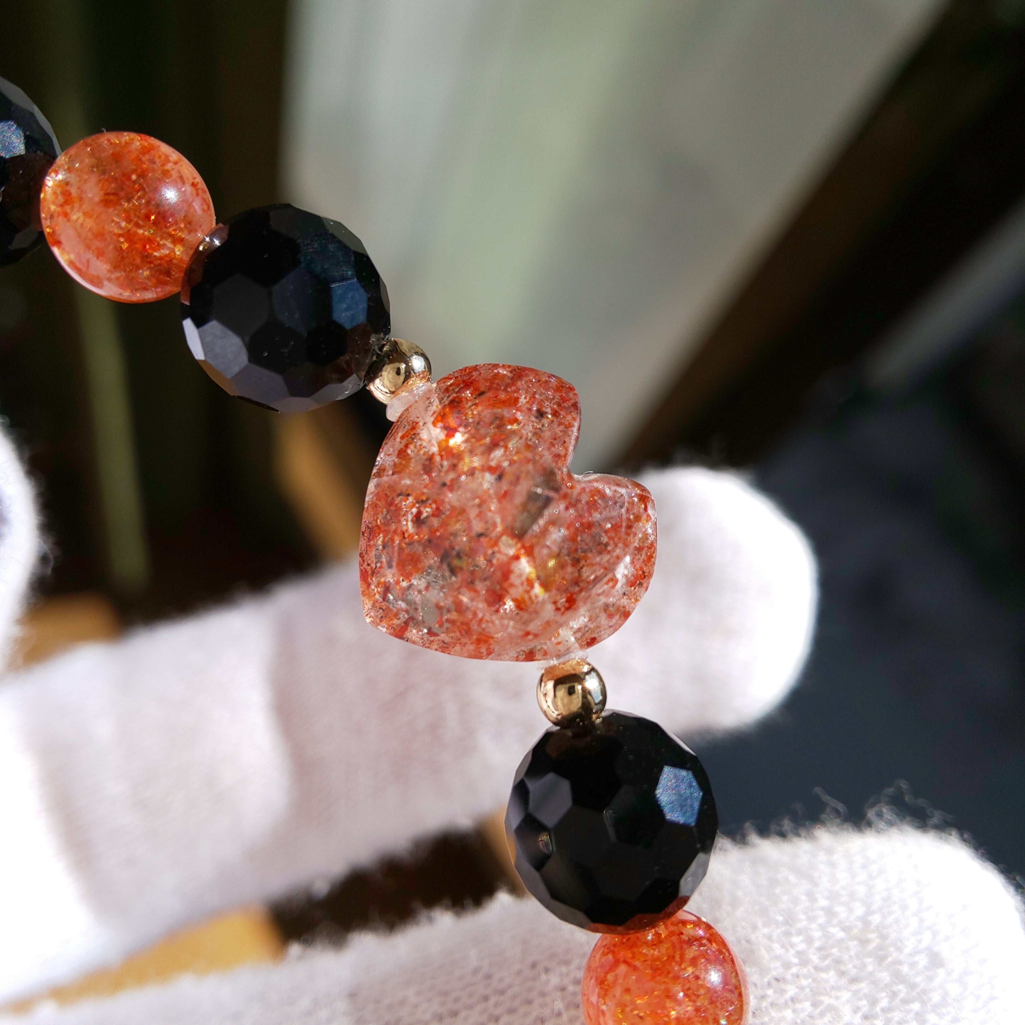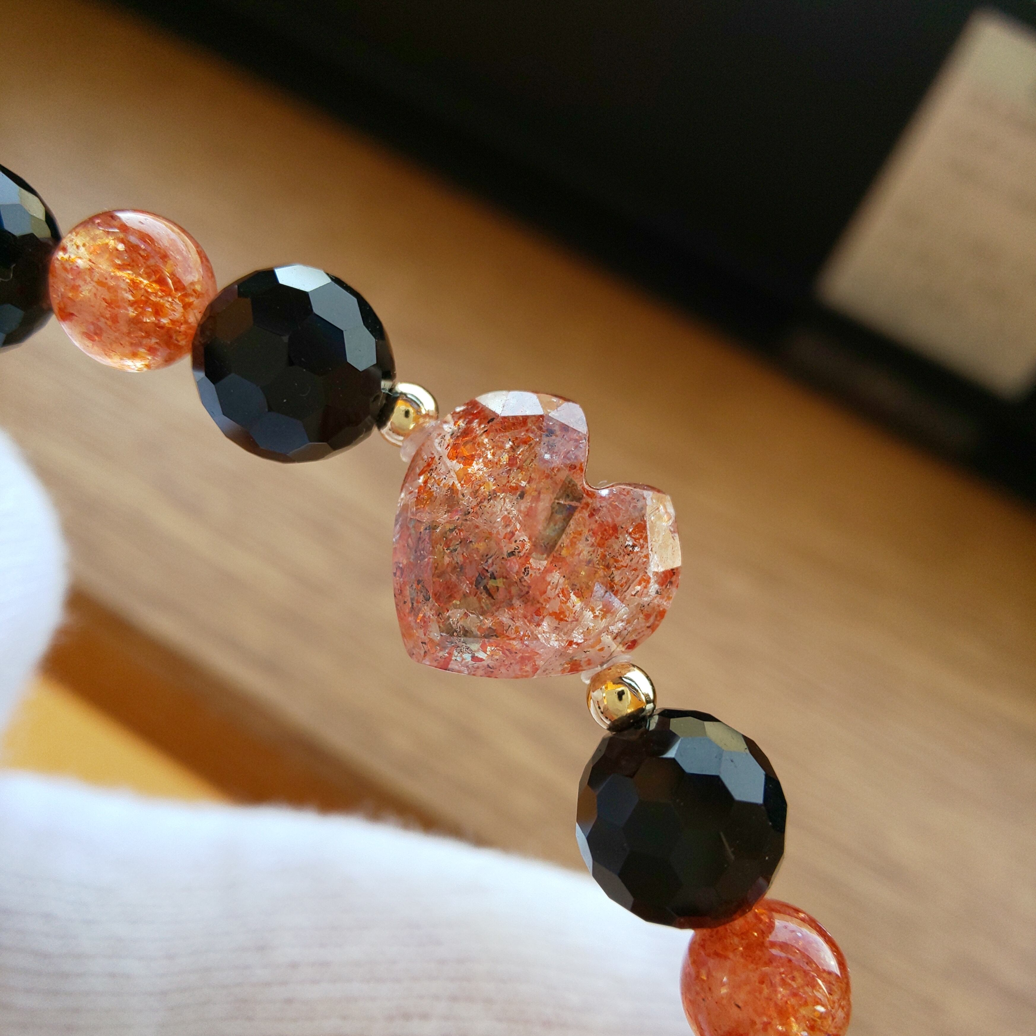 こちらは高品質のサンストーンハートパーツを使ったブレスになります♡