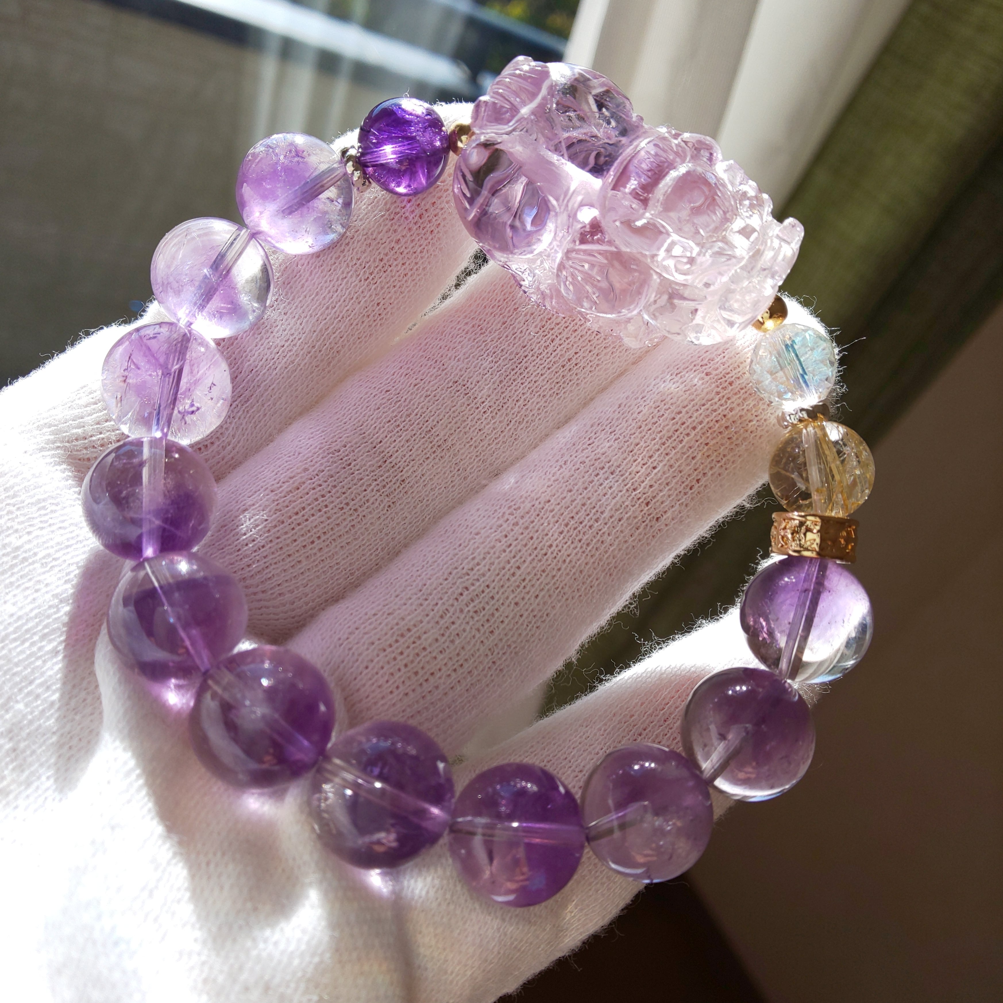 新作♡手彫り貔貅 × アメジストファントムインクオーツ × ルチル × アメジスト
