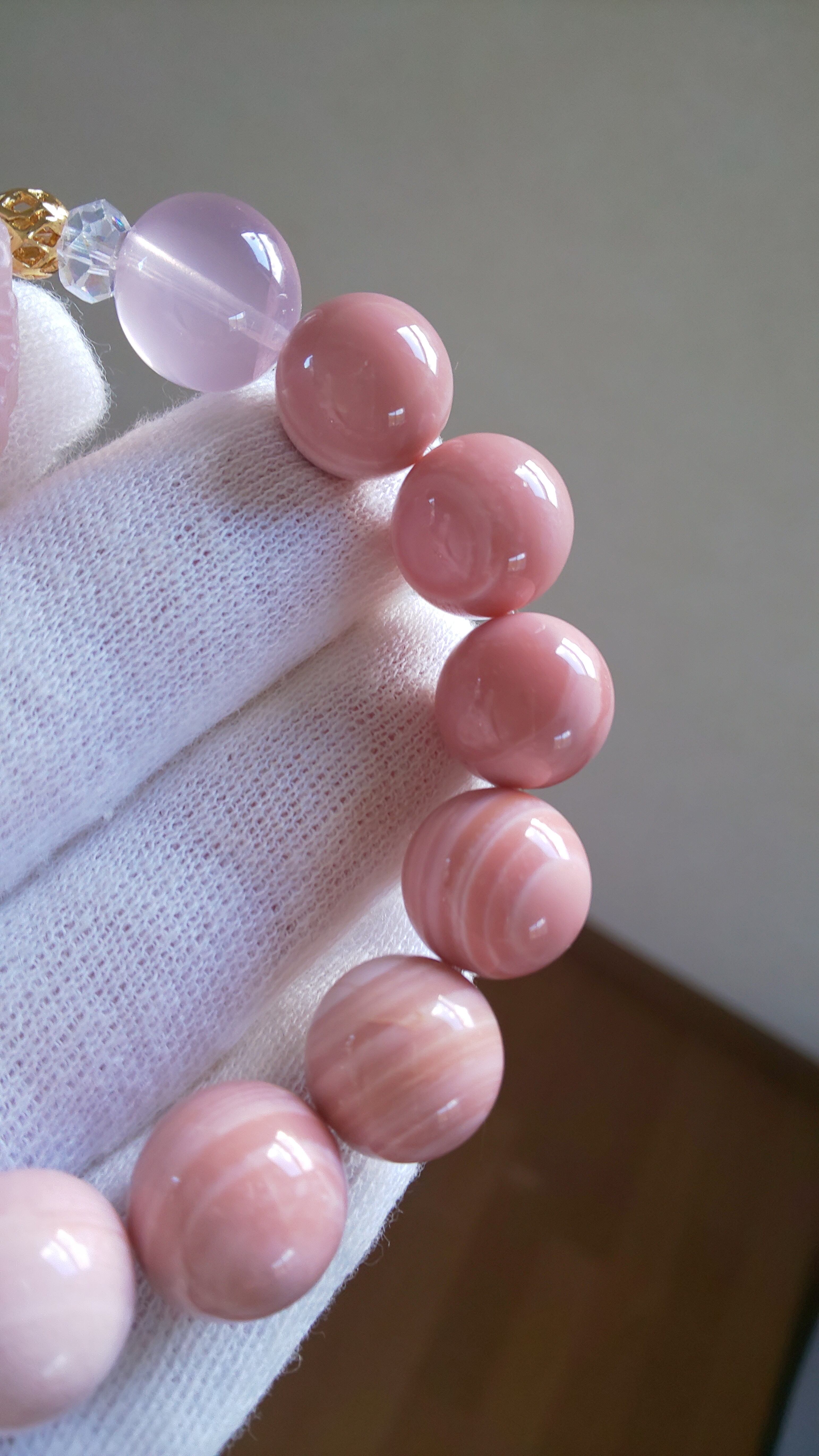 今回はとても希少な高品質の天眼タイプのピンクオパールが入荷できましたので同じくピンクオパールのガネーシャでブレス作製しました♡