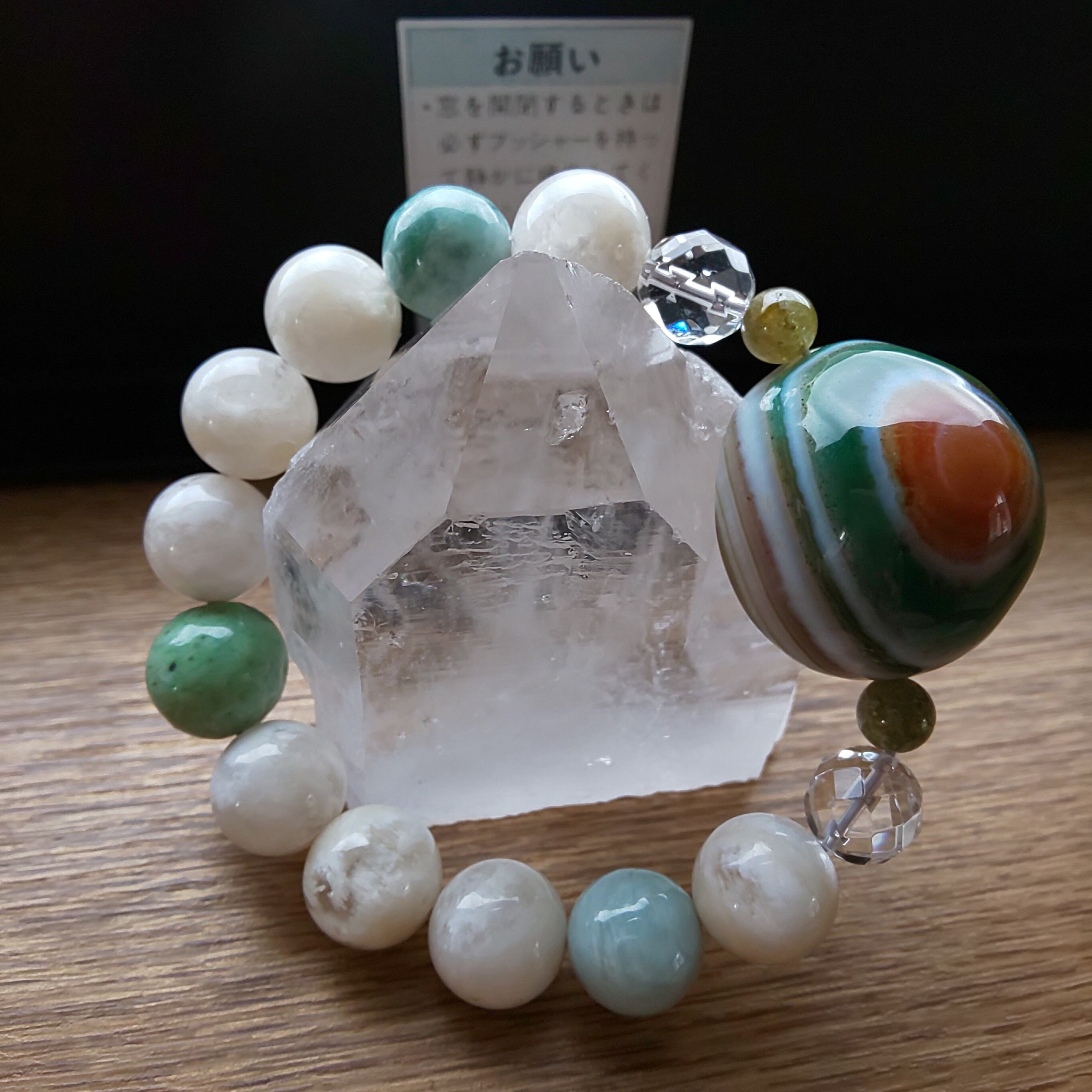 羊眼天珠と日高翡翠を使ったブレスのリクエストがありましたので一粒万倍と天赦日と寅の日が重なる大開運日に作製してみました♪