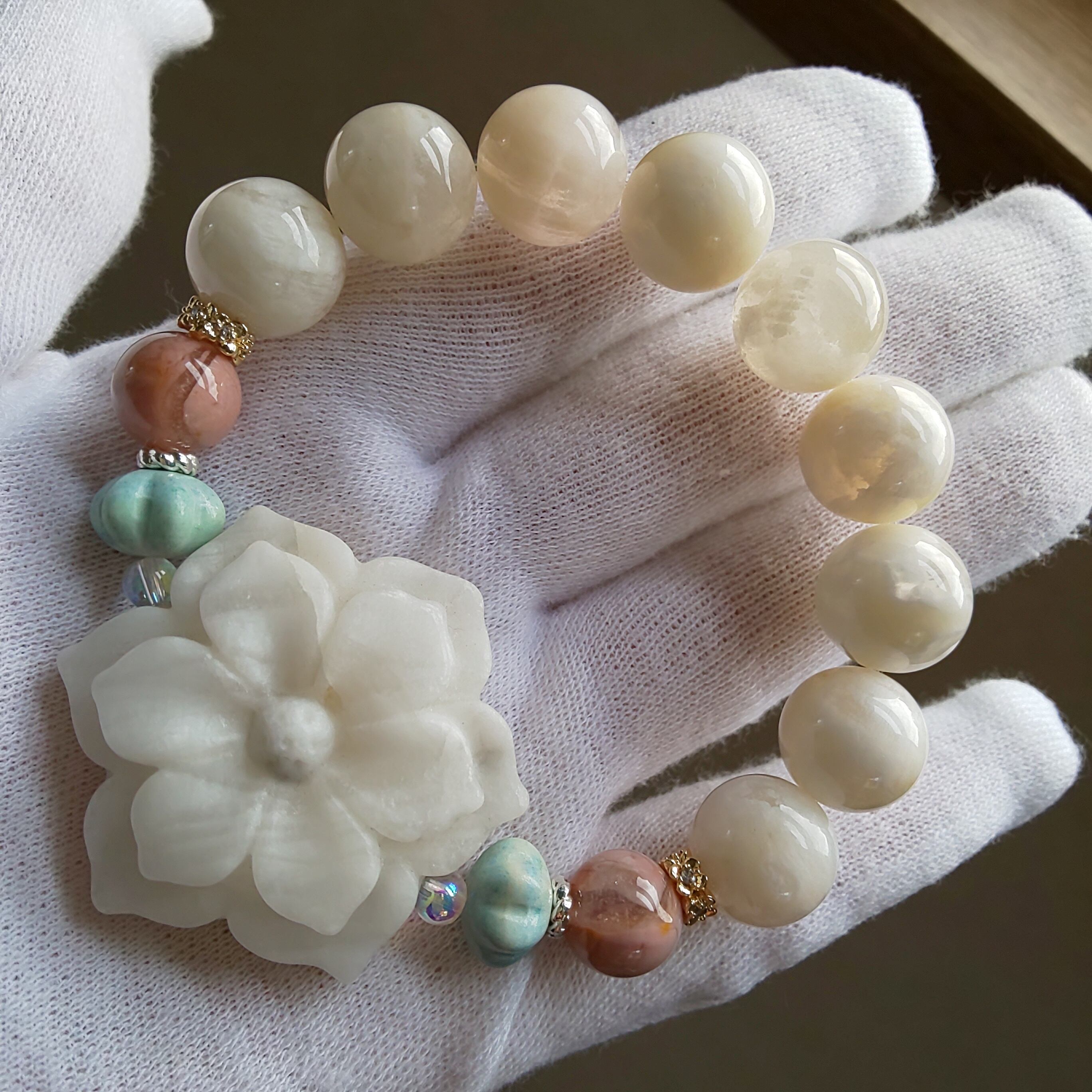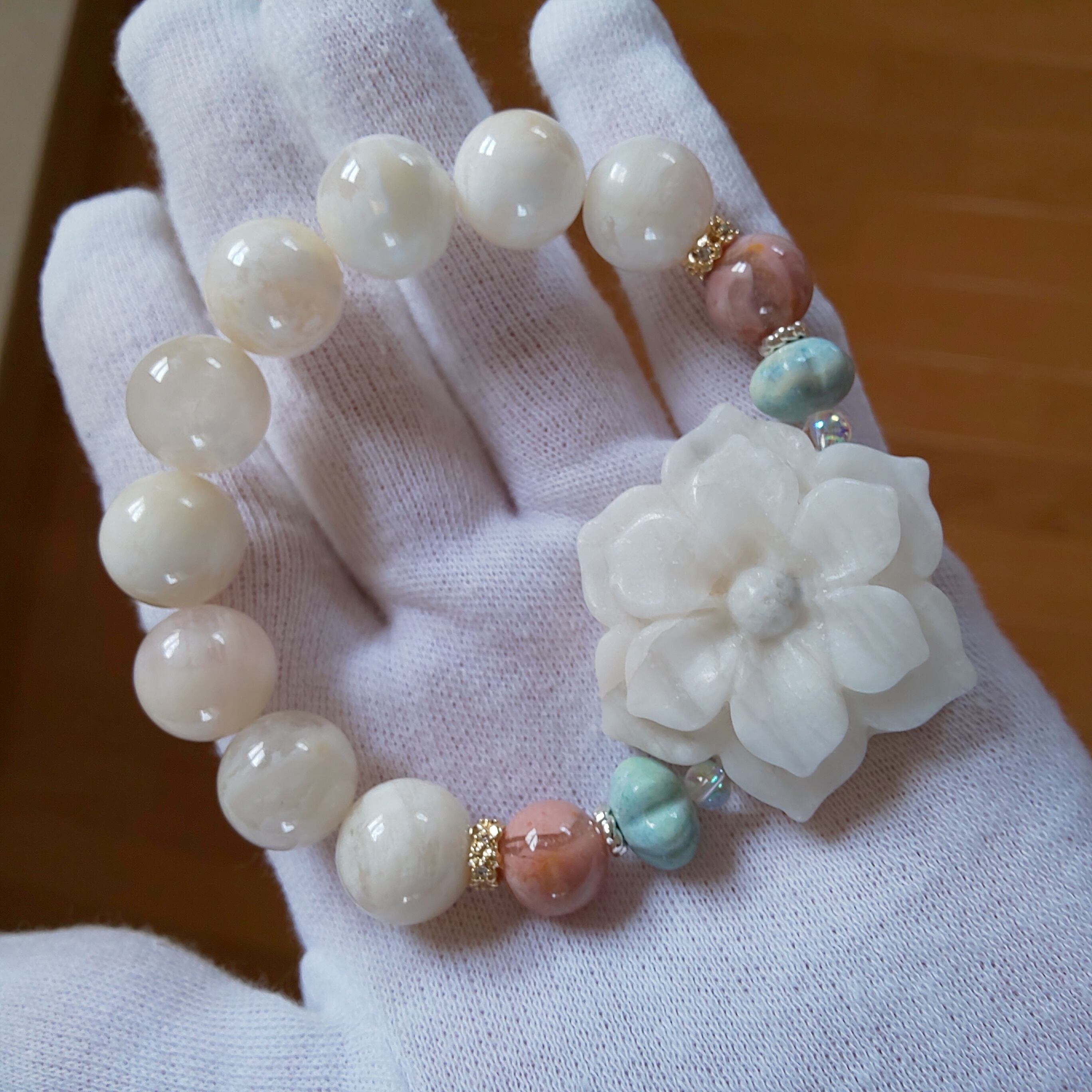 今回はハウライトのお花パーツを使ってホワイトブレスを作製しました♪