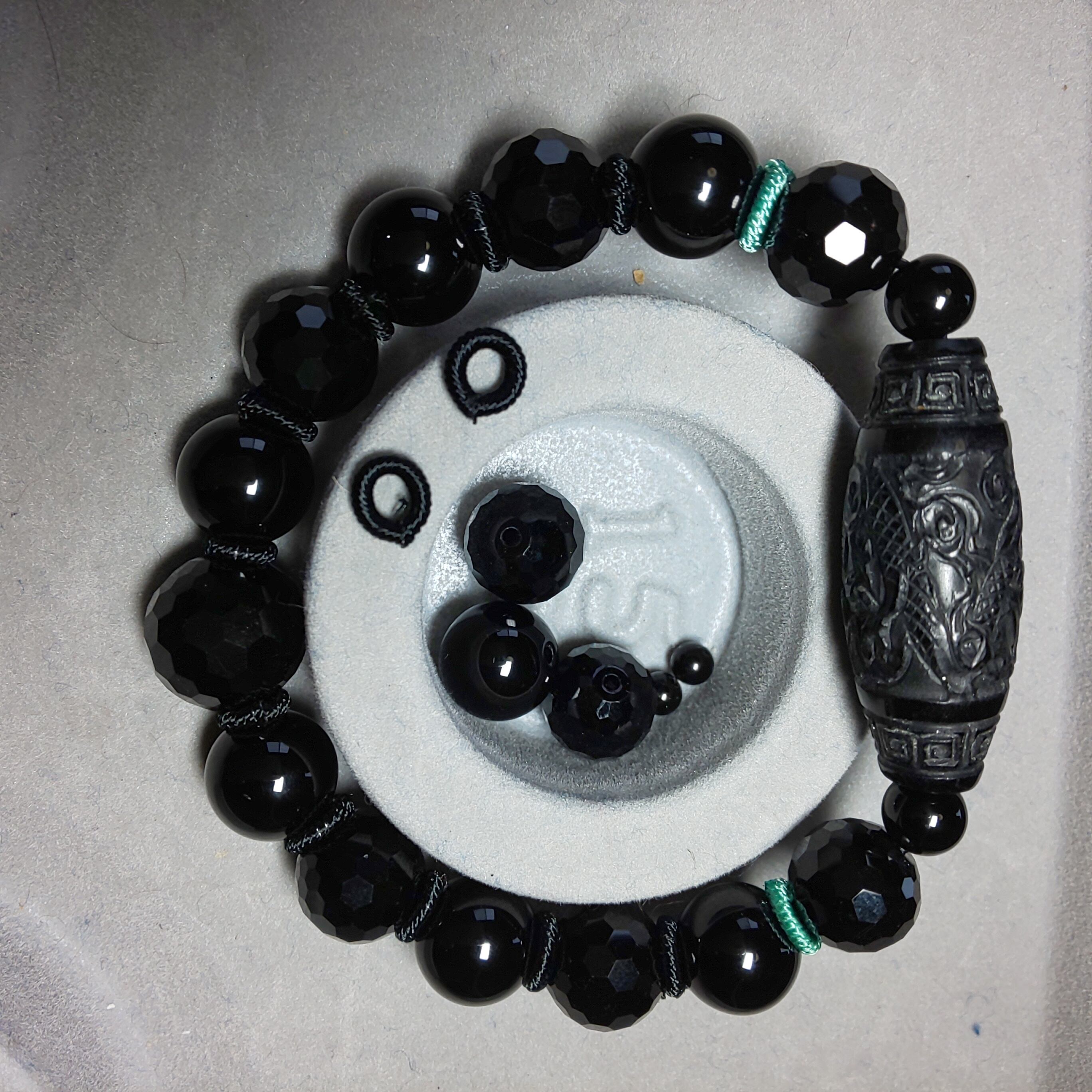 ■オブシディアン 天珠型龍彫り→33.6㎜
