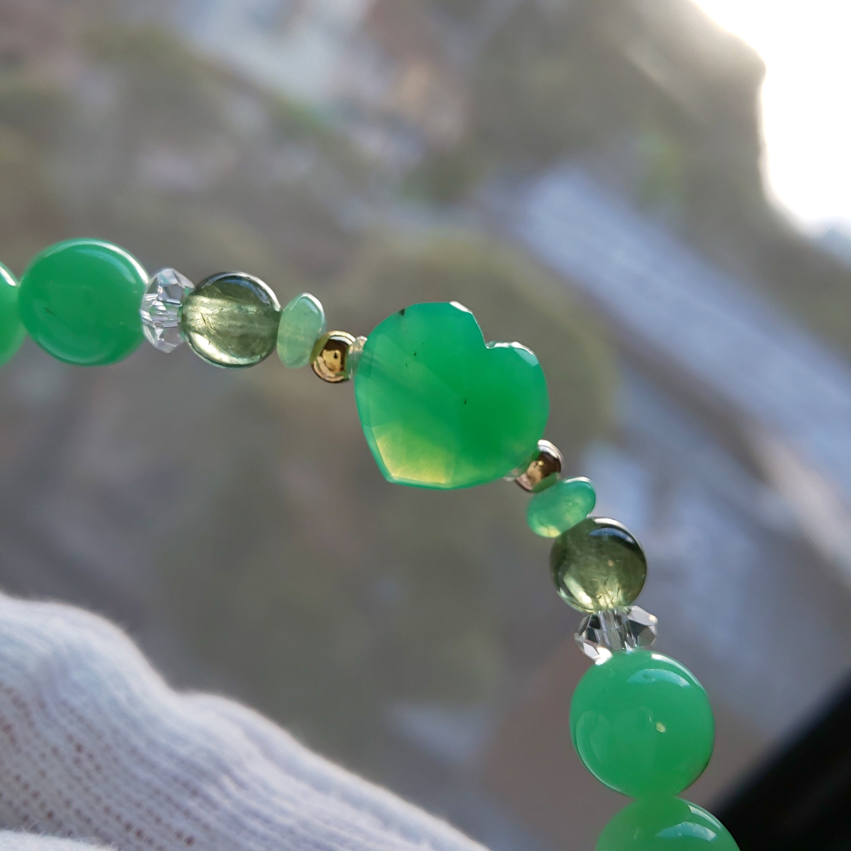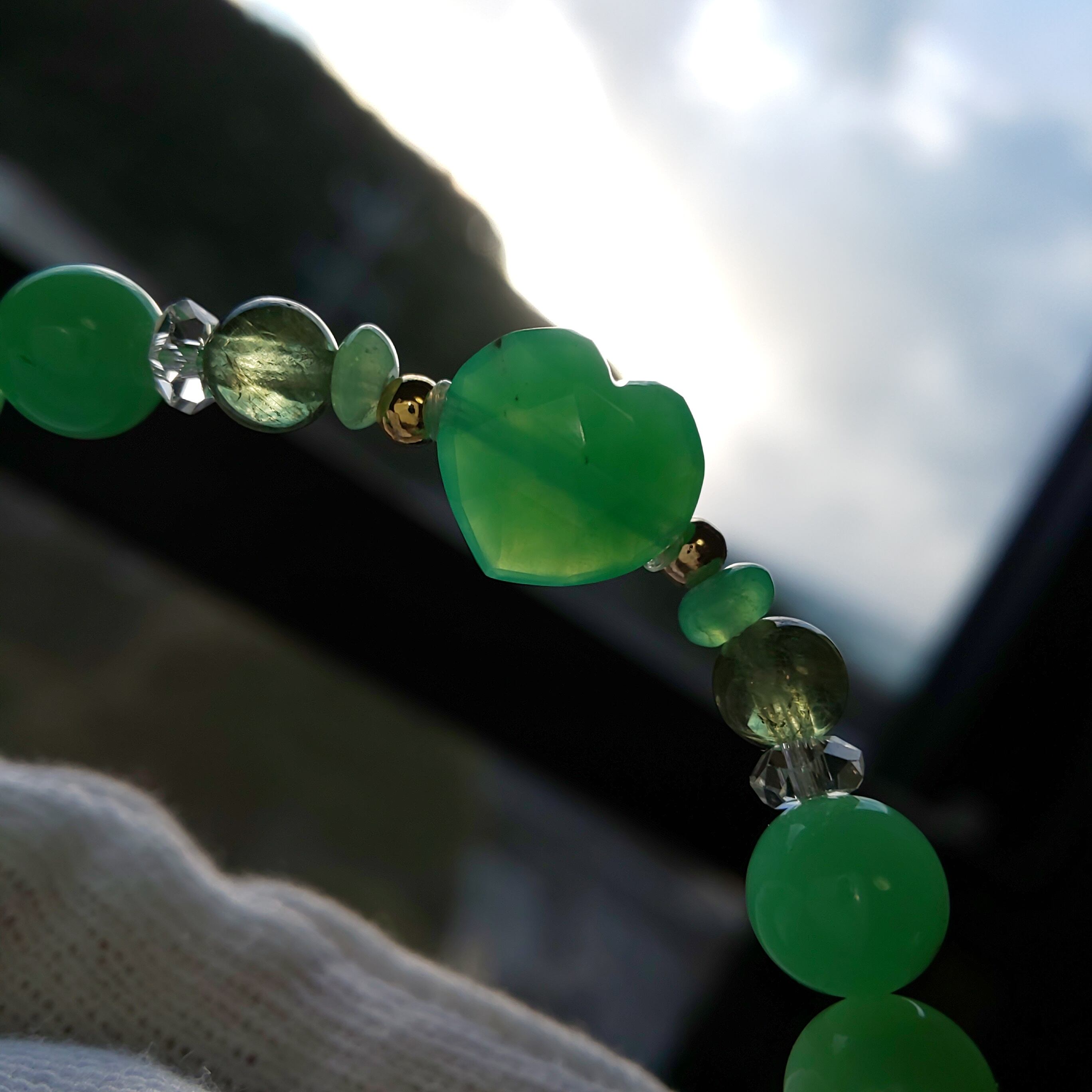 ハートパーツ両サイドには高品質クリアグリーンアパタイトと極上クリソプレーズ極小ボタンと水晶ボタンカットで華やかにさせました♪