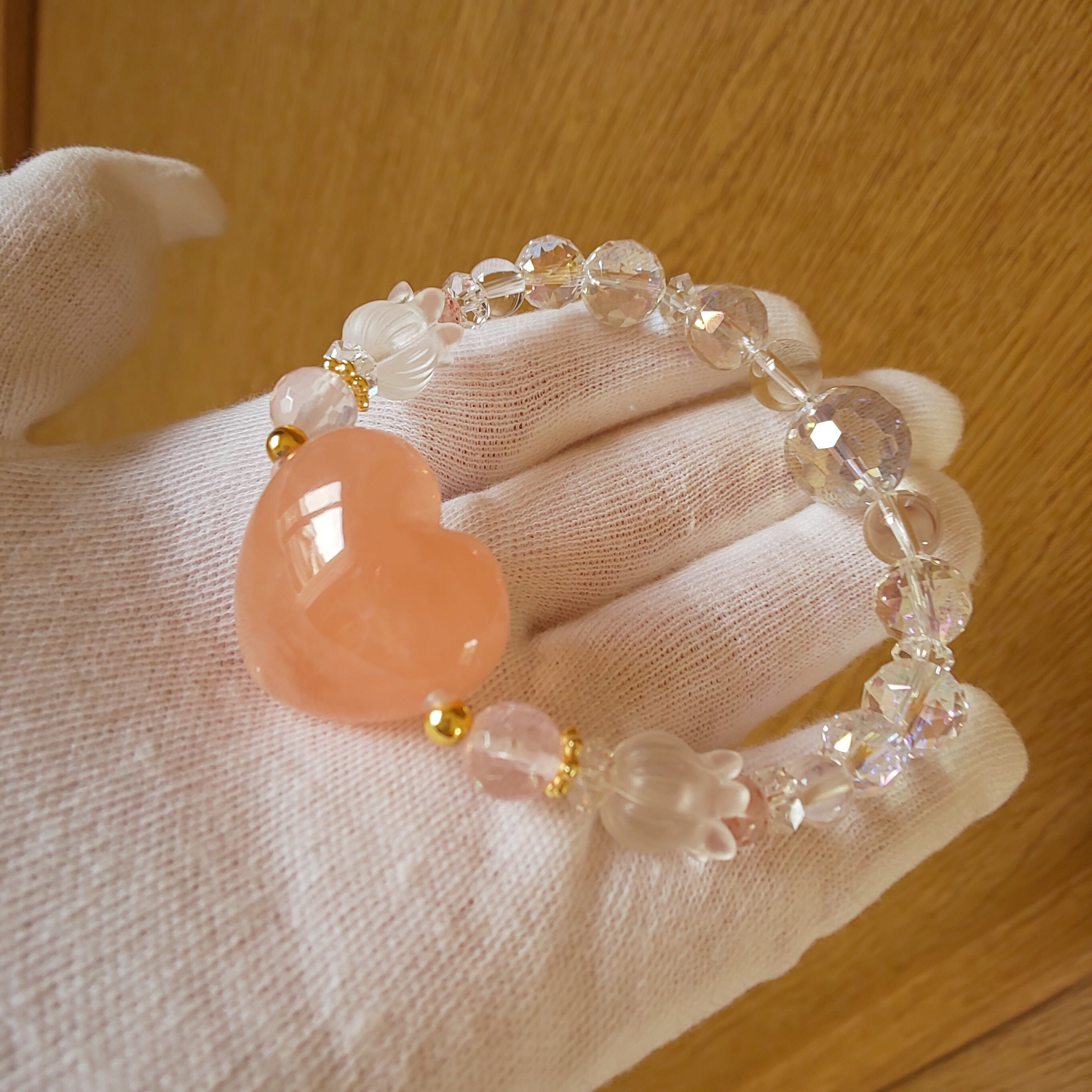 大きなモルガナイトのハートパーツで水ブレスを作製しました♪