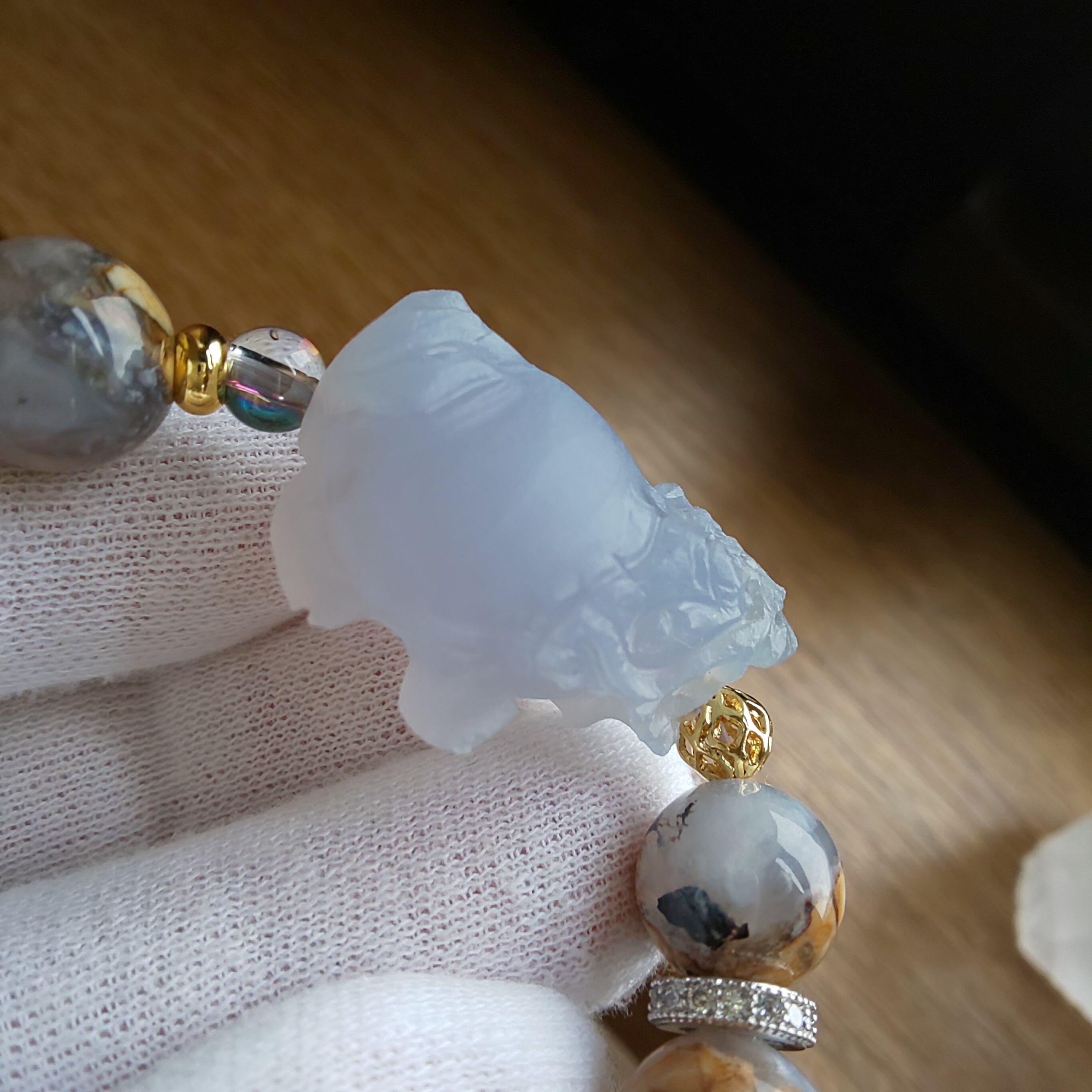 オールカルセドニーでシンプルな龍亀ブレスを作製しました♪