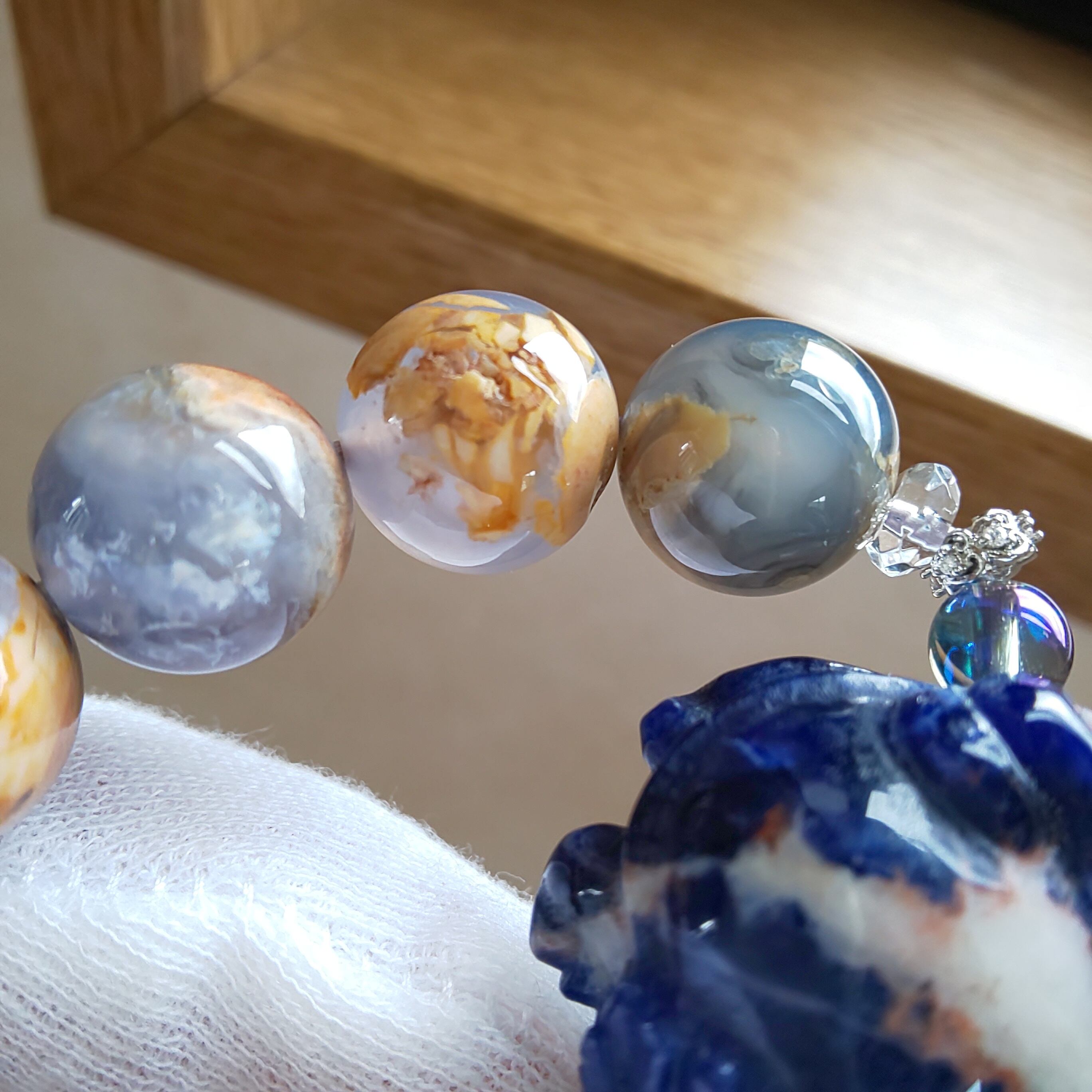 熊の胸元の様な模様のとっても可愛らしいソーダライトの龍亀さんに出会えましたので母岩付きカルセドニーと合わせてみました♪