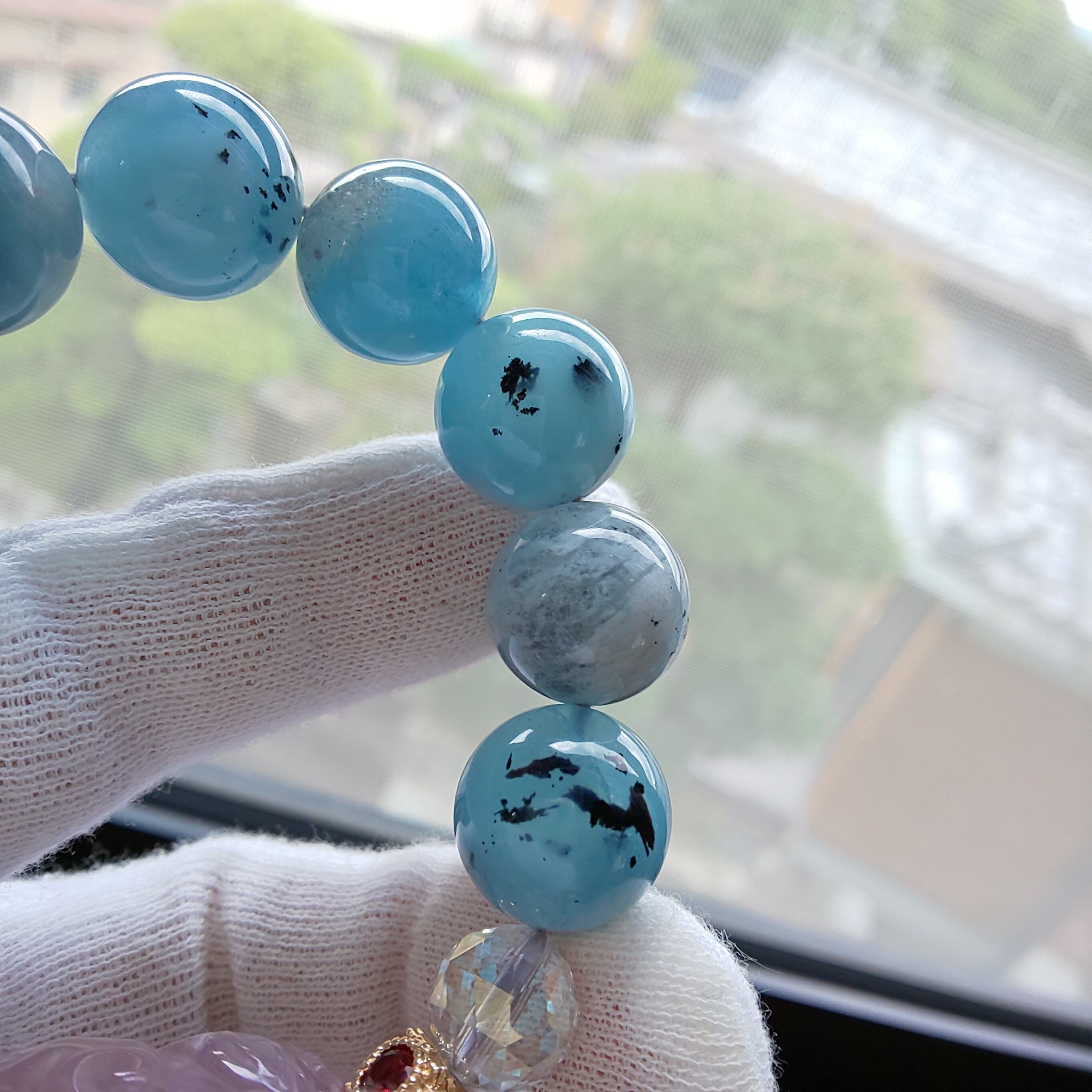 こちらはとてもクリアなオパライトの羽根つきガネーシャさんにアクアマリンを合わせました♪