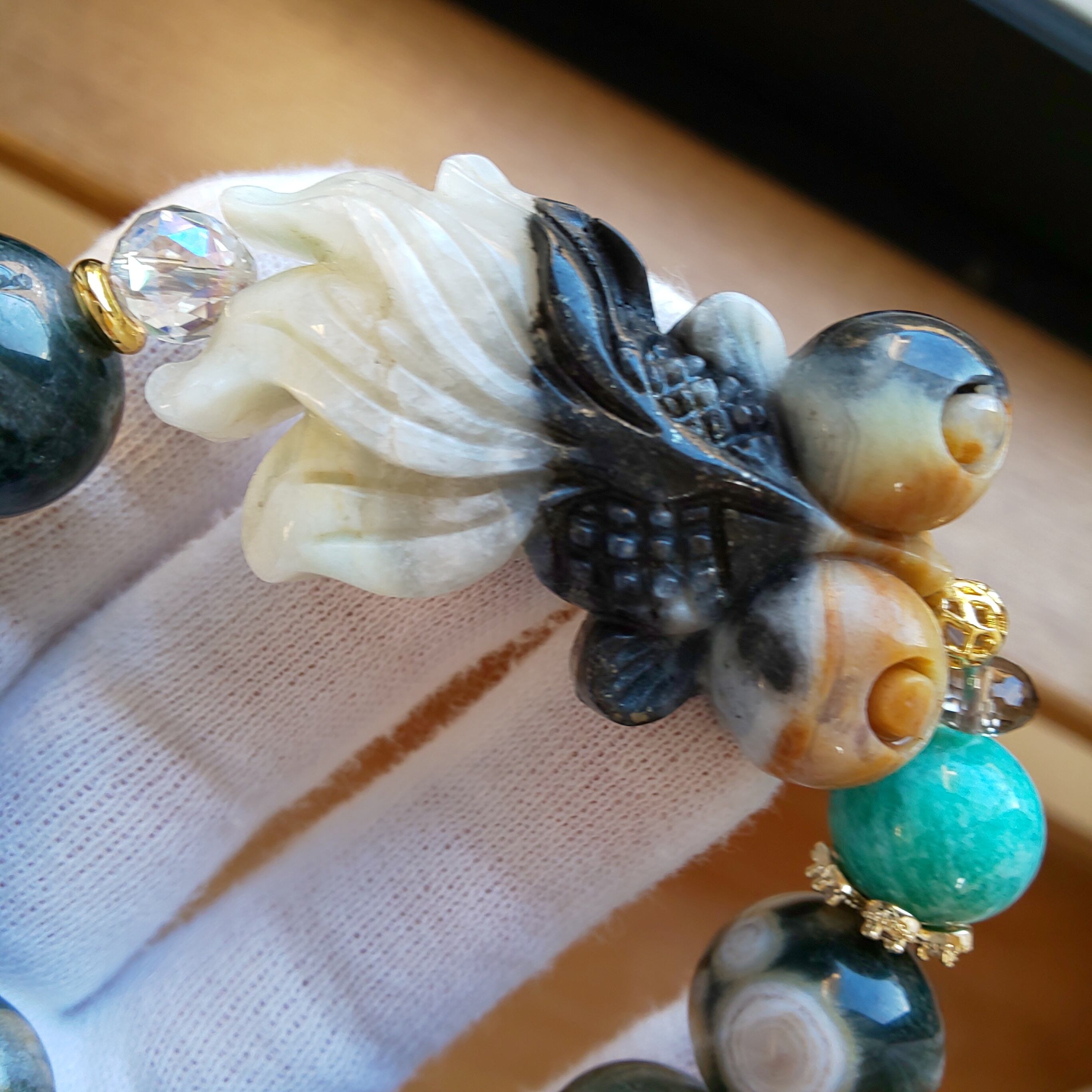オーシャンジャスパーには高いヒーリング効果があると言われ、精神的な安心感や安定感をもたらし、悩みや問題などの解決へと導いてくれます。 包容力や奉仕の精神を養ってくれる石でもあります。