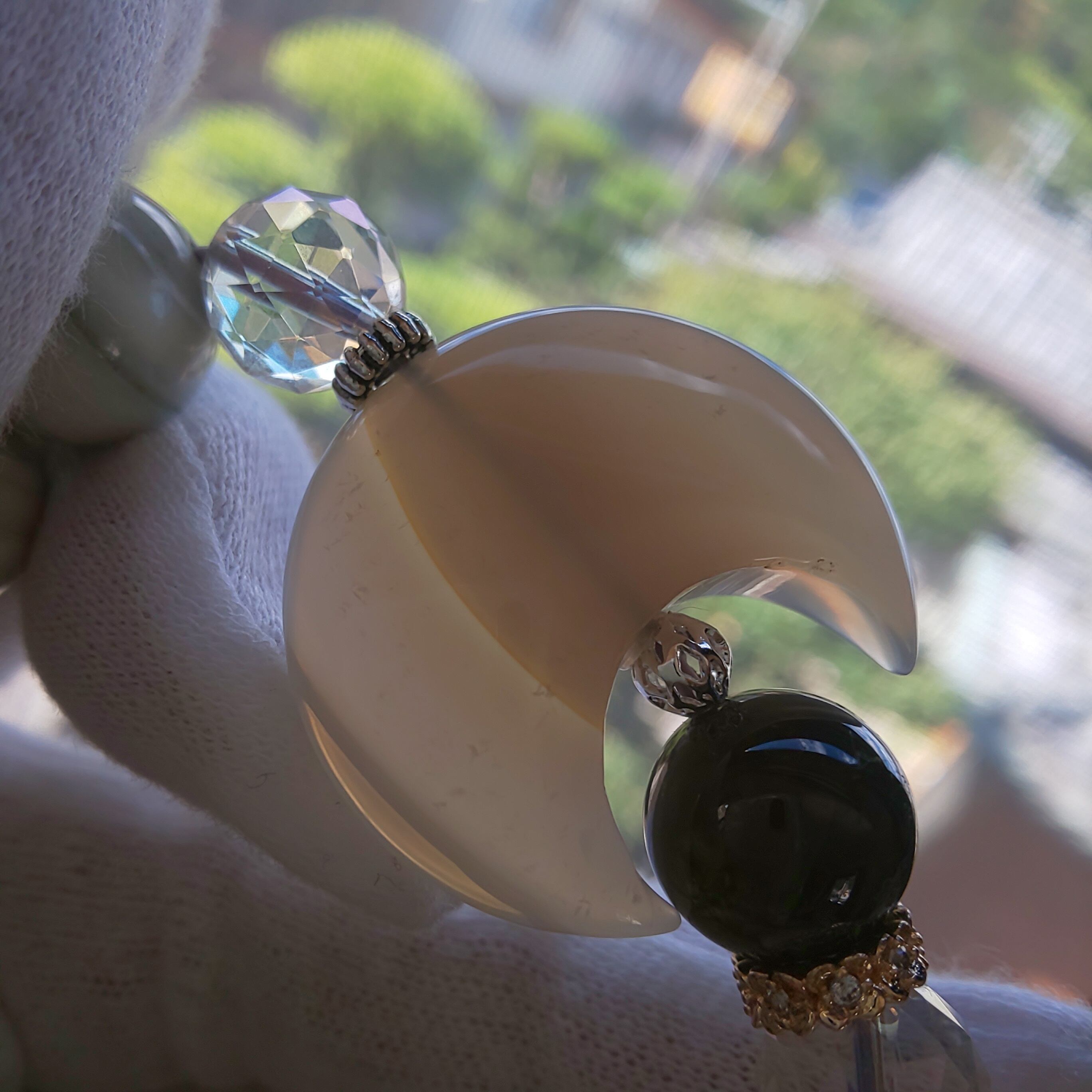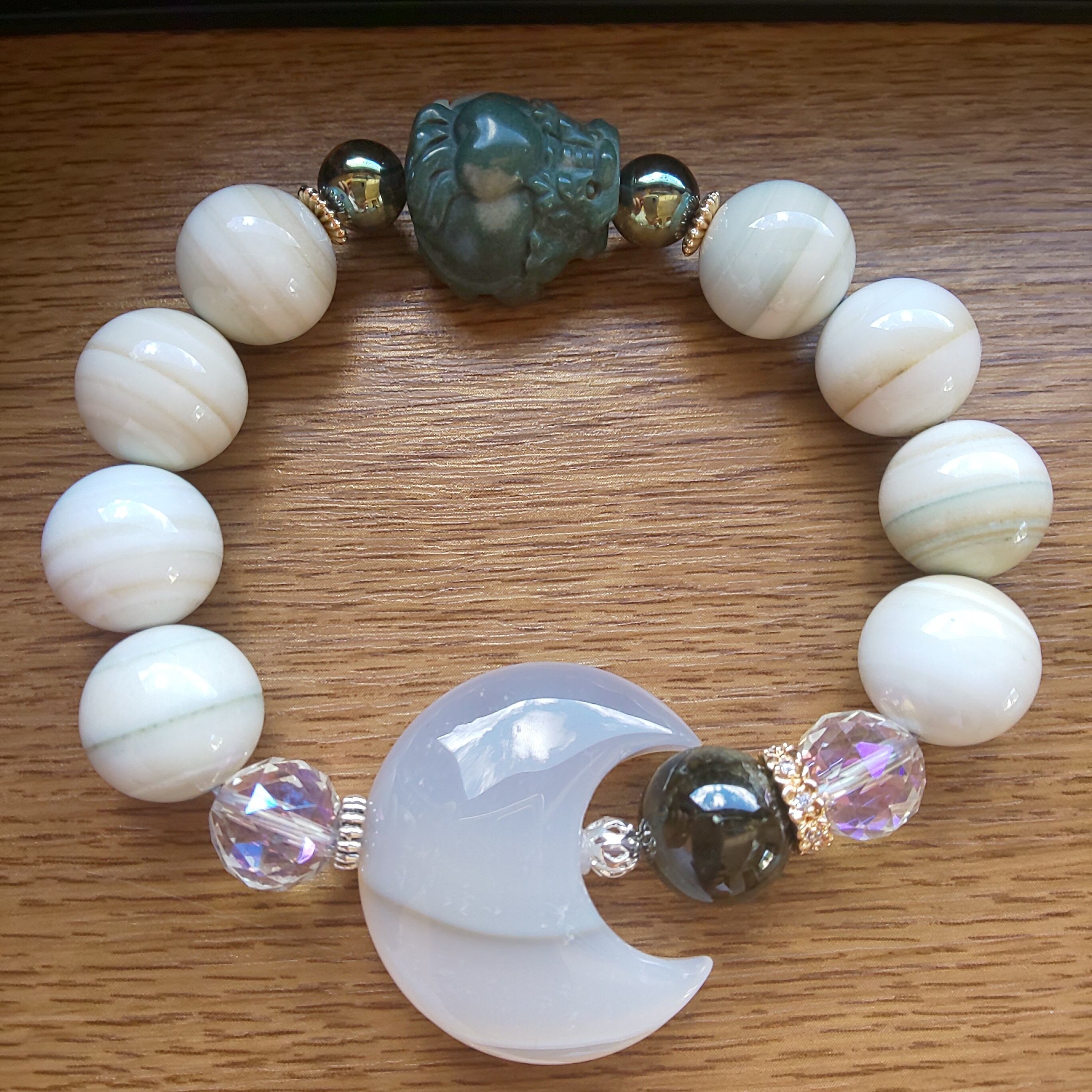 透明感のある縞瑪瑙のお月様パーツとハートを背負った可愛らしいジェイドちび龍亀ちゃんで組みました♪
