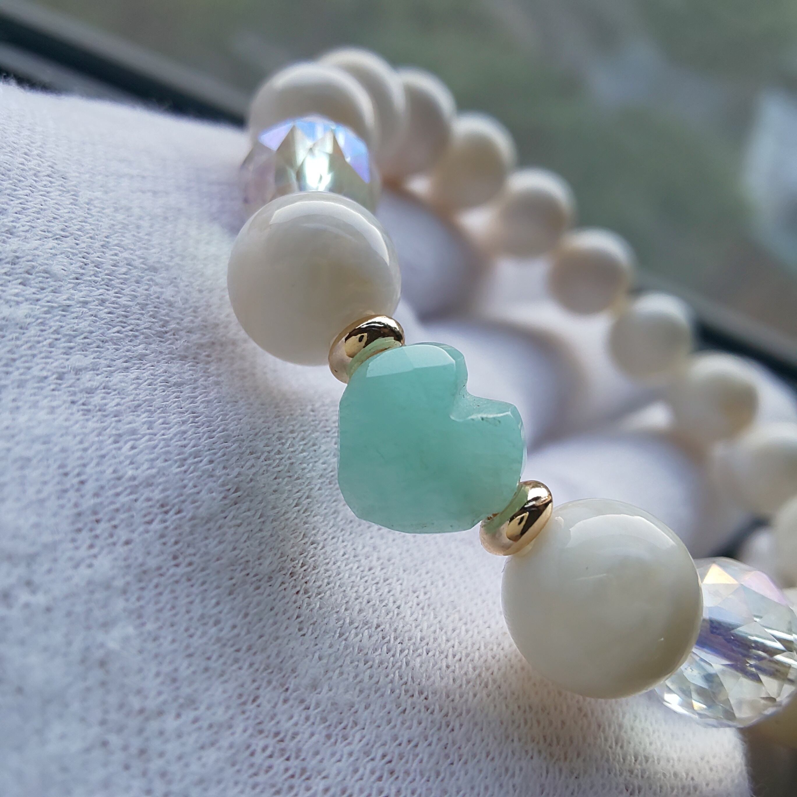 イライラやマイナスの感情を浄化し、ストレスを解消するヒーリング効果があるとされます。 心が疲れたときにアマゾナイトを見つめれば、雲間から青空が見えたような明るい気持ちになることでしょう。 また、アマゾナイトには持ち主の自立心を育み、コミュニケーション能力を高める効果があるともいわれます。