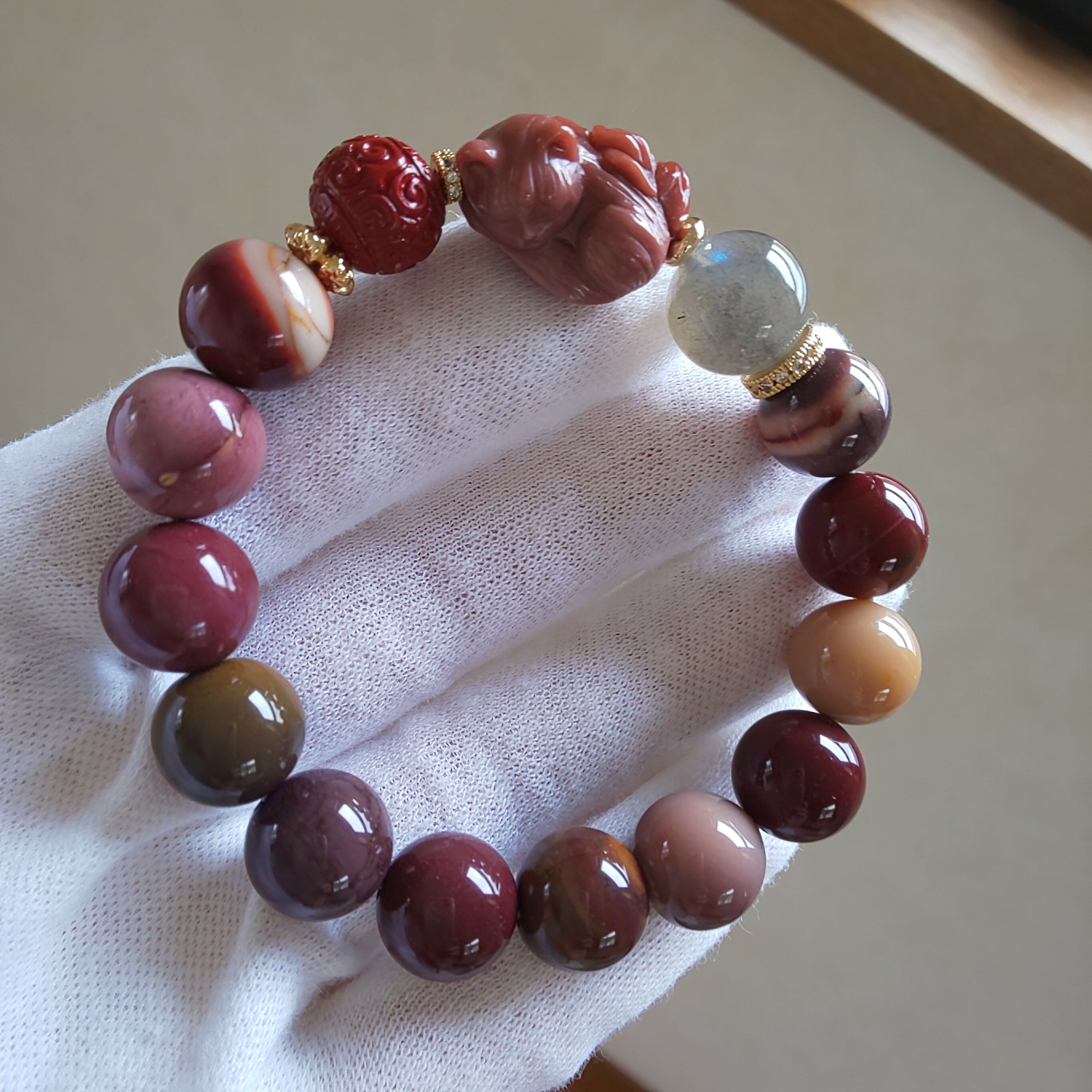 ラブラドライトの大玉とシナバー回紋珠をアクセントに入れました( 〃▽〃)