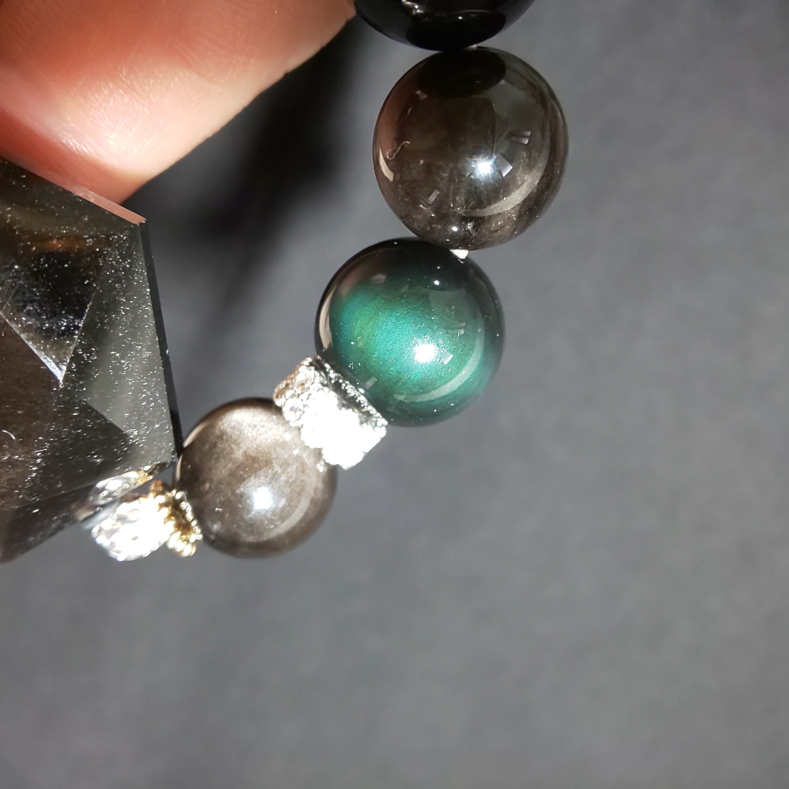 ベースもシルバーオブシディアンとレインボーオブシディアンの二種類のオブシディアンを使用しました♪