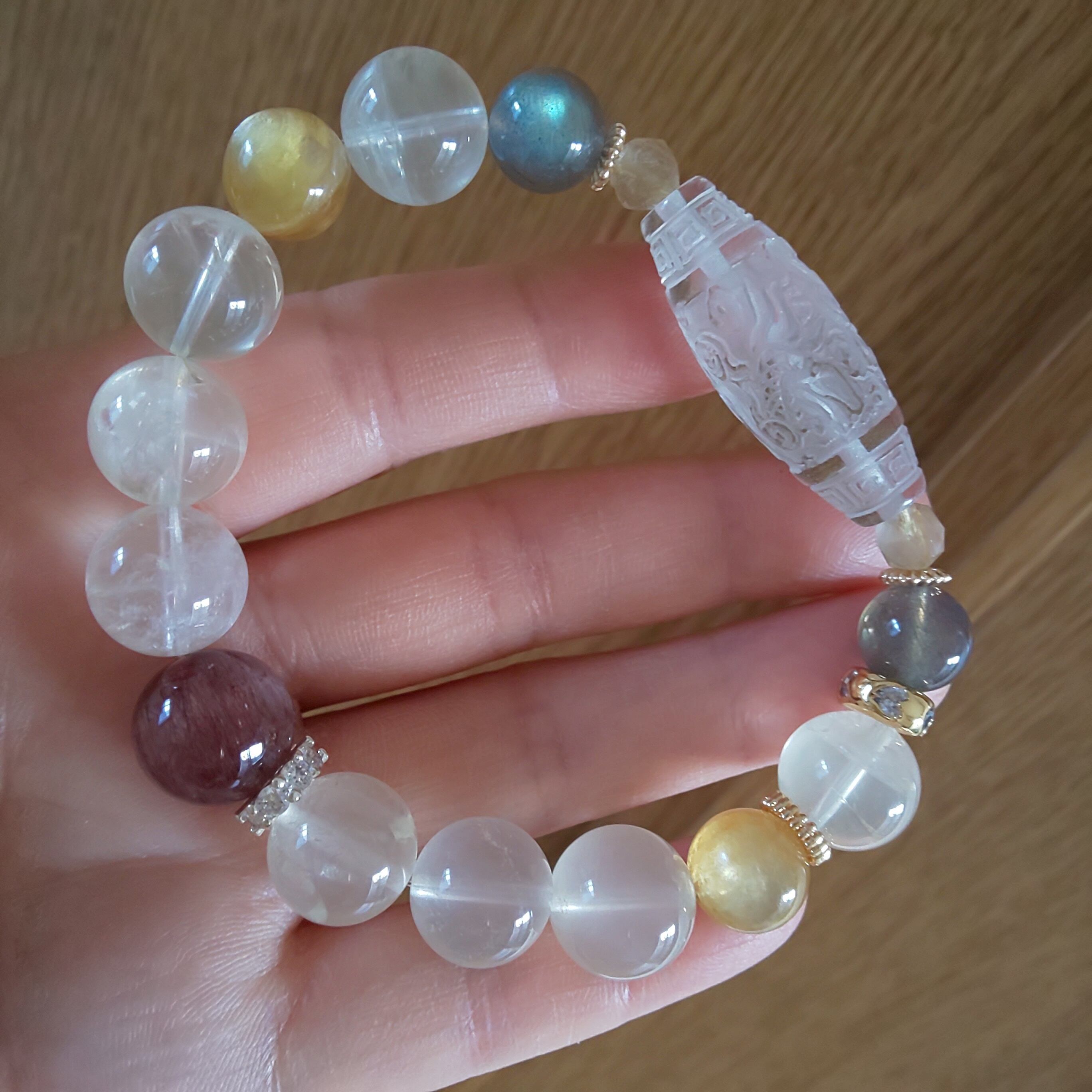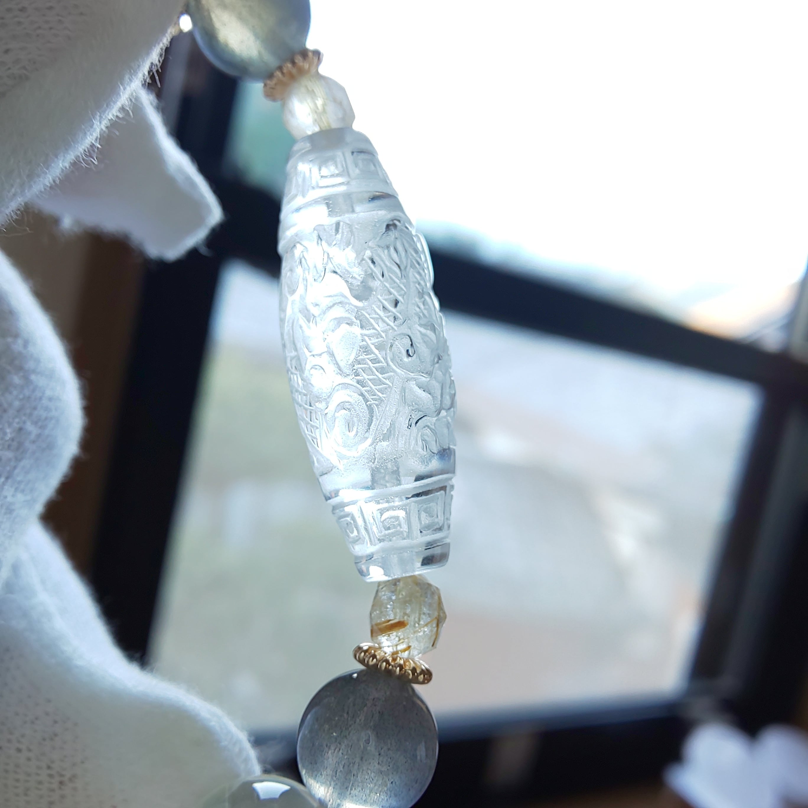 こちら天珠型の水晶龍彫りを使って作成しました♪