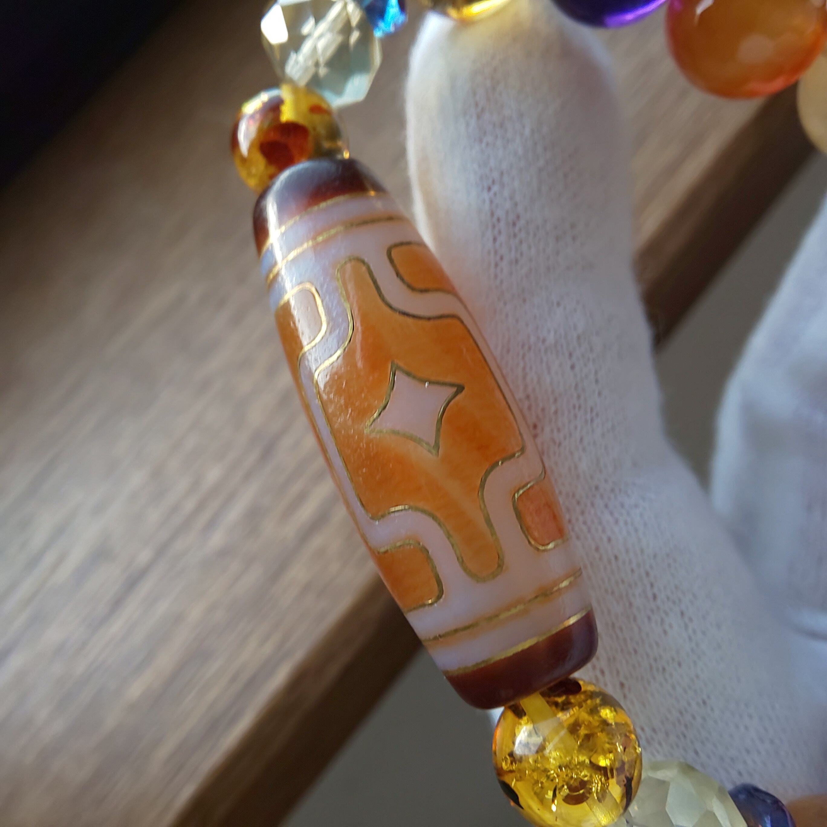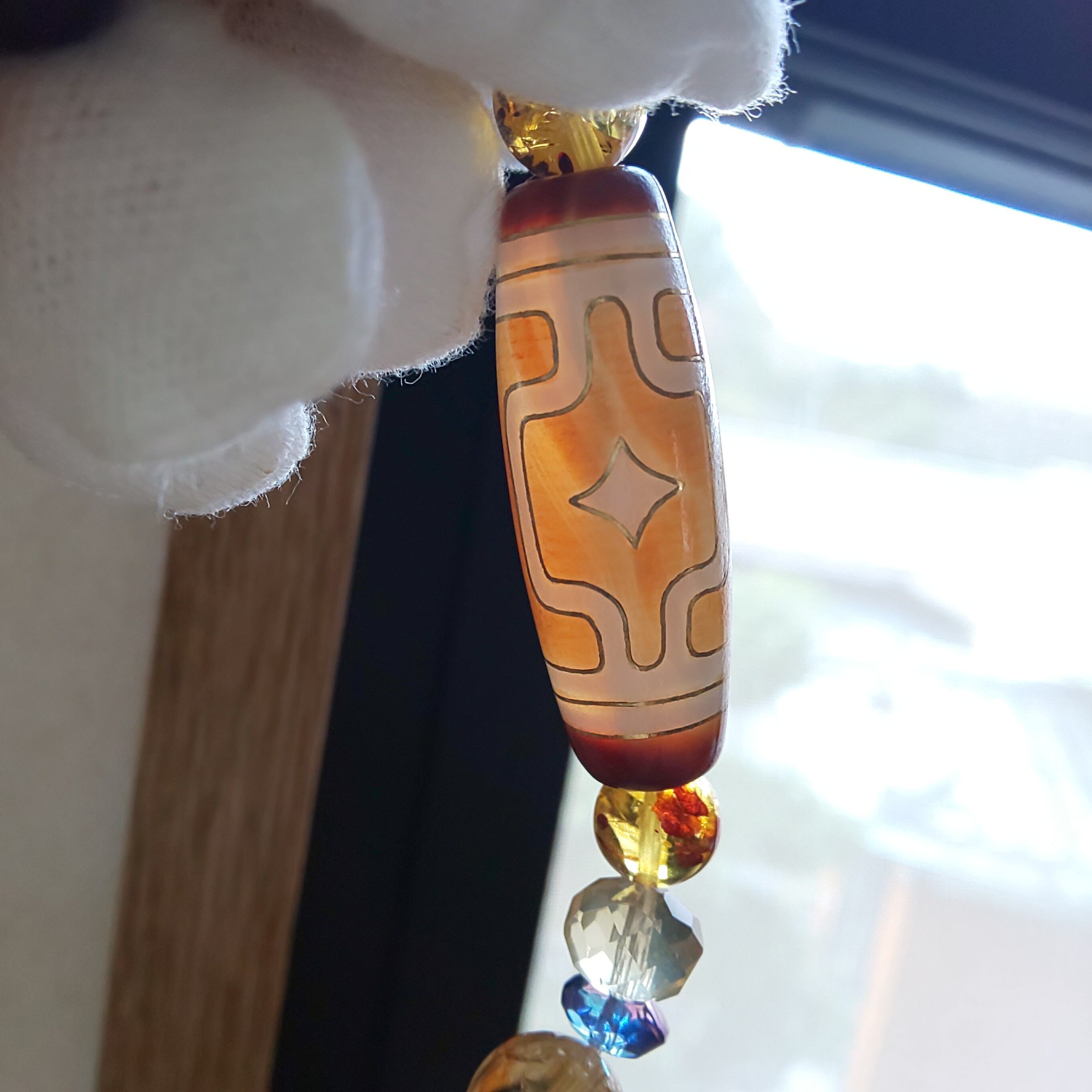 わりと大きめな天珠で透け感もあり金線天珠で、このタイプはあまり見かけないと思います♪