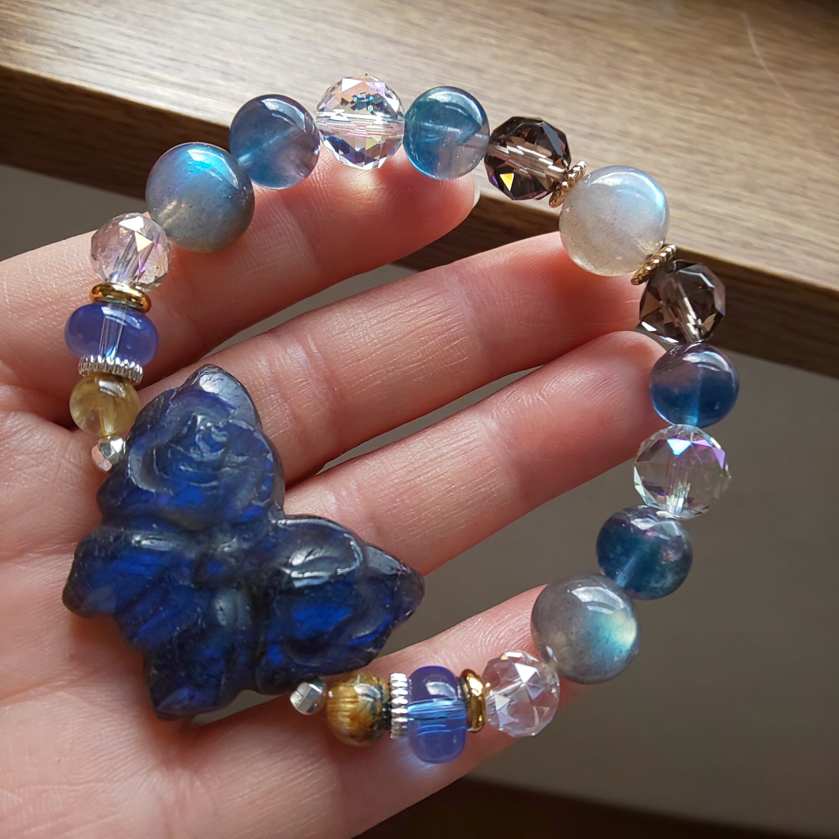 強シラーのラブラドライトパーツがいくつか入荷したので作成しました♡