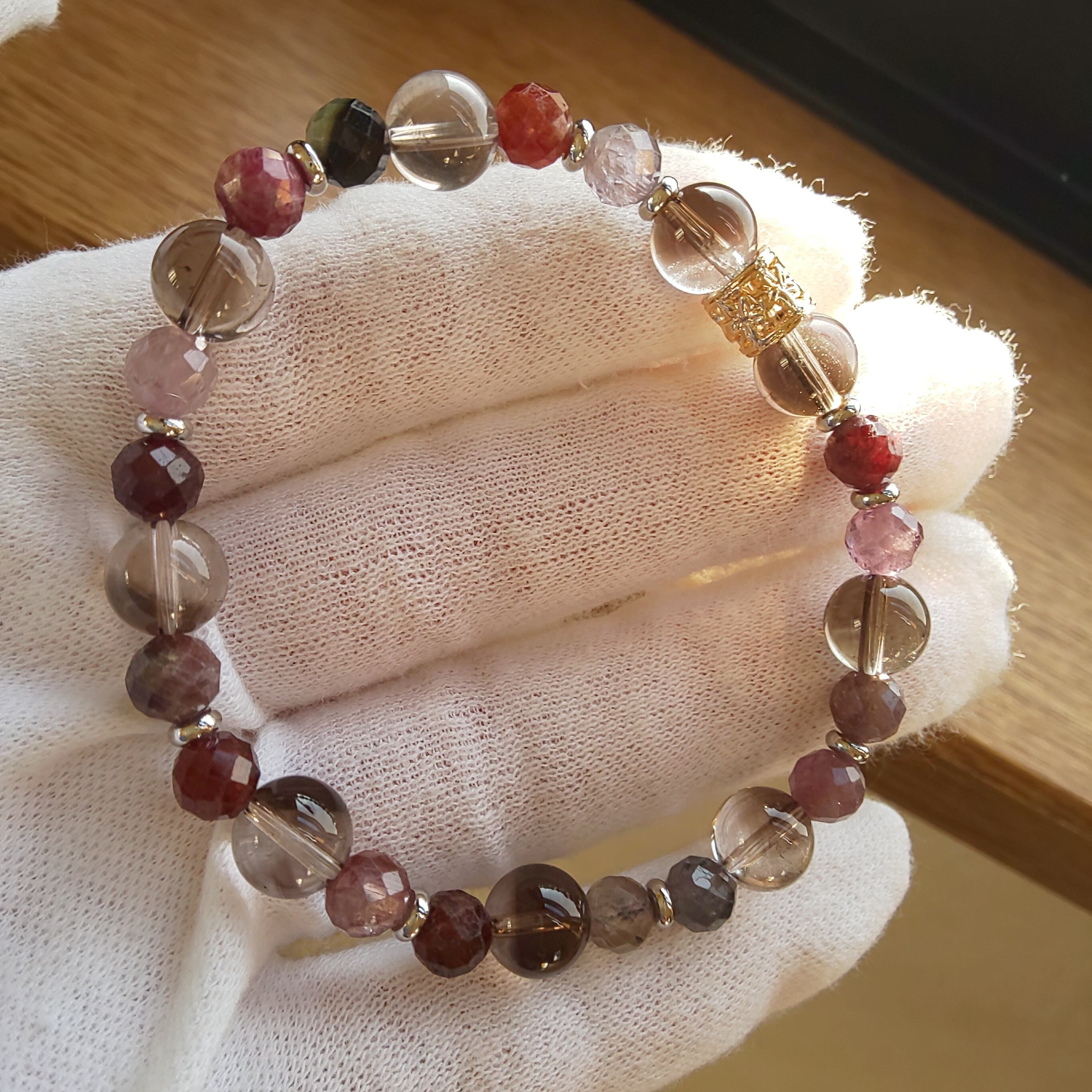 華奢ブレス MIXスピネル×バイカラースモーキークオーツ