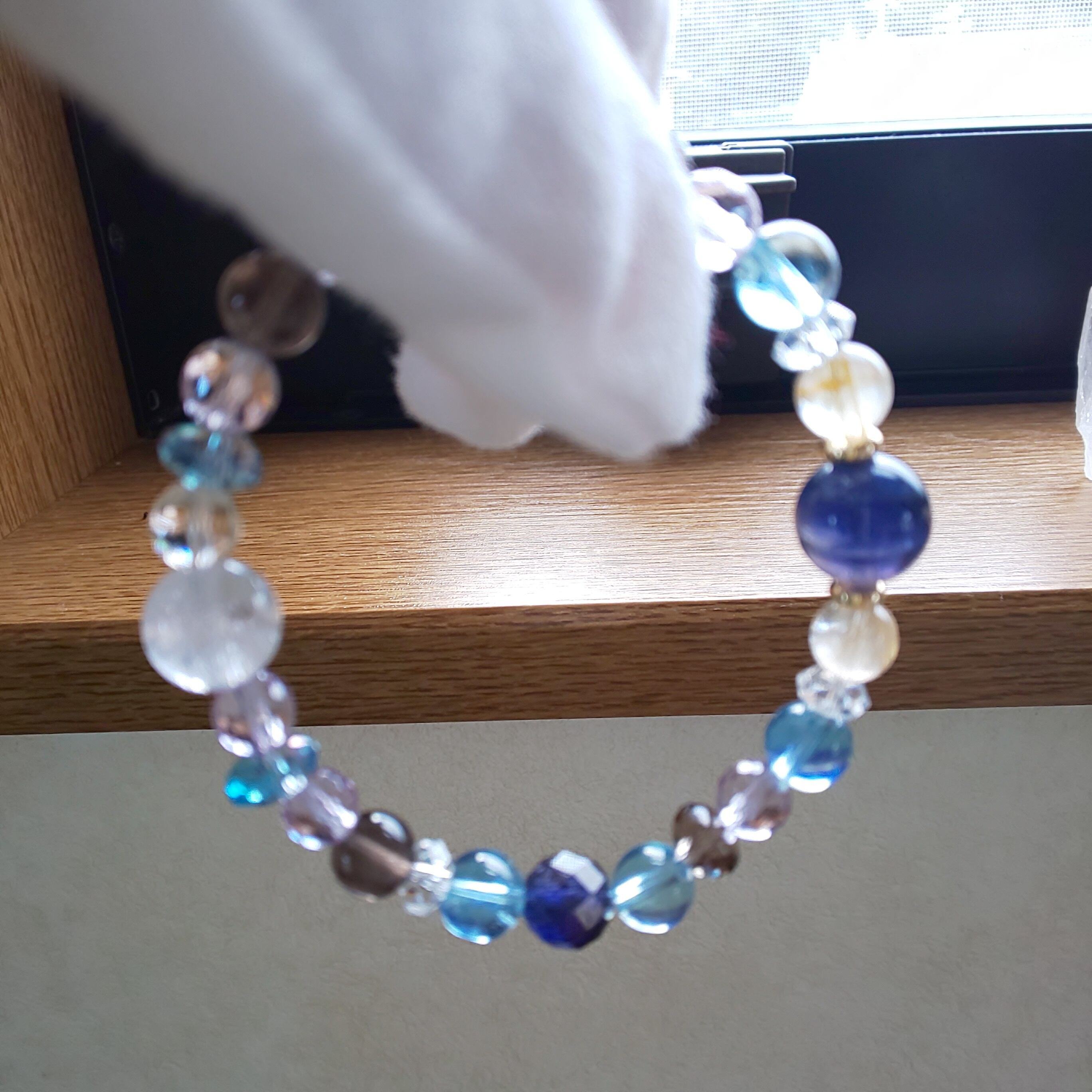 クリアな石達を集めてブルー系のブレスを作りたいなぁ~と思い作成しました(^-^)