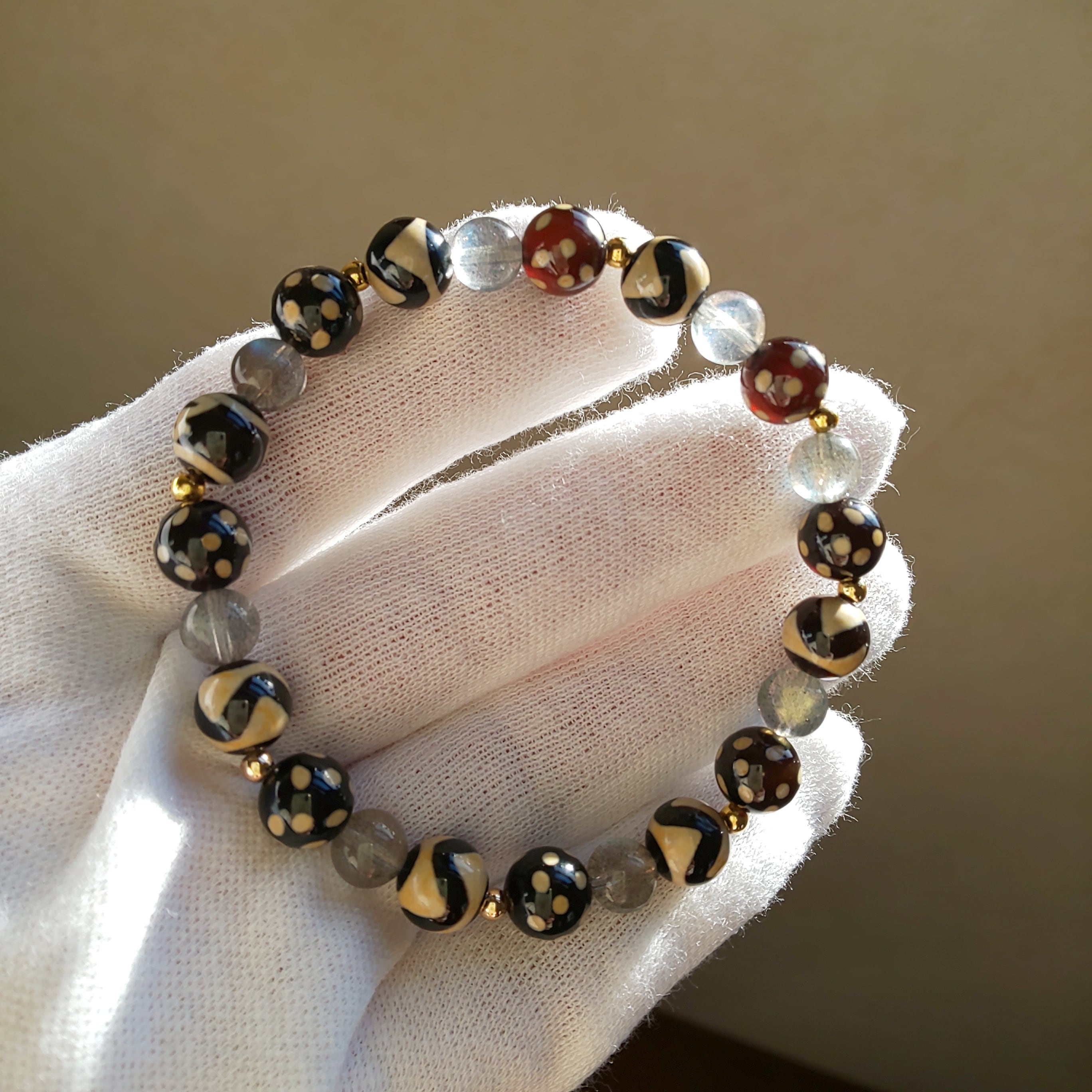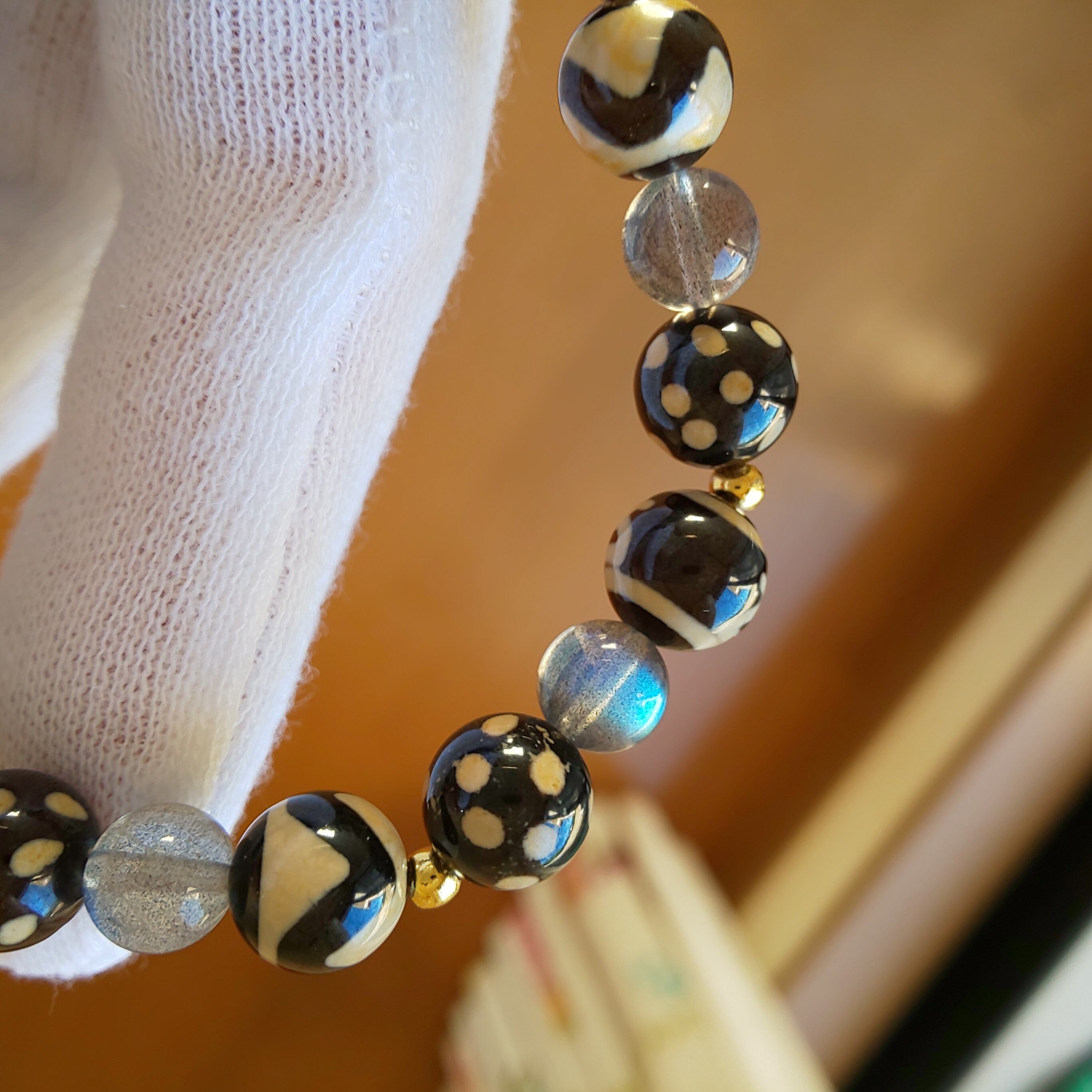 お清め済み♡満天天珠 虎牙天珠 財神天珠 ラブラドライト ブレス