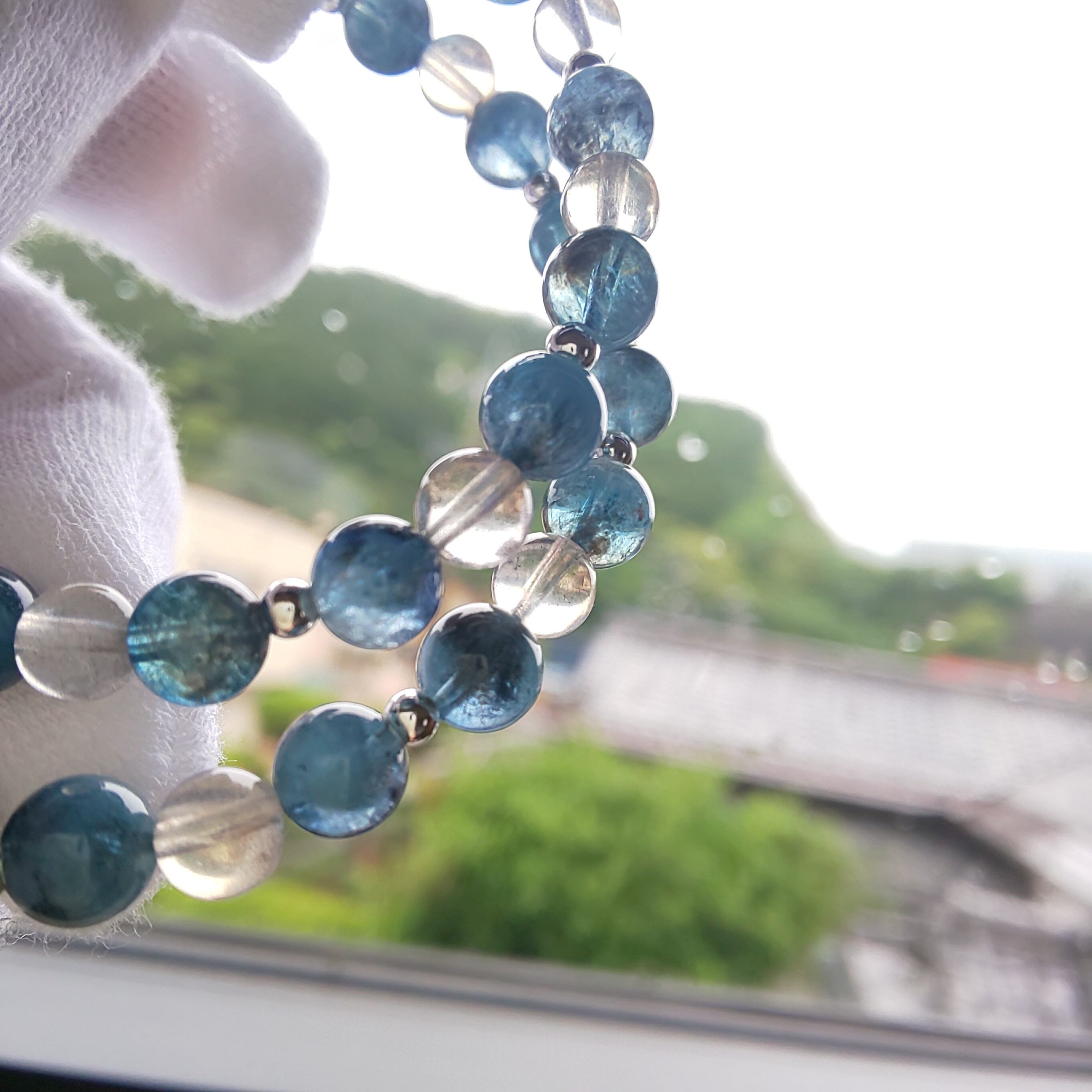 今回は程よい品質のブラックアクアマリンと出会えましたのでラブラドライトと合わせて二連ブレスにしてみました♪