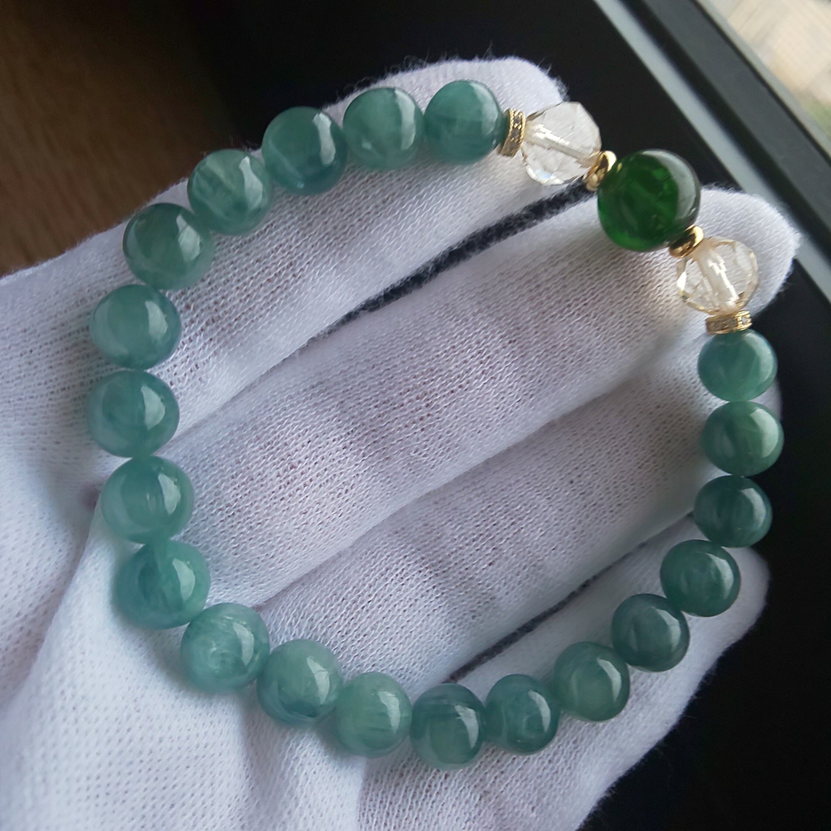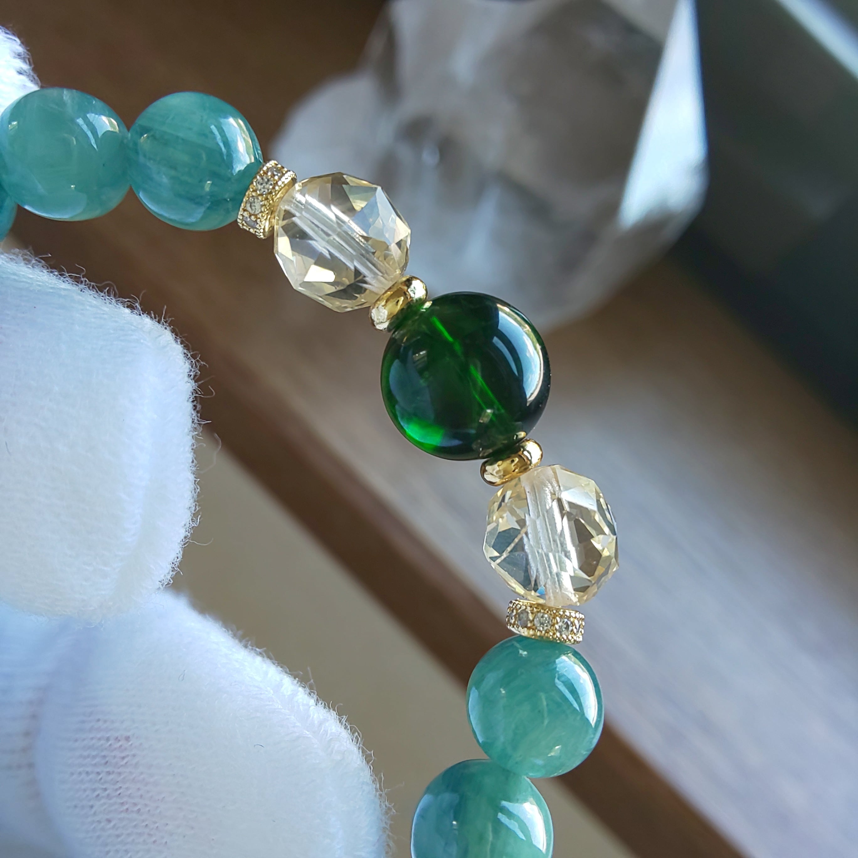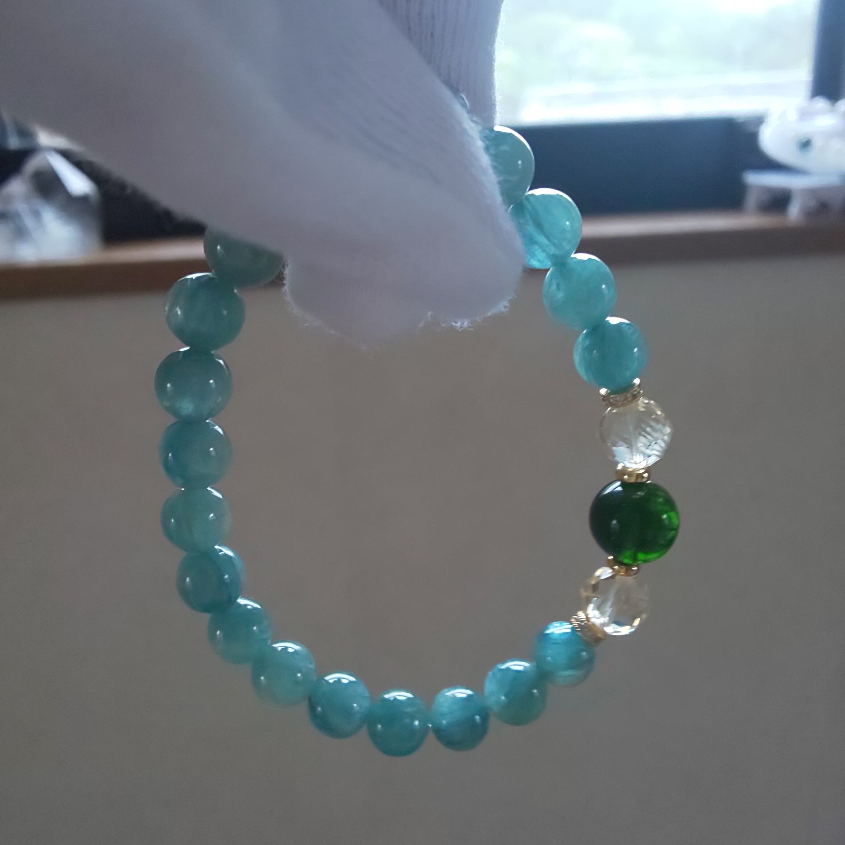 今回とても綺麗なグリーンカイヤナイトを入荷出来ましたので、残り少なくなってきた高品質クロムダイオプサイトをトップに組みました♪