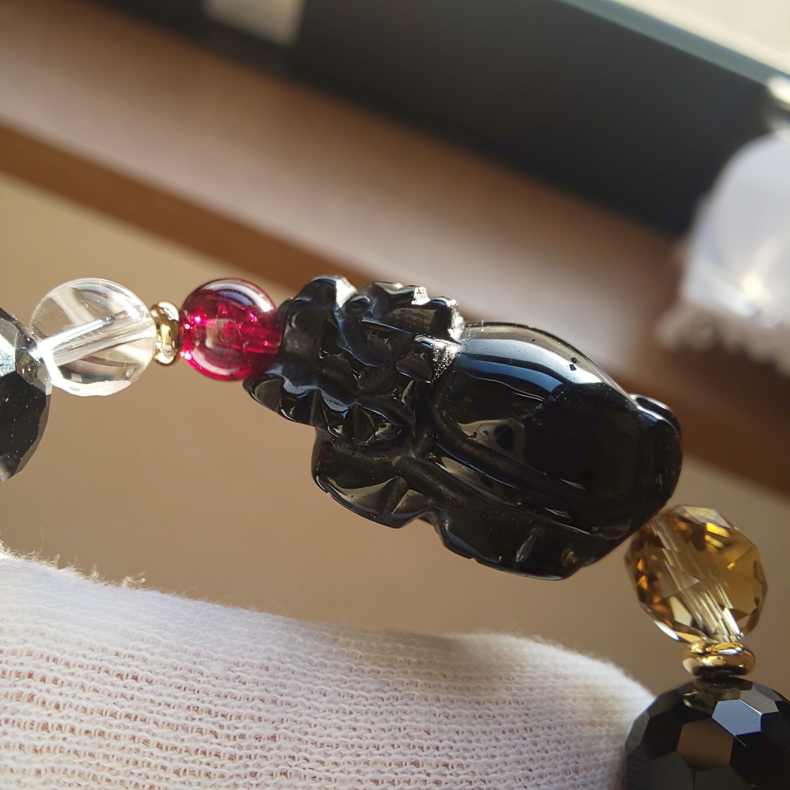 お清め済み モリオン龍亀 宝石カットモリオン ロードライトガーネット