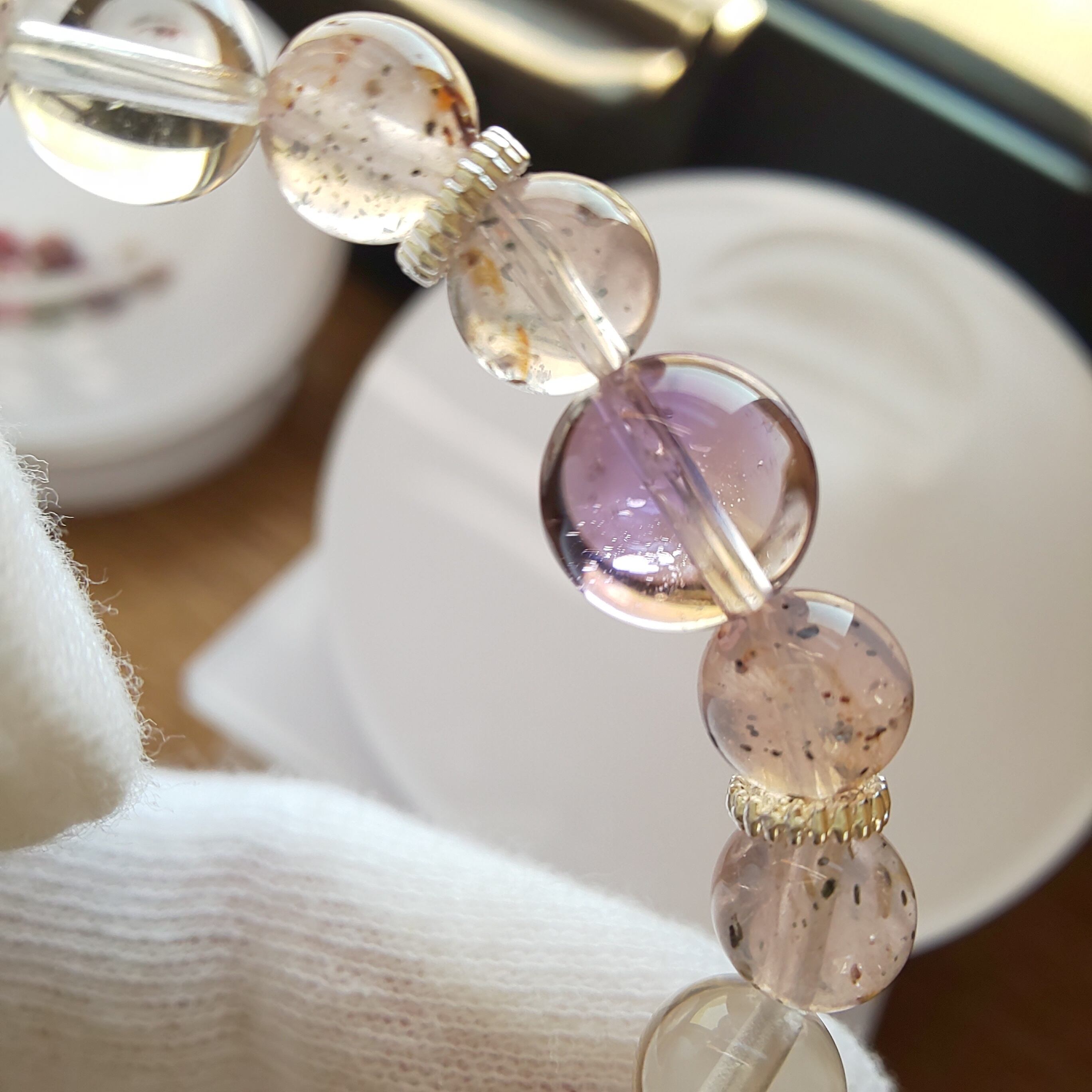 心と体の調和を促し、ストレス・疲労感を取り除く効果があるといわれています。 憂うつや嫉妬、恐れなどネガティブな感情を消し去るアメジストと、明るく力強いエネルギーを放ち、内から活力を高めるシトリンの効果が期待できます。